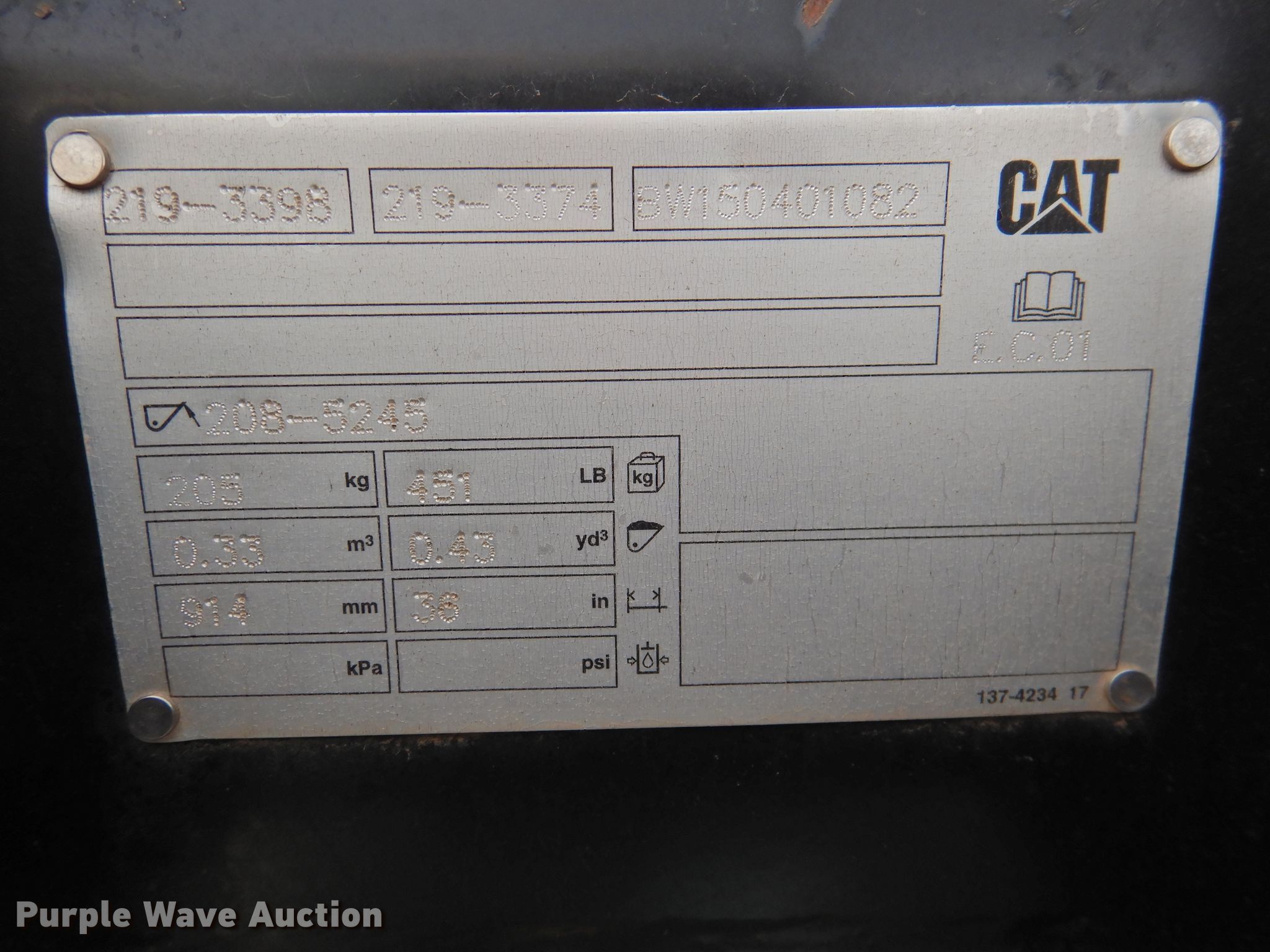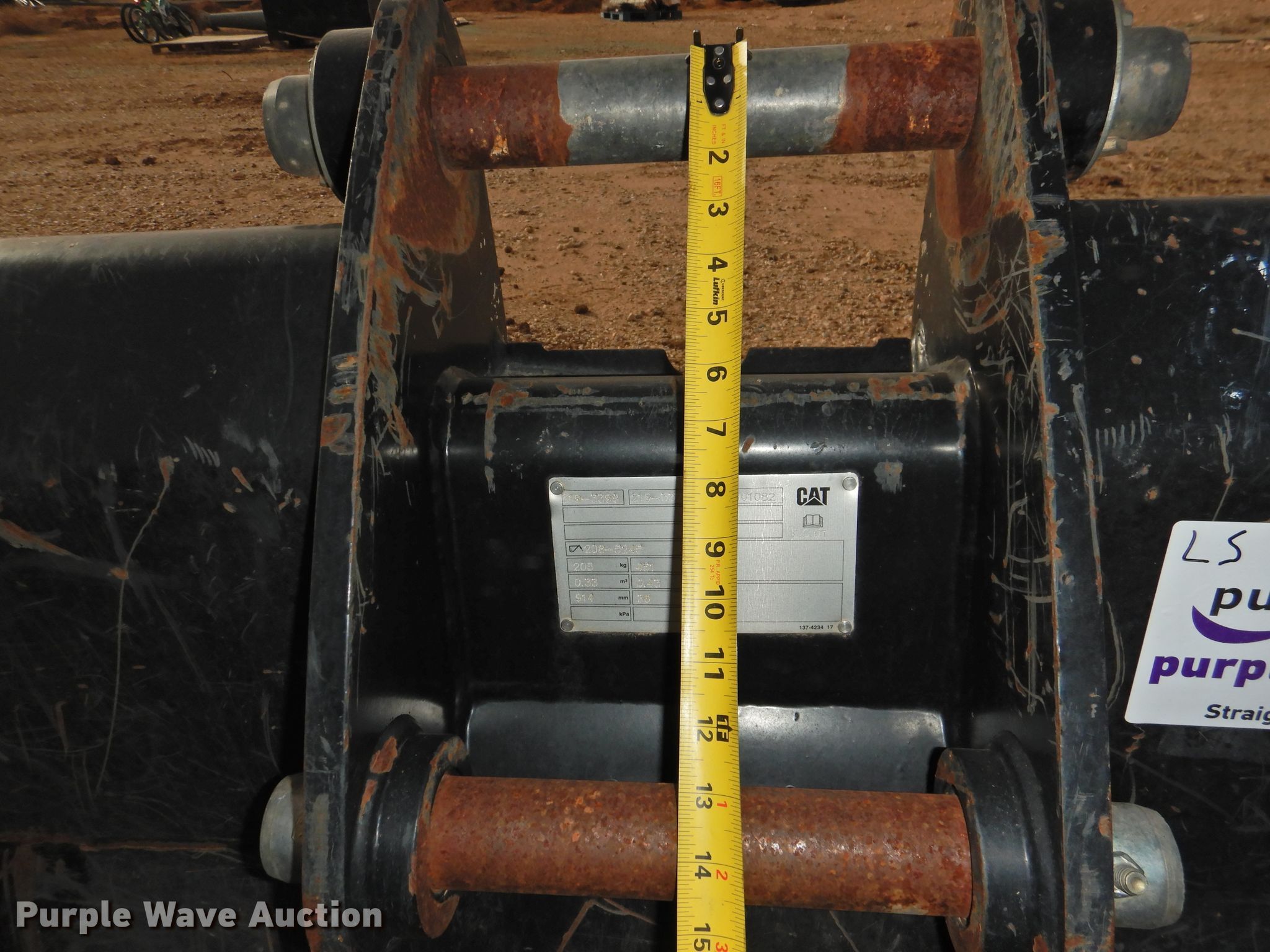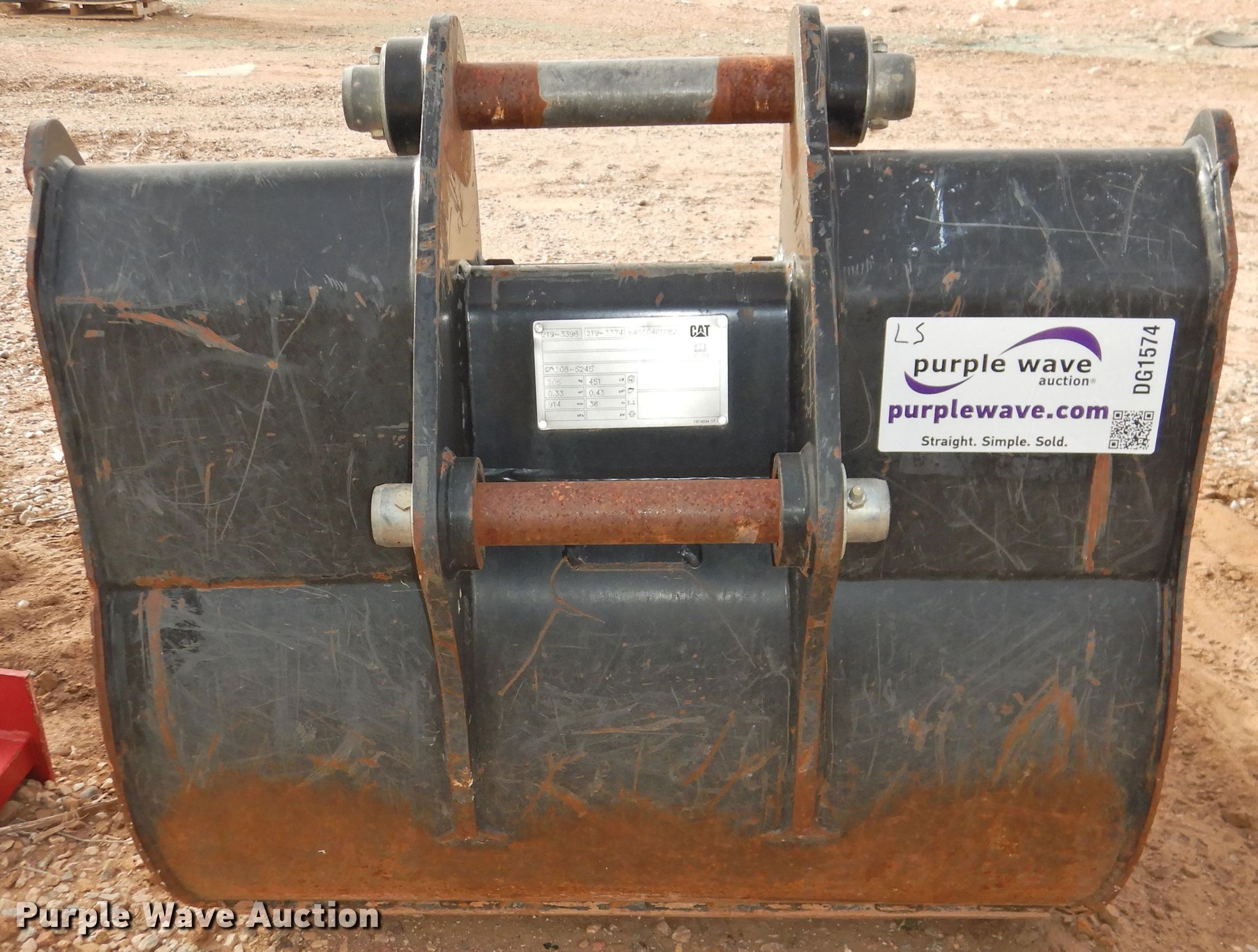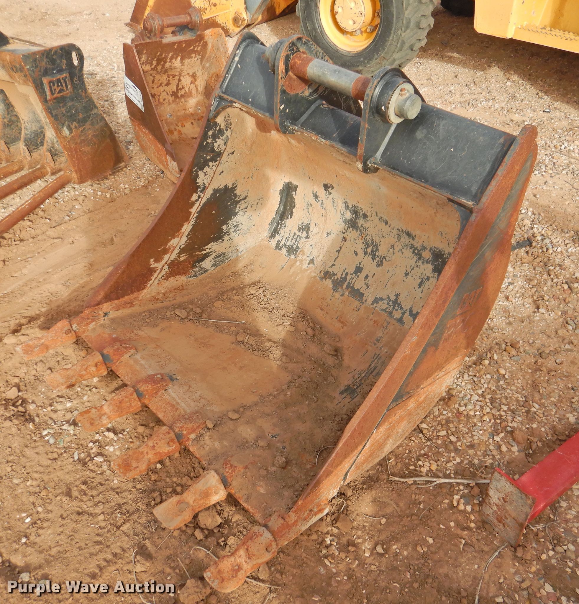 Purple Wave is selling a used Backhoe Attach. in Texas. This item is a Caterpillar 36"W backhoe bucket with the following: Weld-on cutting edge, Teeth: 6, .43 cu.yd. capacity