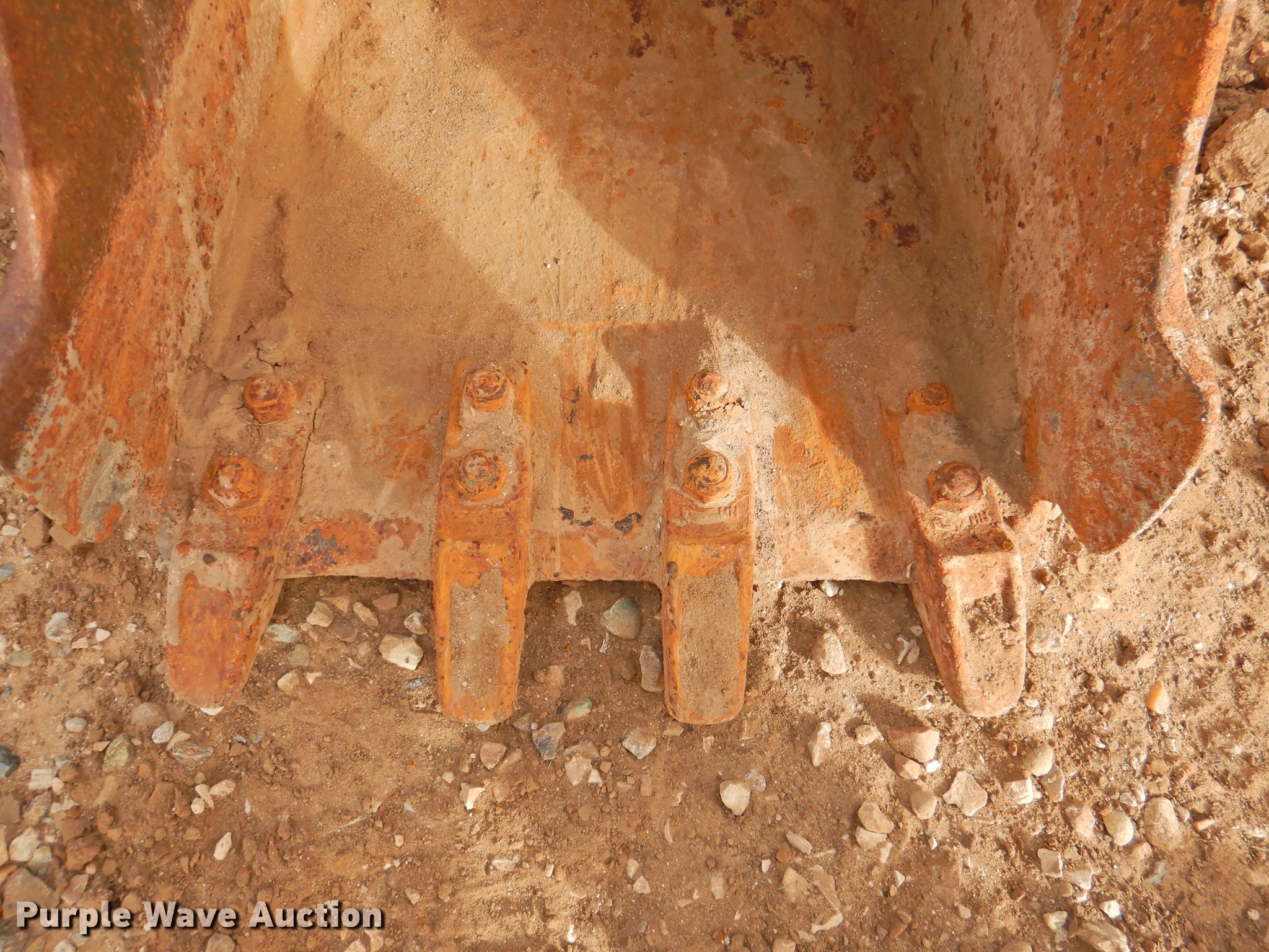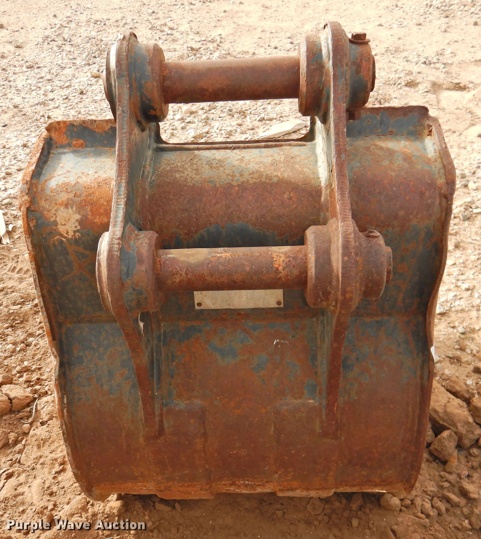 Purple Wave is selling a used Backhoe Attach. in Texas. This item is a Caterpillar 18"W backhoe bucket with the following: Bolt-on cutting edge, Teeth: 4