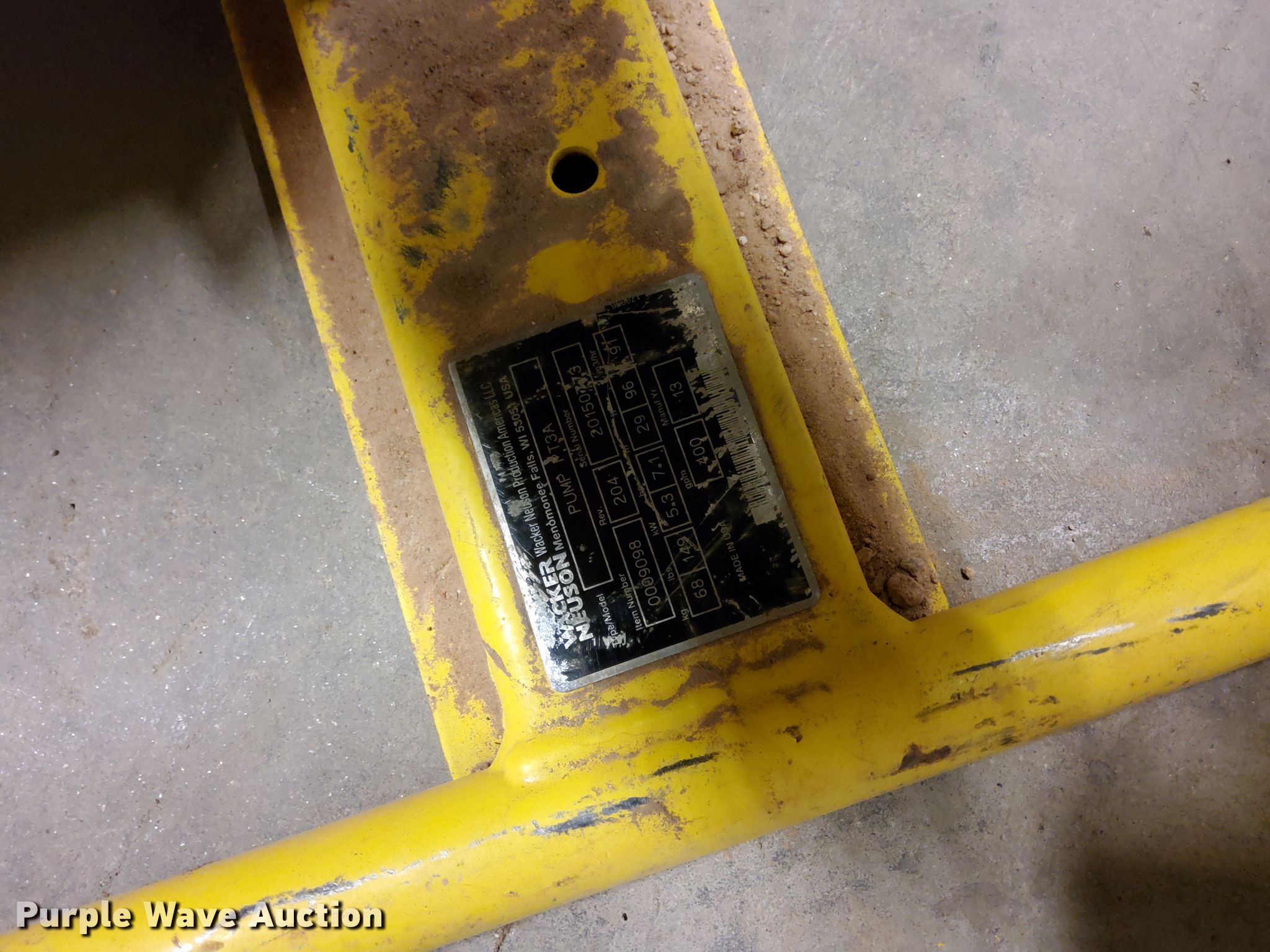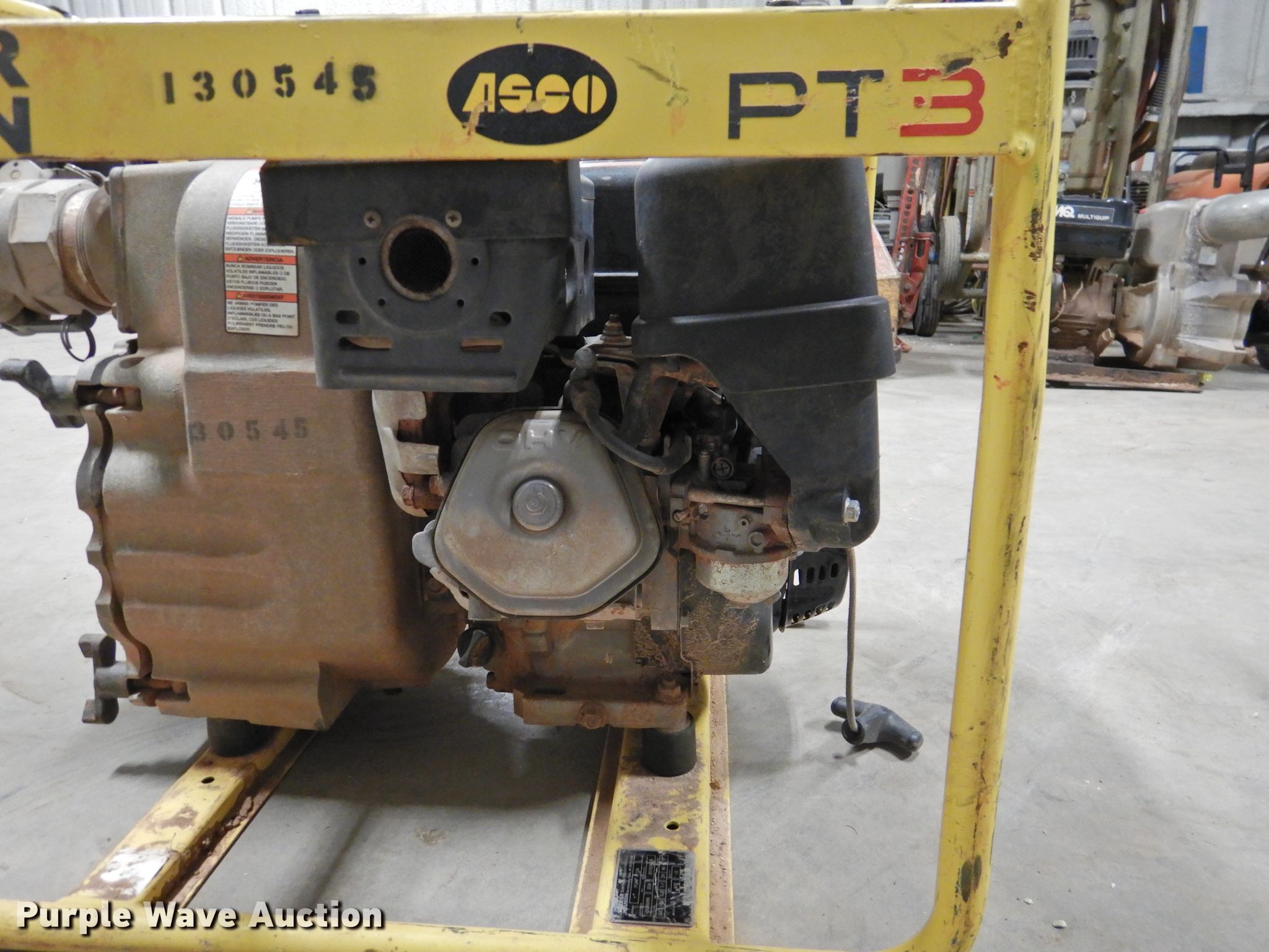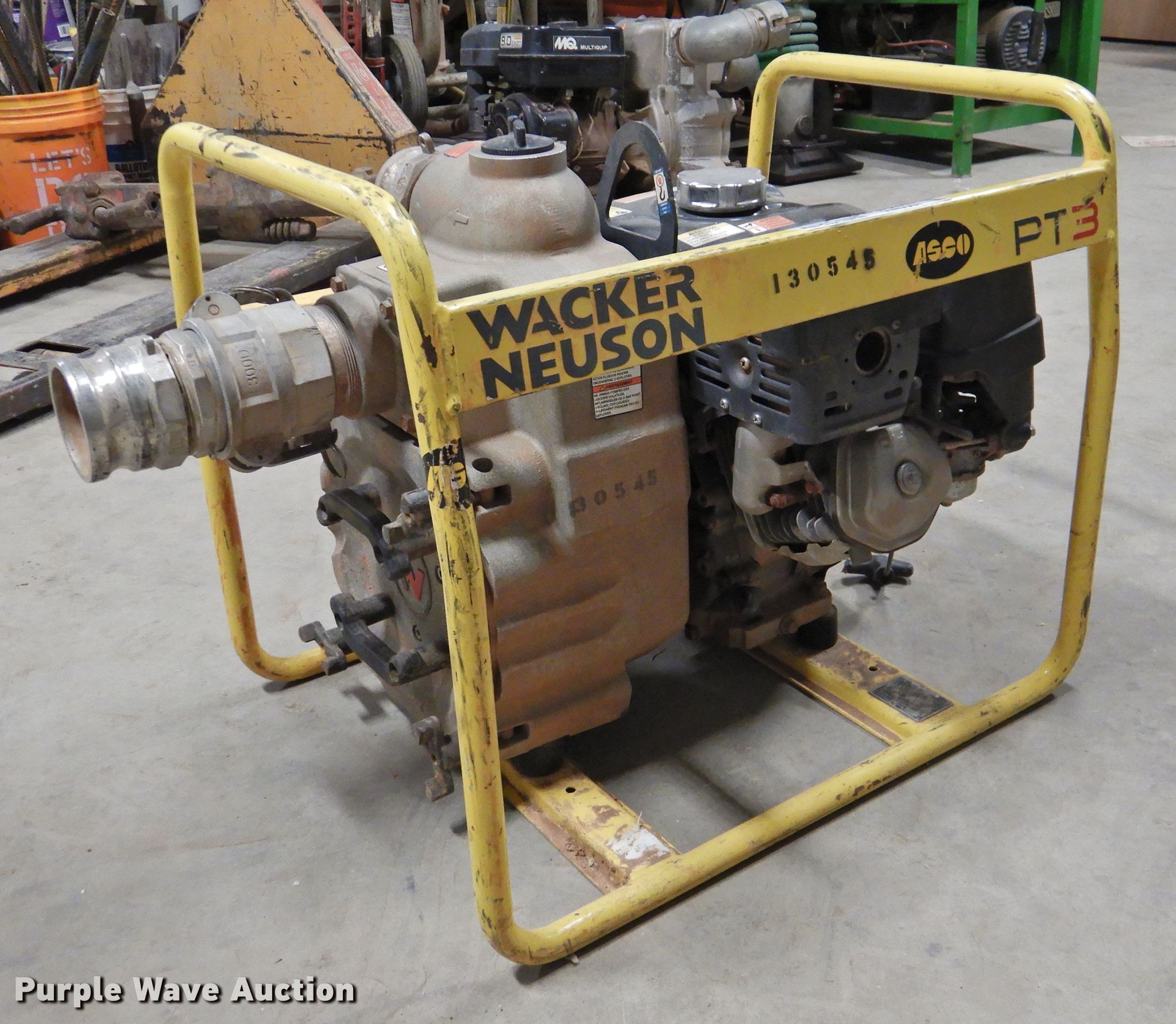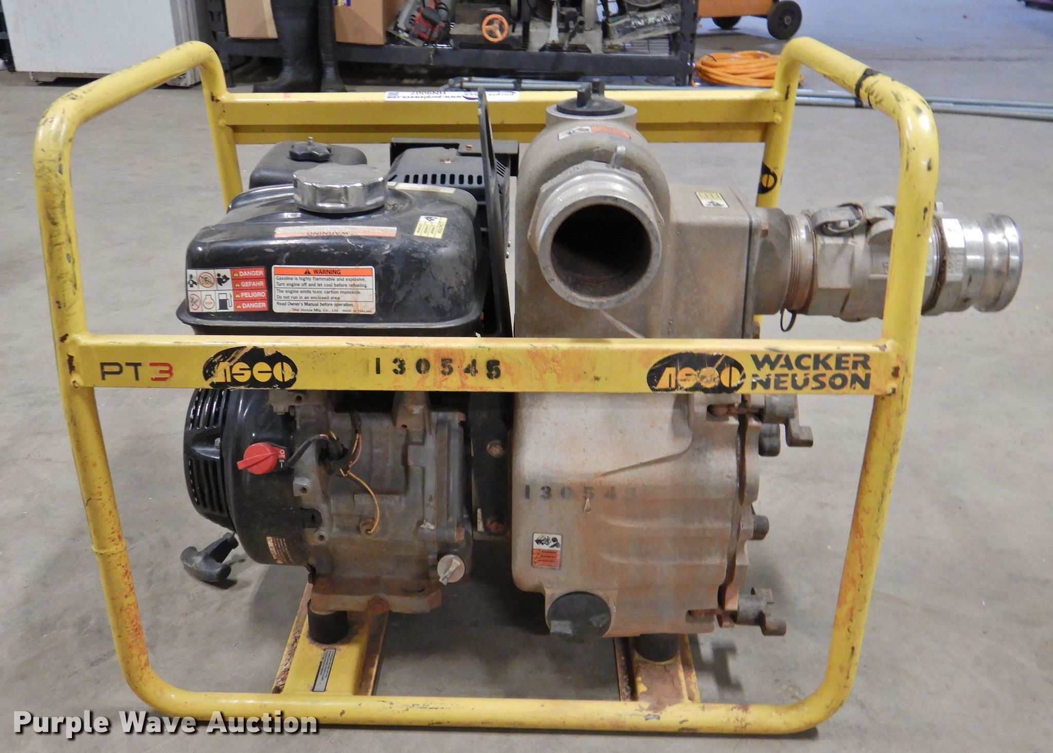 Purple Wave is selling a used Pump in Texas. This item is a Wacker Neuson PT3A trash pump with the following: Honda GX240 single cylinder gas engine, 8 HP, 3" diameter inlet/discharge, Serial 20150773