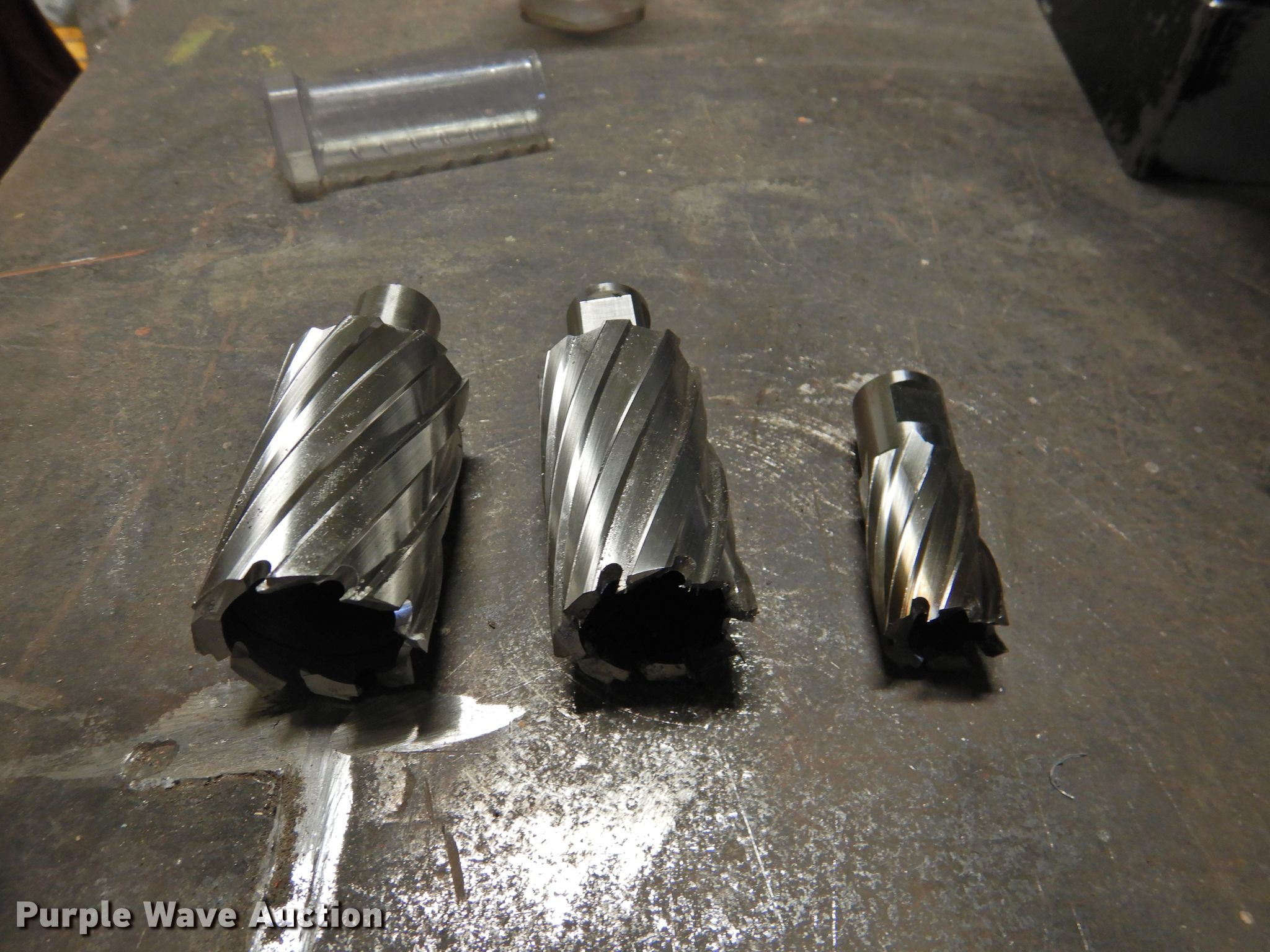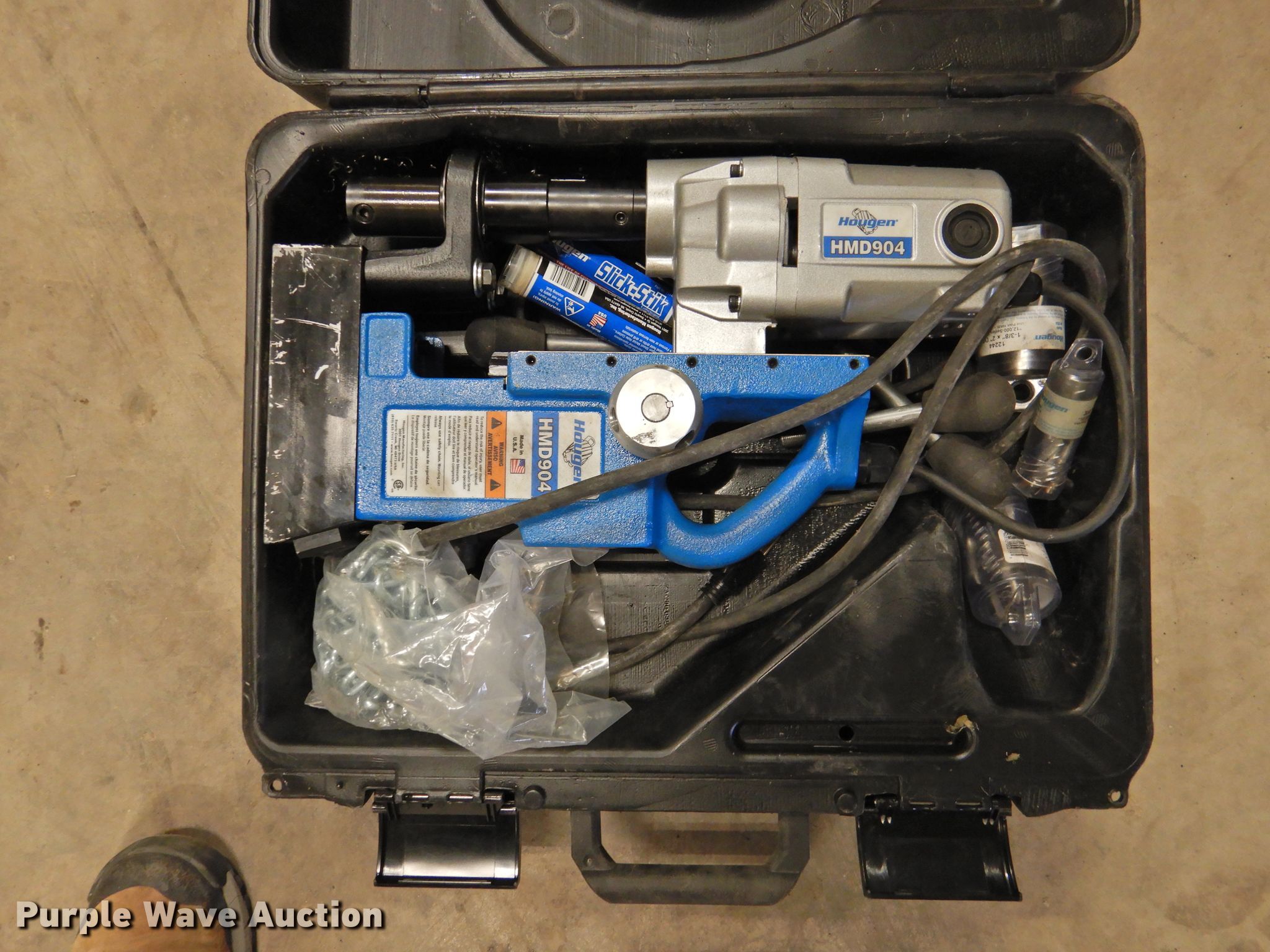 Purple Wave is selling a used Tools in Texas. This item is a Hougen HMD904 magnetic drill with the following: 1 1/2" bit, 1 3/8" bit, 3/4" bit, Serial 3319198
