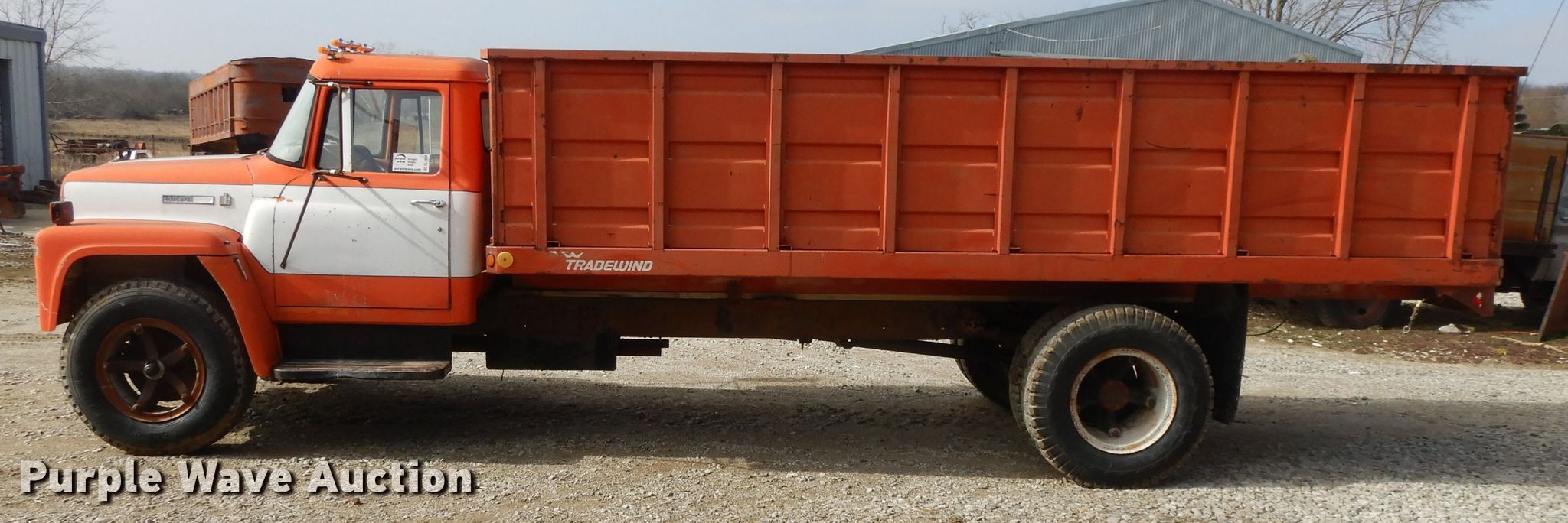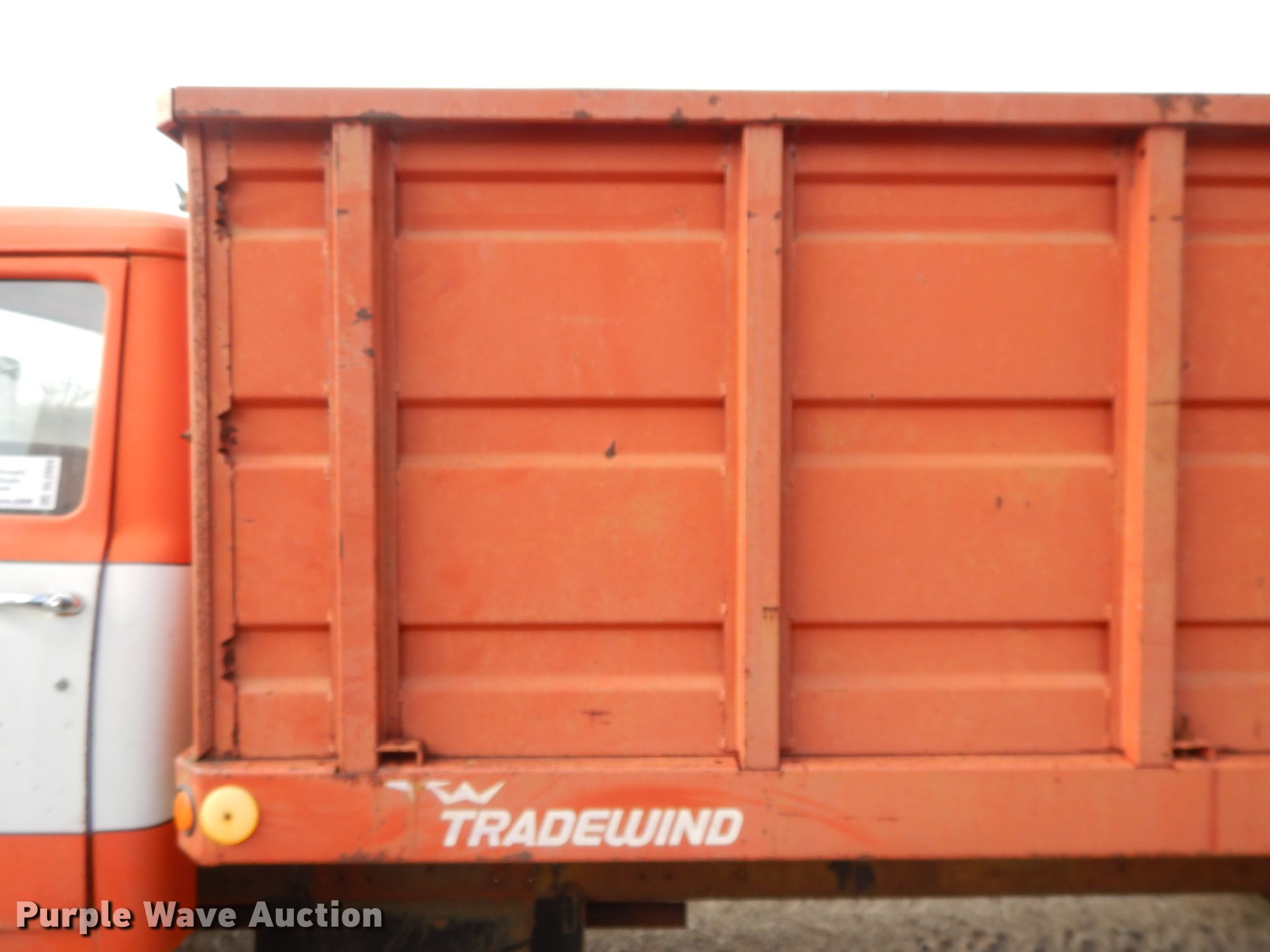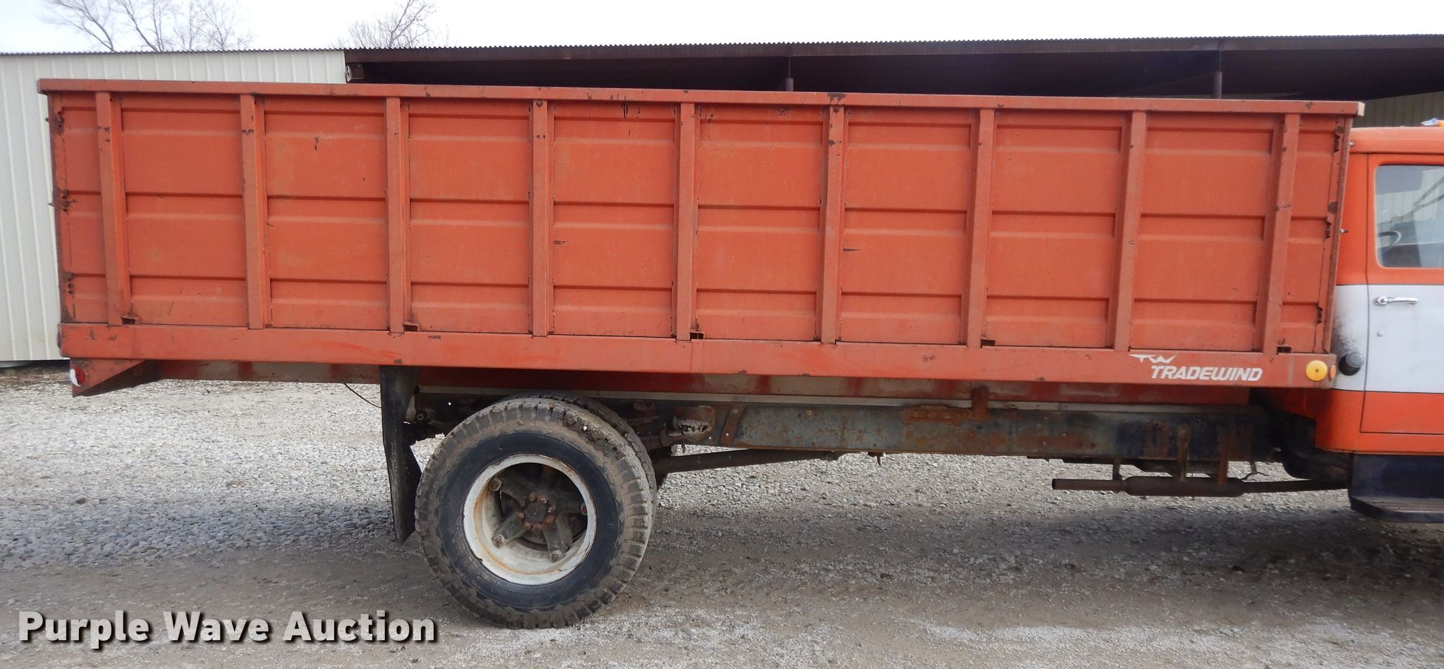 1974 International Loadstar 1700 grain truck. 124,190 miles on odometer. Engine Cylinders: 8, Fuel type: Gas. Transmission Manual, Speed: 10. Chassis Axles: Single, Suspension: Spring, Brakes: Hydraulic, PTO, GVWR: 23,660 lbs. Operational Dump bed Tradewind, 18' L x 94" W, Side height: 40", Bed type: Steel, Ram: Single , End gate: Manual. Tires Front: 9.00-20, Rear: 10.00R20. Notes Brake issues. Kansas antique title. 10672DHA18191. Fontana, KS 66026