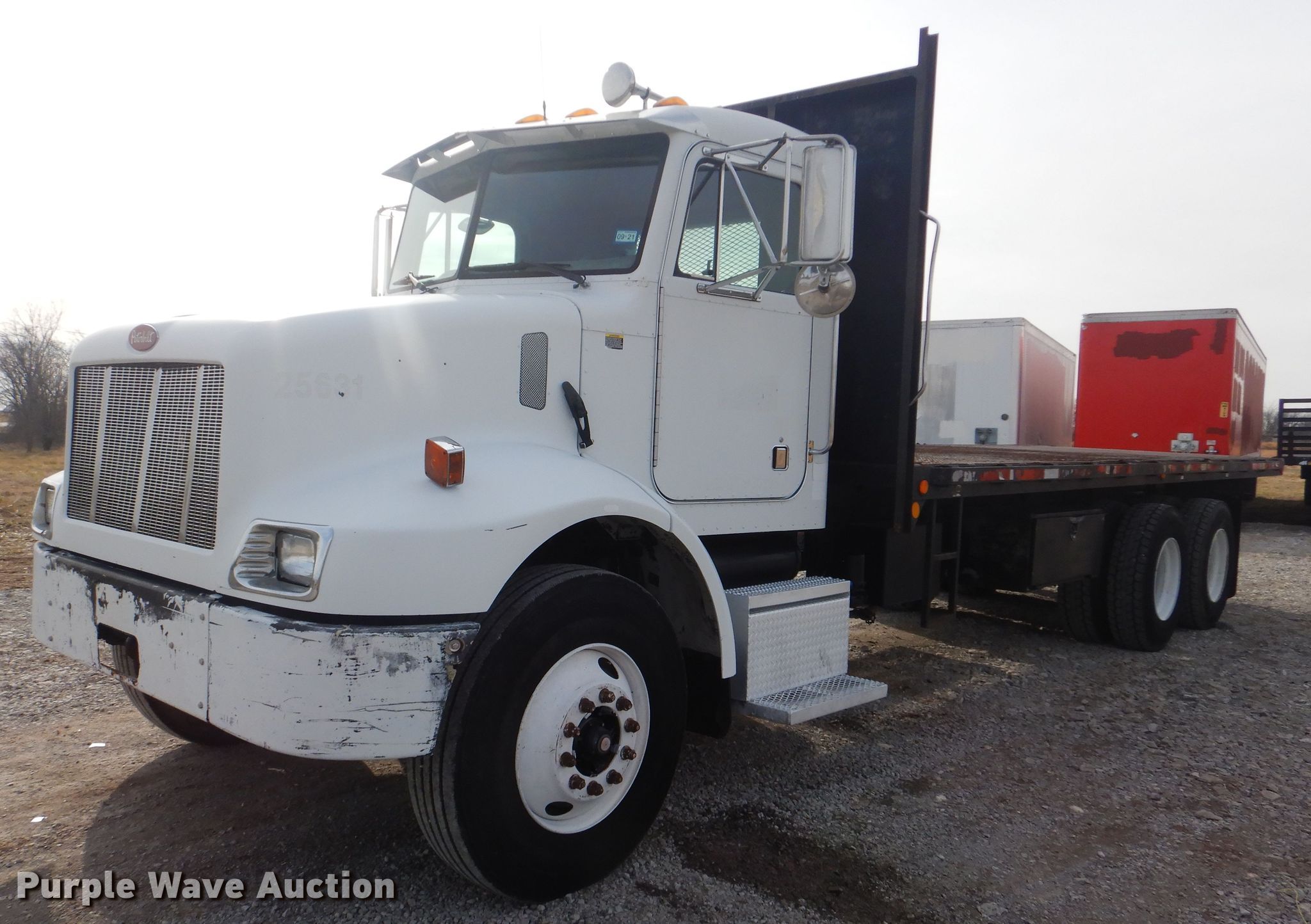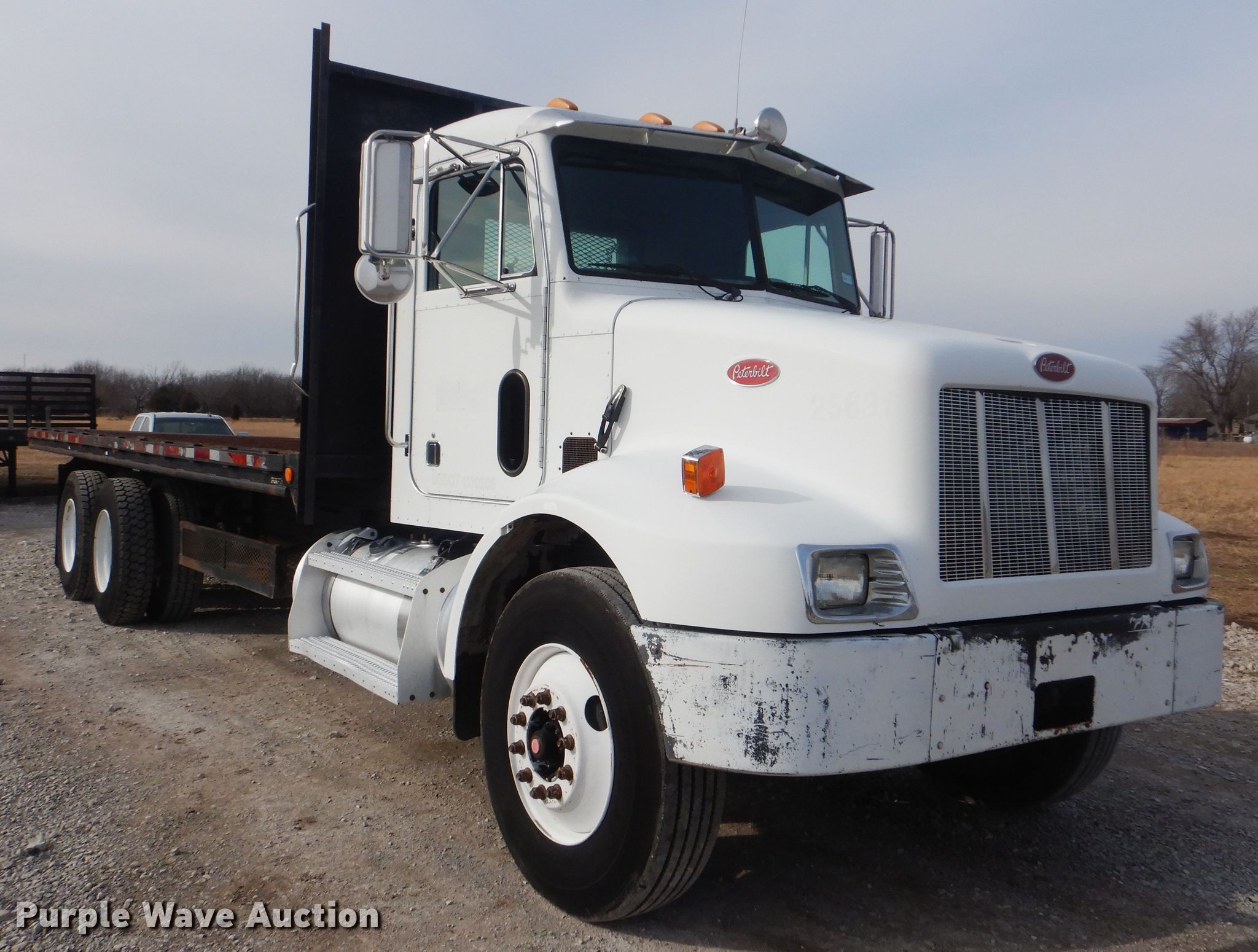 Purple Wave is selling a used Flat Bed Truck in Oklahoma. This item is a 2004 Peterbilt 330 dump flatbed truck with the following: 304,527 miles on odometer