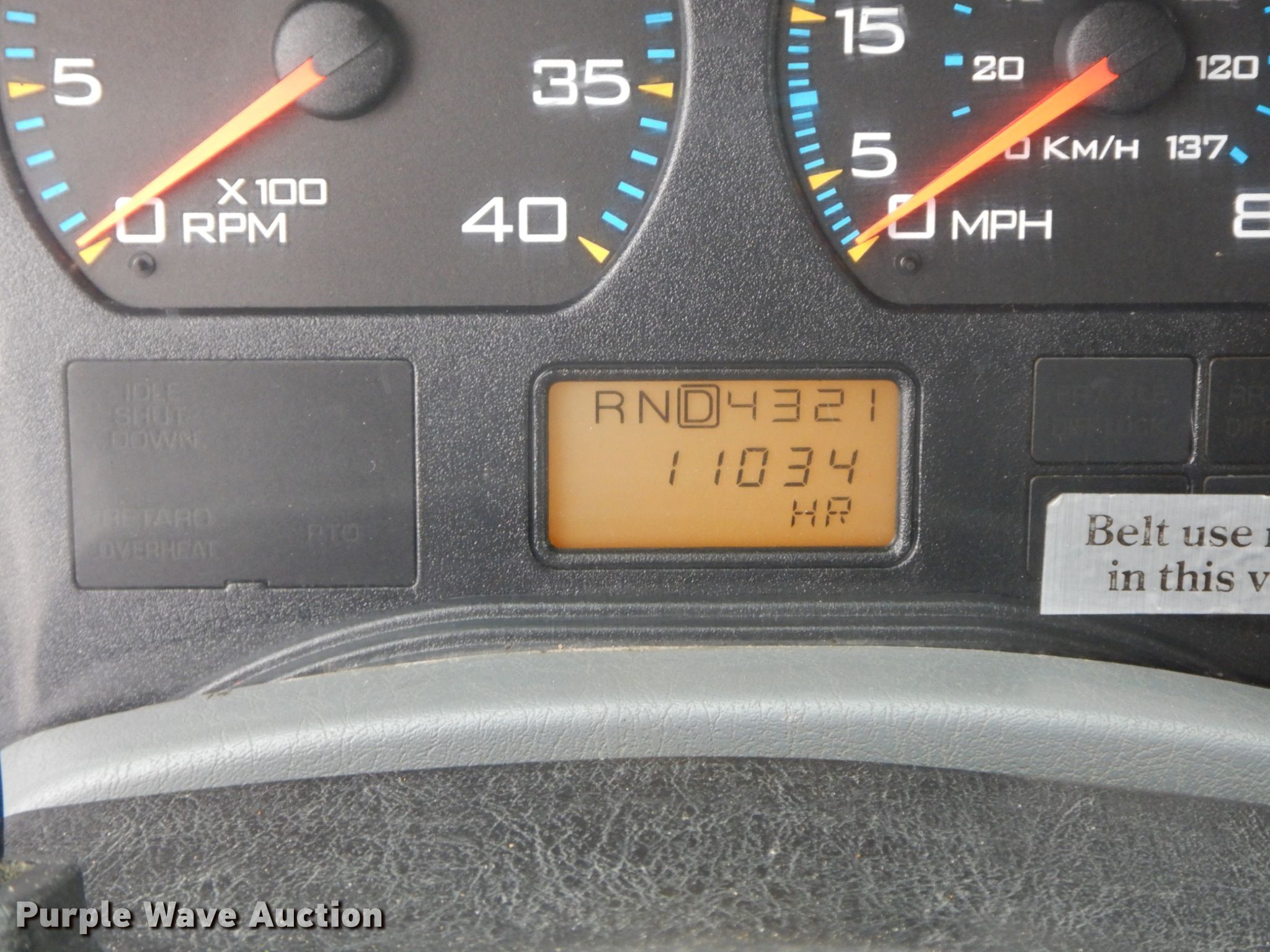 2006 International 7400 dump truck. 204,449 miles on odometer, Engine hours: 11,034, MODOT ID: 7736. Engine Displacement: 9.3L L6, Cylinders: 6, Fuel type: Diesel. Transmission Automatic. Chassis Axles: Tandem, Differential lock: Inter-axle, Suspension: Walking beam, Brakes: Air, Front mount PTO, GVWR: 60,000 lbs FAWR: 20,000 lbs, IAWR: 20,000 lbs, RAWR: 20,000 lbs, Wheelbase: 216". Interior AC, Heat, Heated mirrors, Power windows, Cruise control. Operational Dump bed 16' L x 96" W, Side height: 36", Bed type: Steel, Roll tarp, Ram: Single , End gate: Air operated, Spreader Swenson, Plow Width: 144". Tires Front: 425/65R22.5, Rear: 11R22.5. Notes Possible engine issues, Oil leak, Uses one gallon antifreeze per hour. Missouri title. 1HTWHAZT16J255803. Missouri Department of Transportation (MODOT). 26826 US Hwy 63. Macon, MO 63552