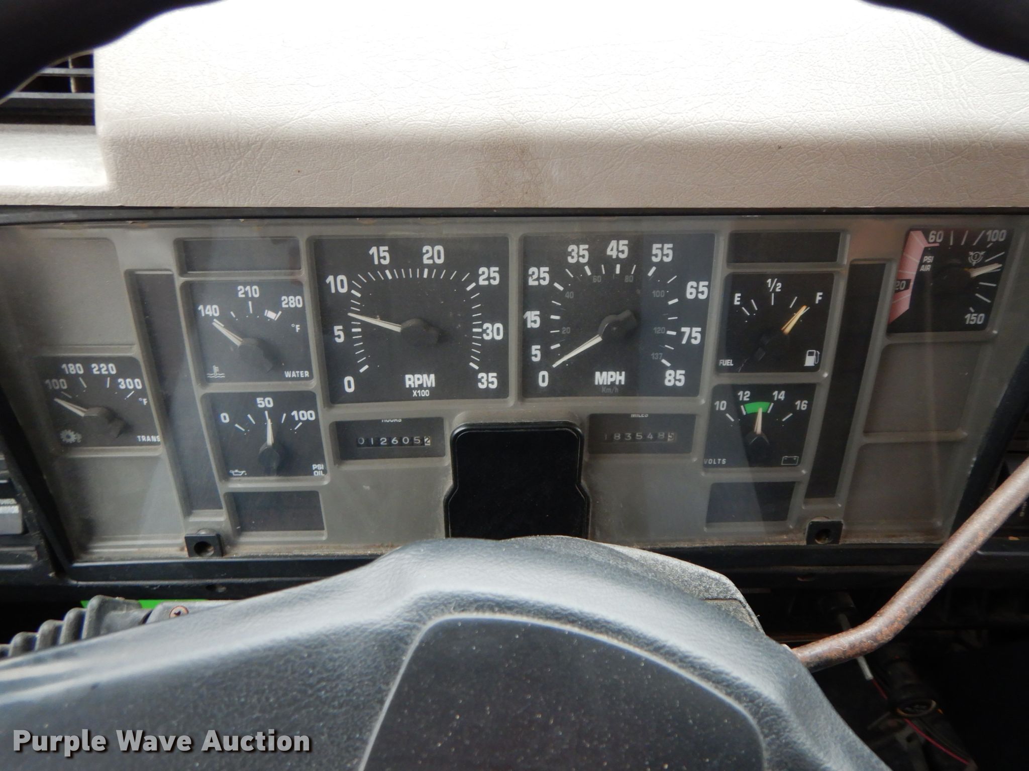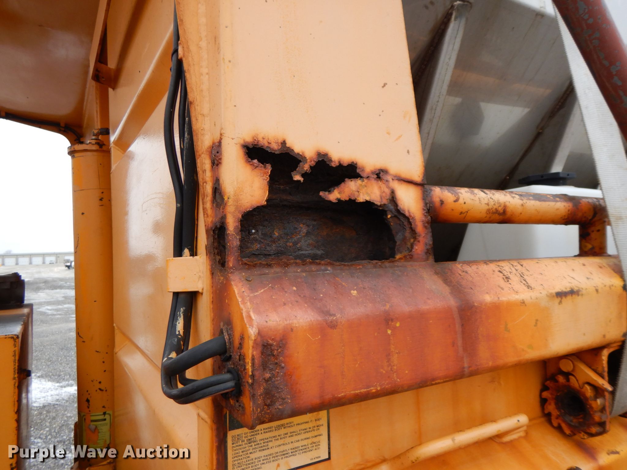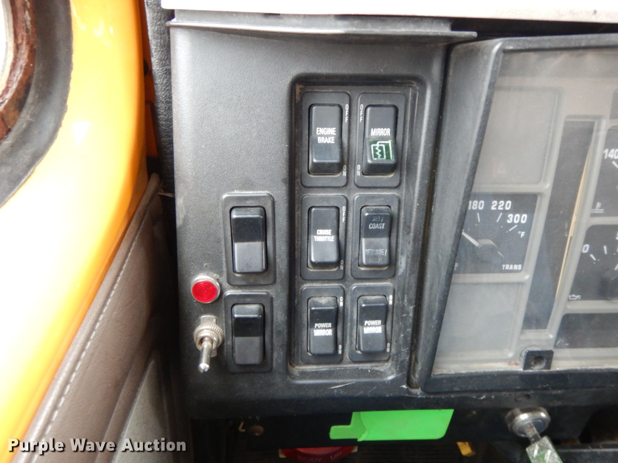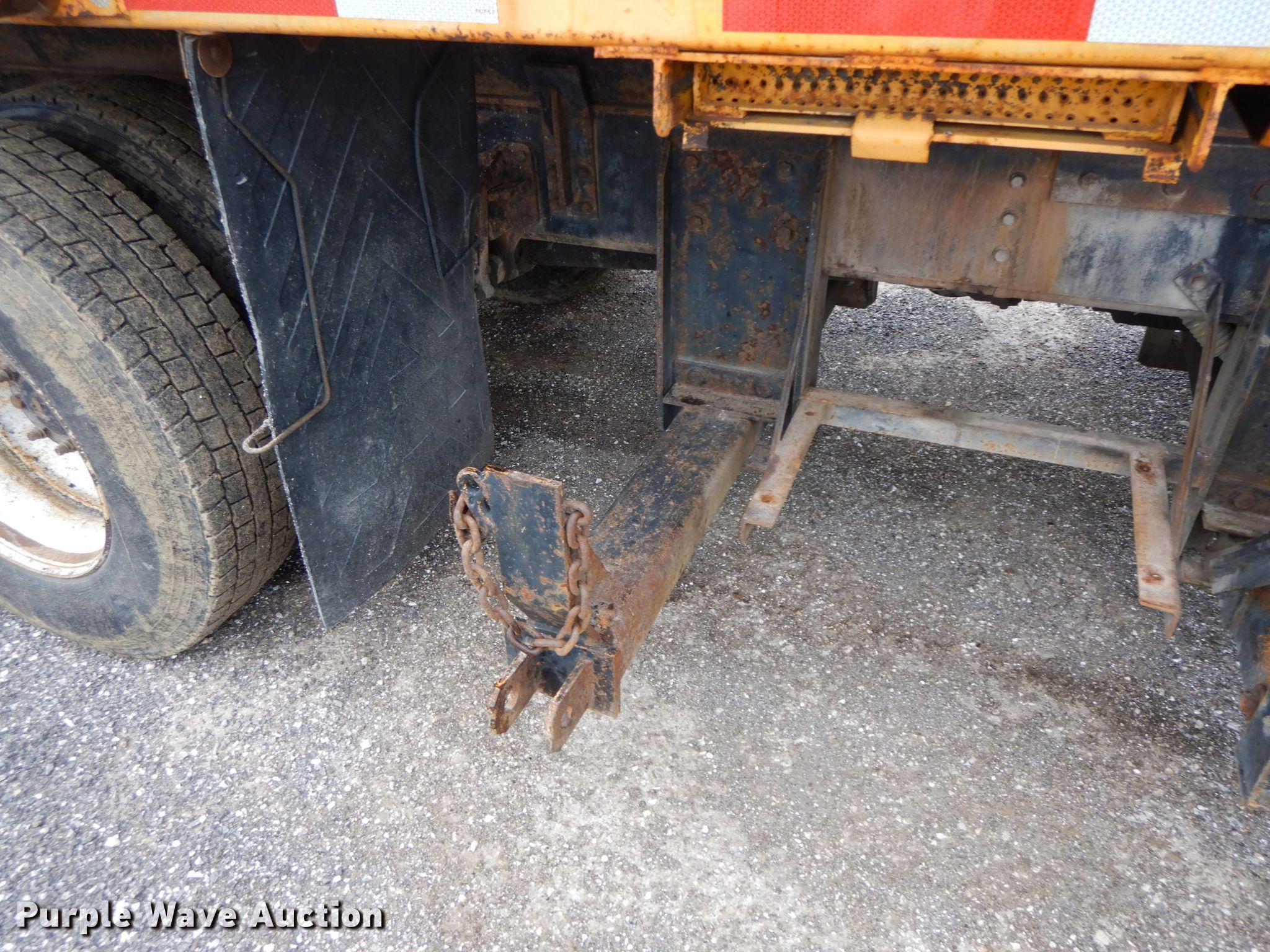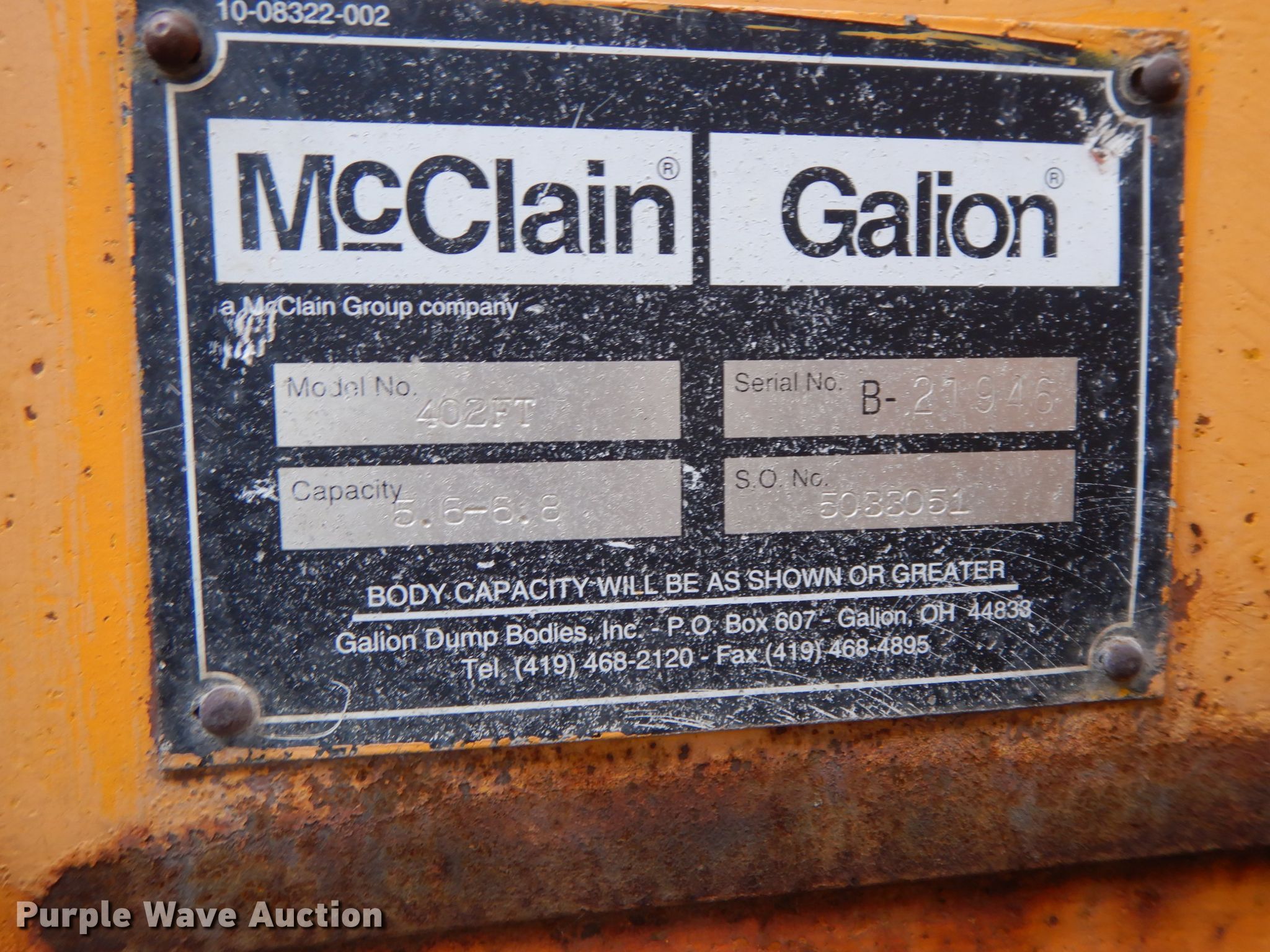 2002 International 4900 dump truck. 183,548 miles on odometer, Engine hours: 12,605, MODOT ID: 6564. Engine Displacement: 7.6L L6, Cylinders: 6, Fuel type: Diesel, Engine brake. Transmission Automatic. Chassis Axles: Single, Suspension: Spring, Brakes: Air, PTO, GVWR: 37,000 lbs FAWR: 16,000 lbs, RAWR: 21,000 lbs, Wheelbase: 172". Interior AC, Heat, Heated mirrors, Power windows, Cruise control. Operational Dump bed McClain 402FT, 10' L x 96" W, Side height: 25", Bed type: Steel, Roll tarp, Ram: Single , End gate: Air operated, Spreader Monroe. Tires Front: 315/80R22.5, Rear: 11R22.5. Missouri title. 1HTSDAAR62H524048. Missouri Department of Transportation (MODOT). 26826 US Hwy 63. Macon, MO 63552