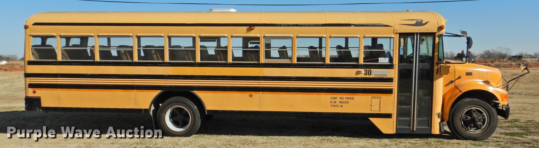 Purple Wave is selling a used Bus in Oklahoma. This item is a 1995 International 3800 school bus with the following: 113,476 miles on odometer, Engine hours: 6,228, Unit #: 30