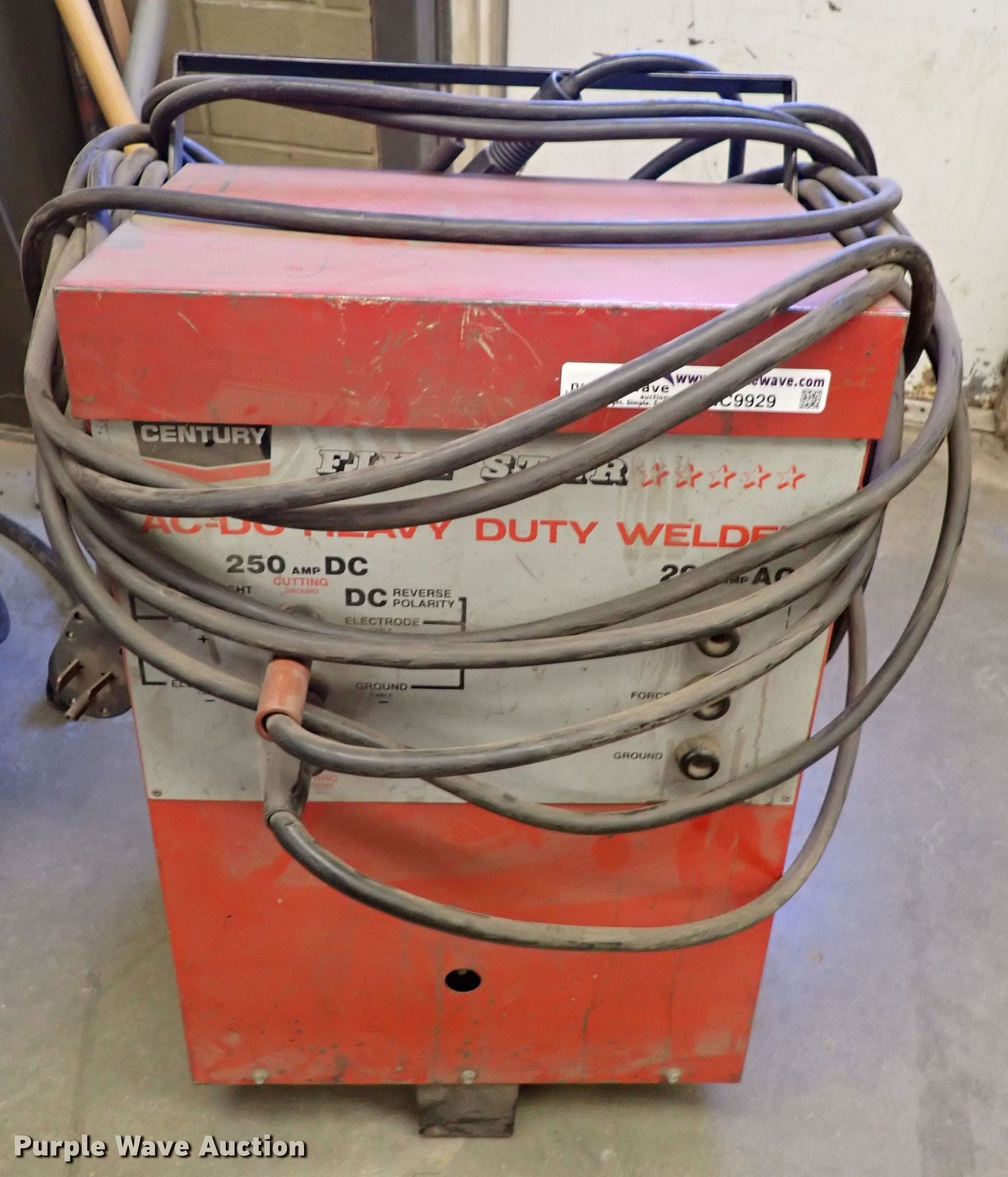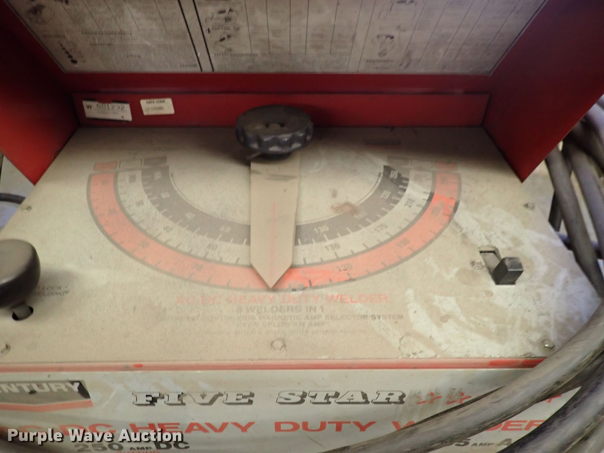 Purple Wave is selling a used Welder (Manual) in Kansas. This item is a Century welder with the following: 250 amps DC, 295 amps AC, Serial 681232