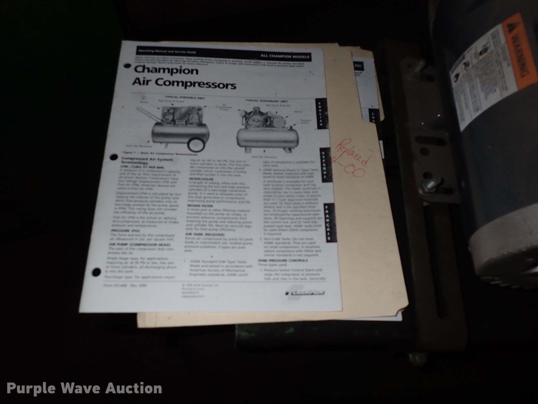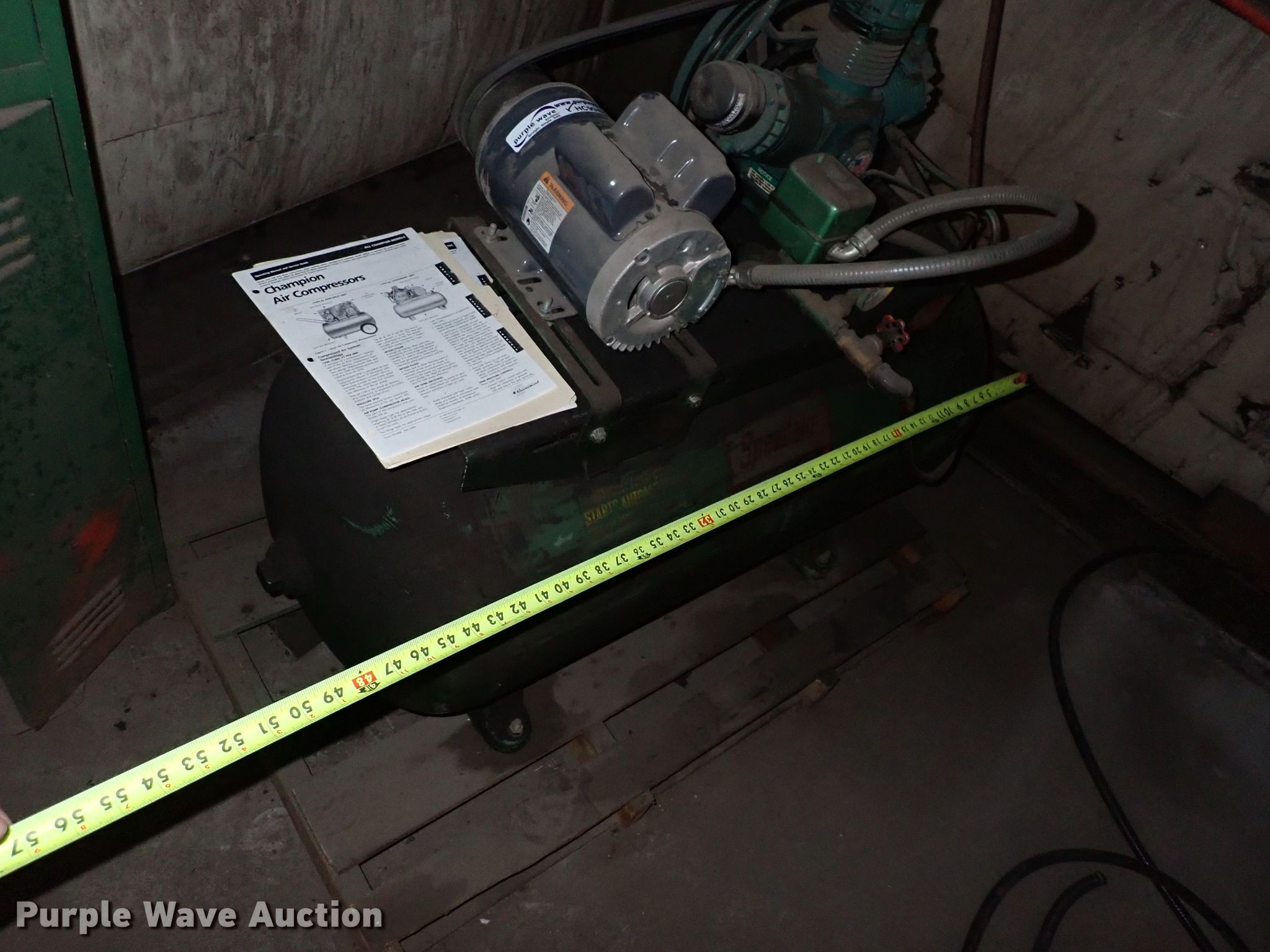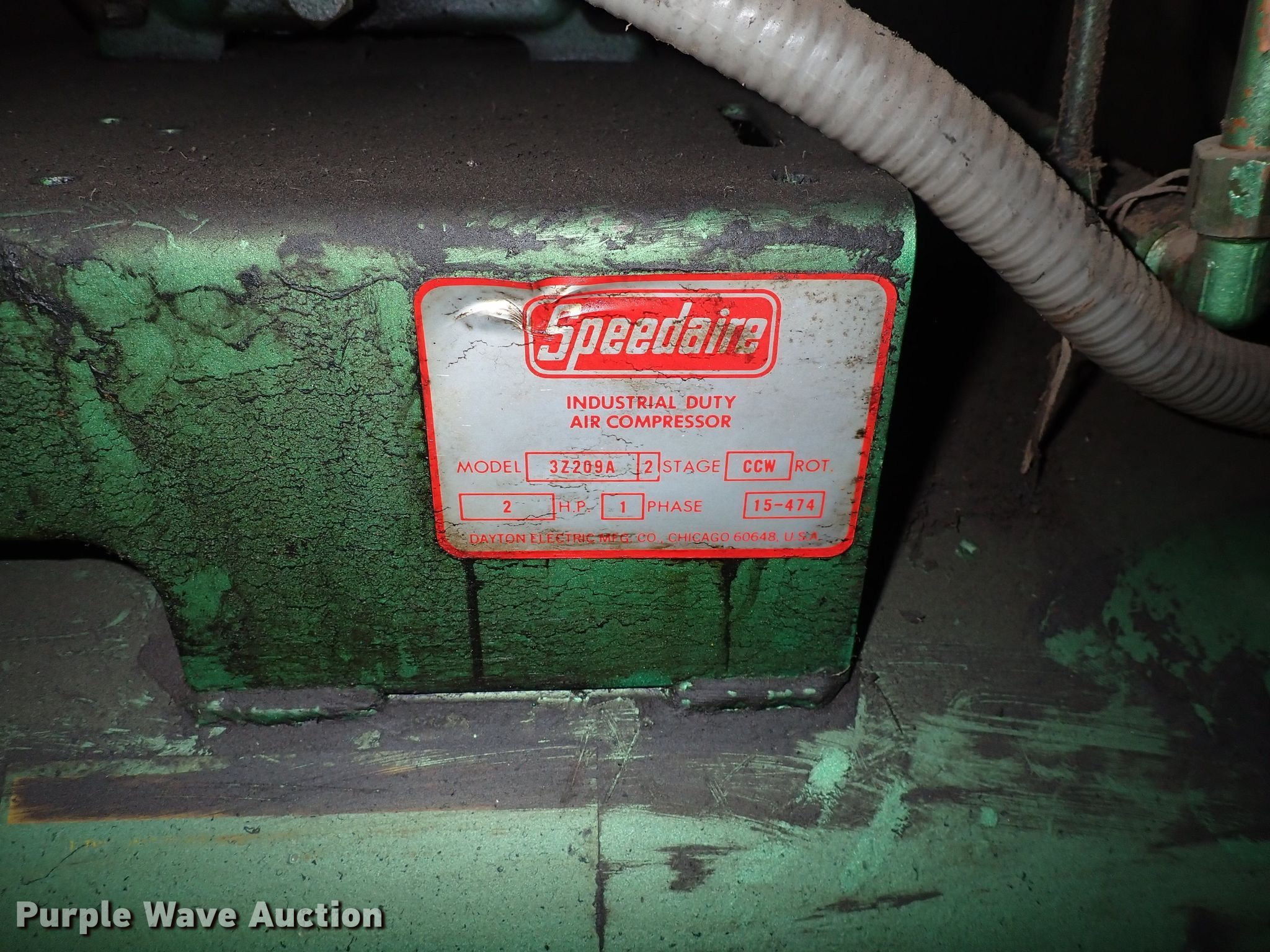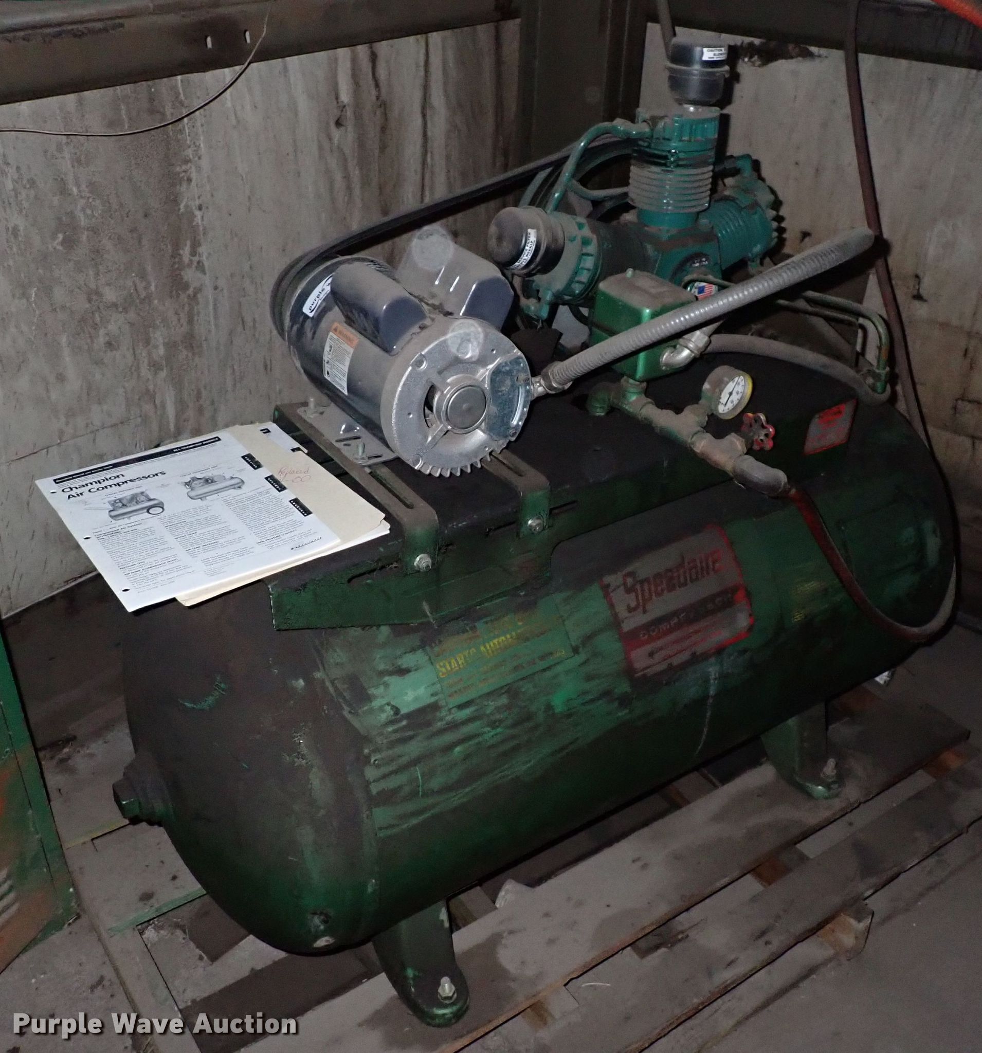 Purple Wave is selling a used Air Compressor in Kansas. This item is a Speedaire 3Z209A air compressor with the following: Phase: Single