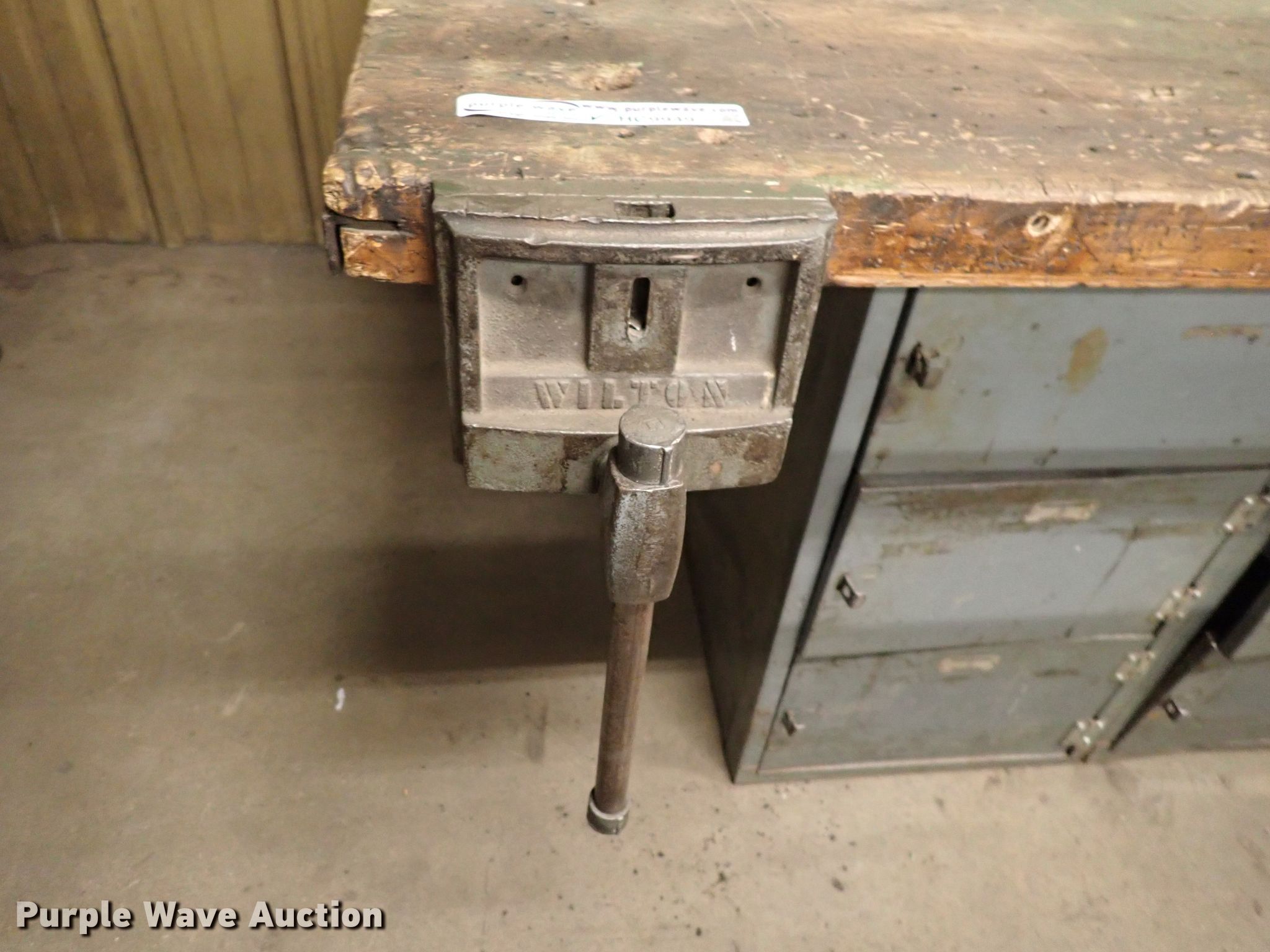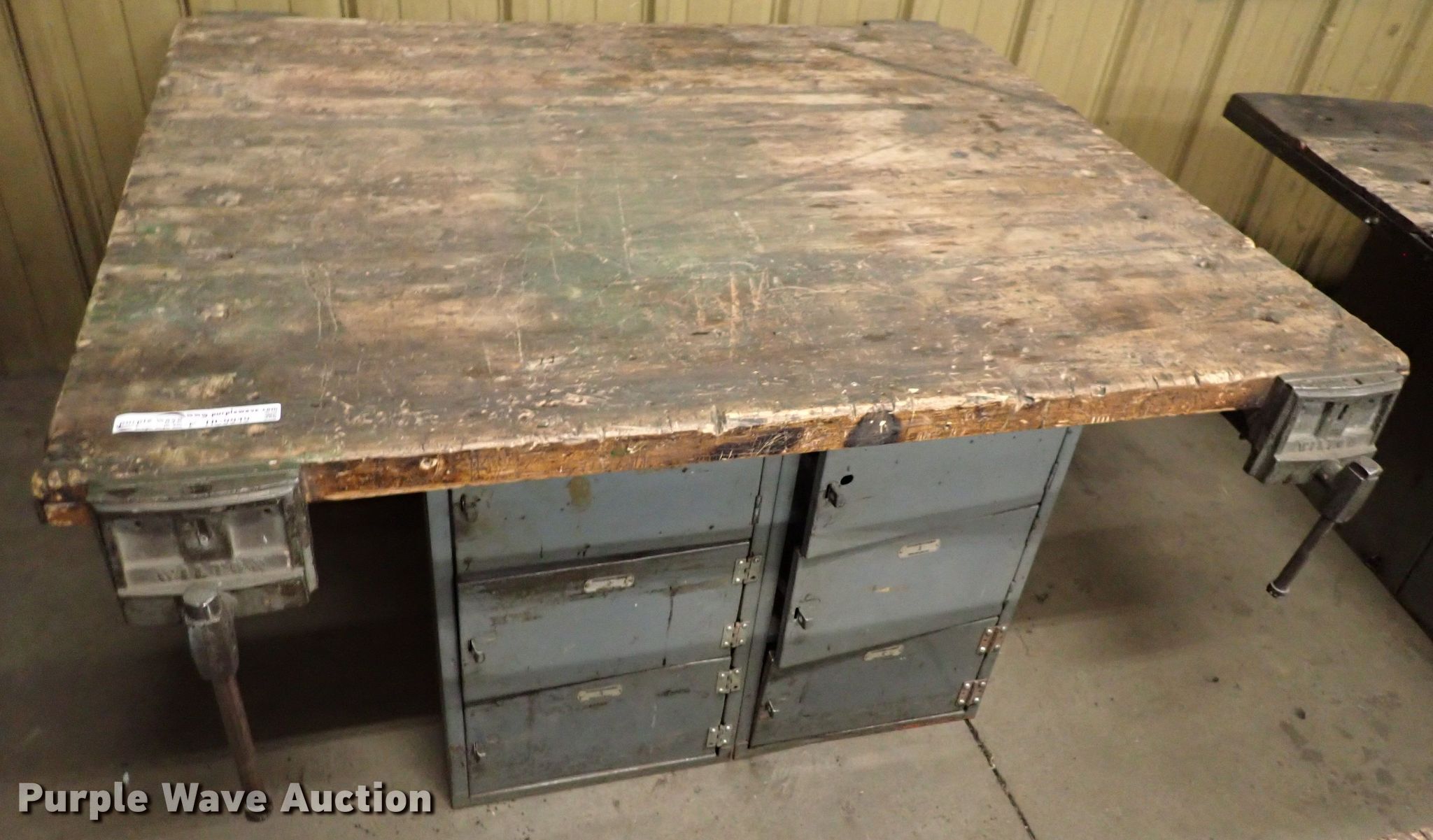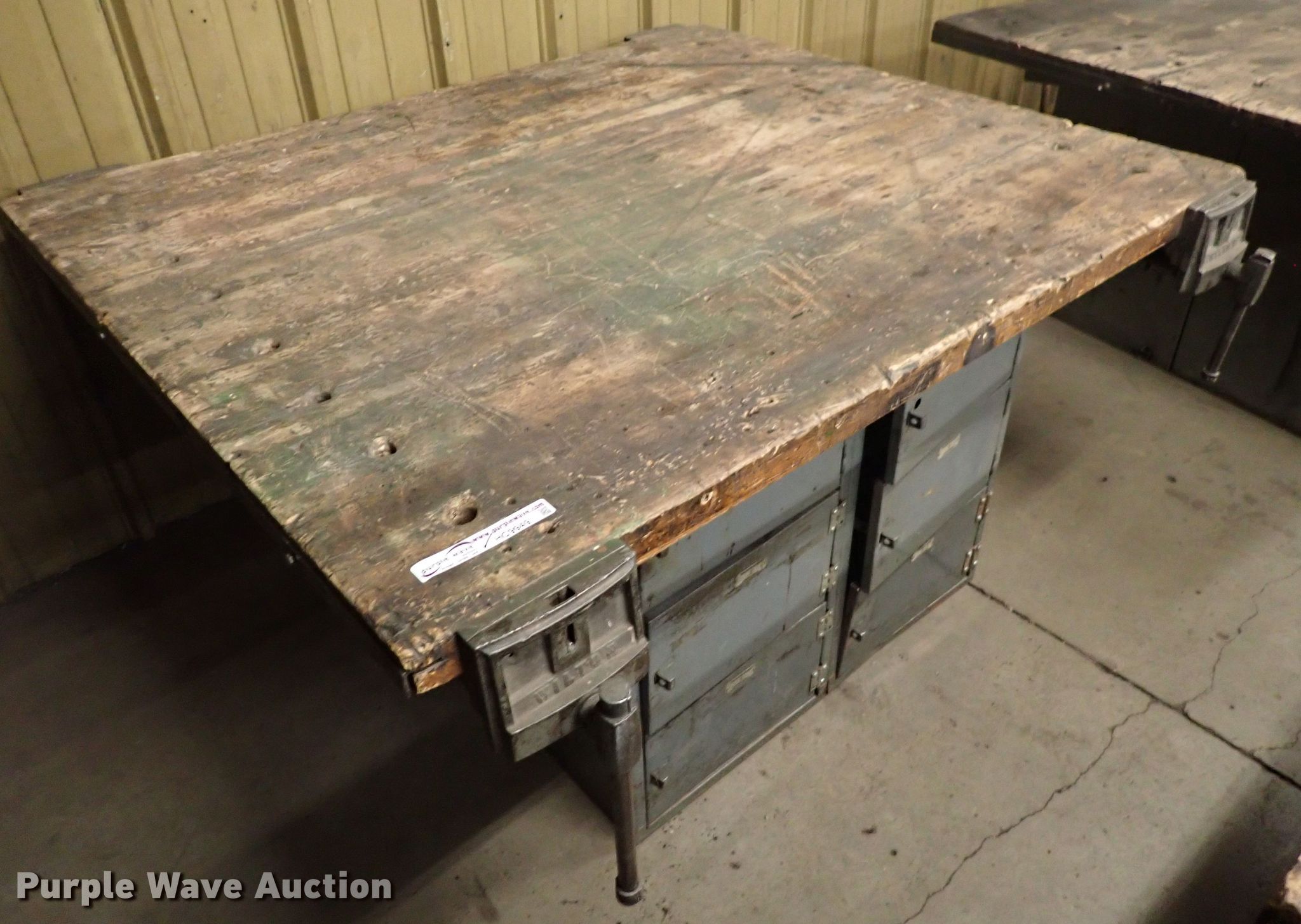 Purple Wave is selling a used Tools in Kansas. This item is a Table with the following: 64" x 55" x 33", Vise