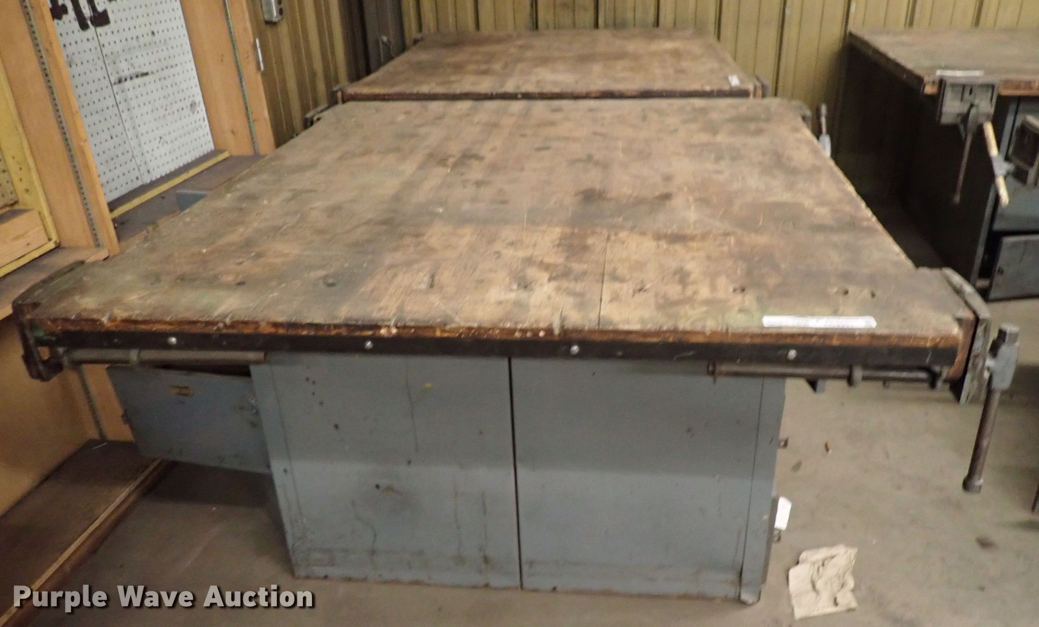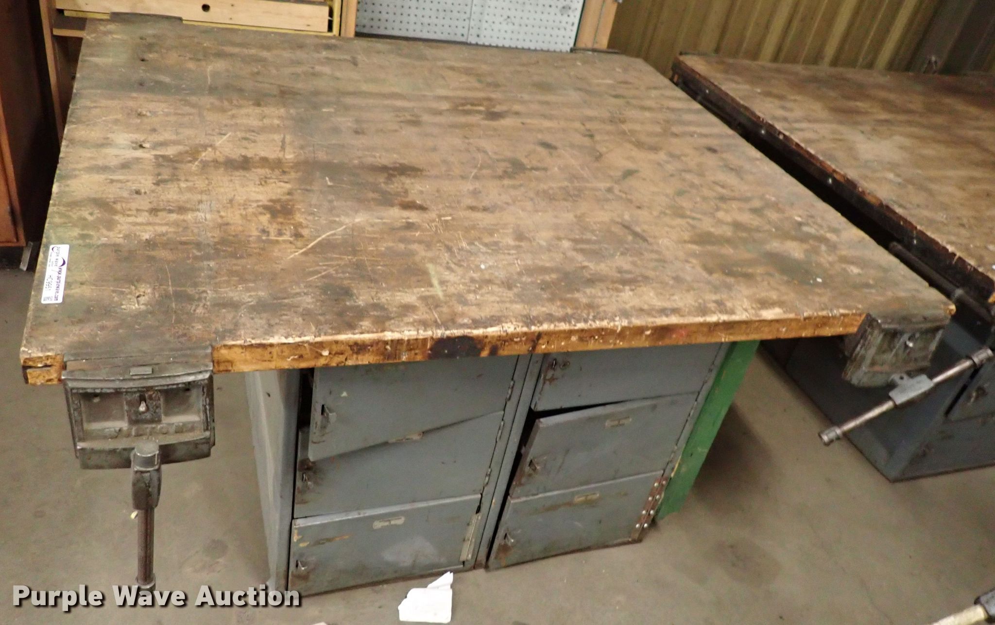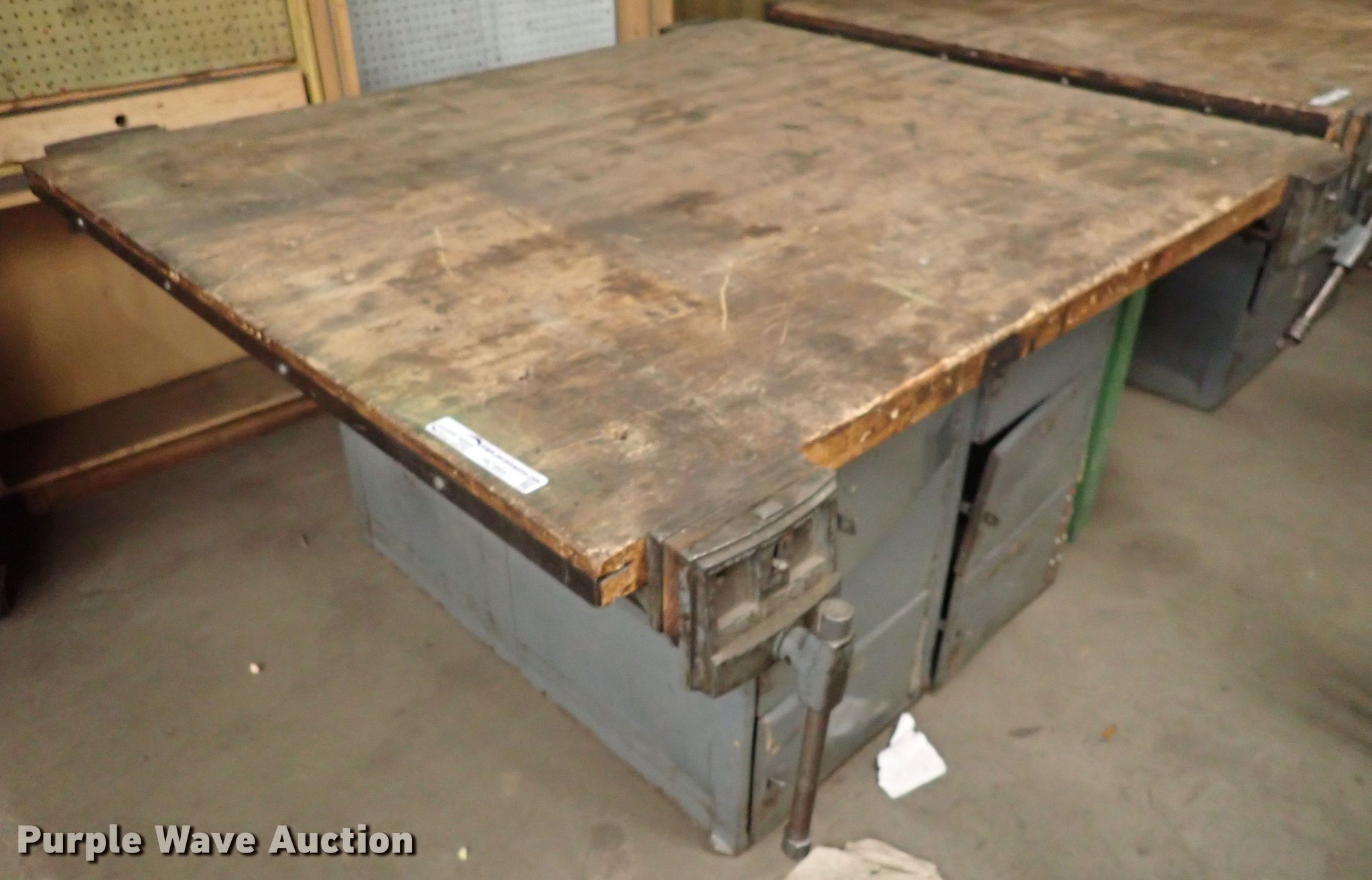 Purple Wave is selling a used Tools in Kansas. This item is a Table with the following: 64" x 55" x 34", Vise