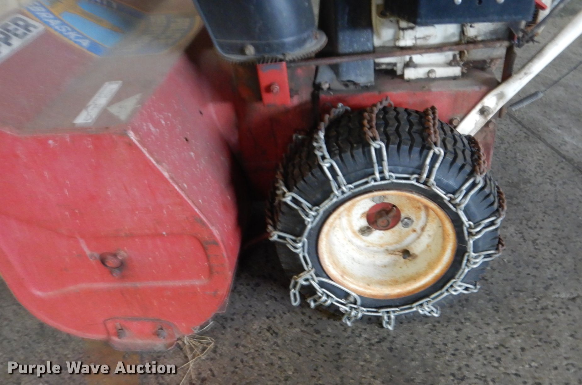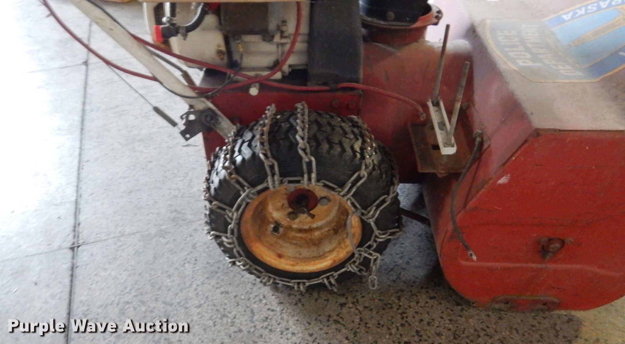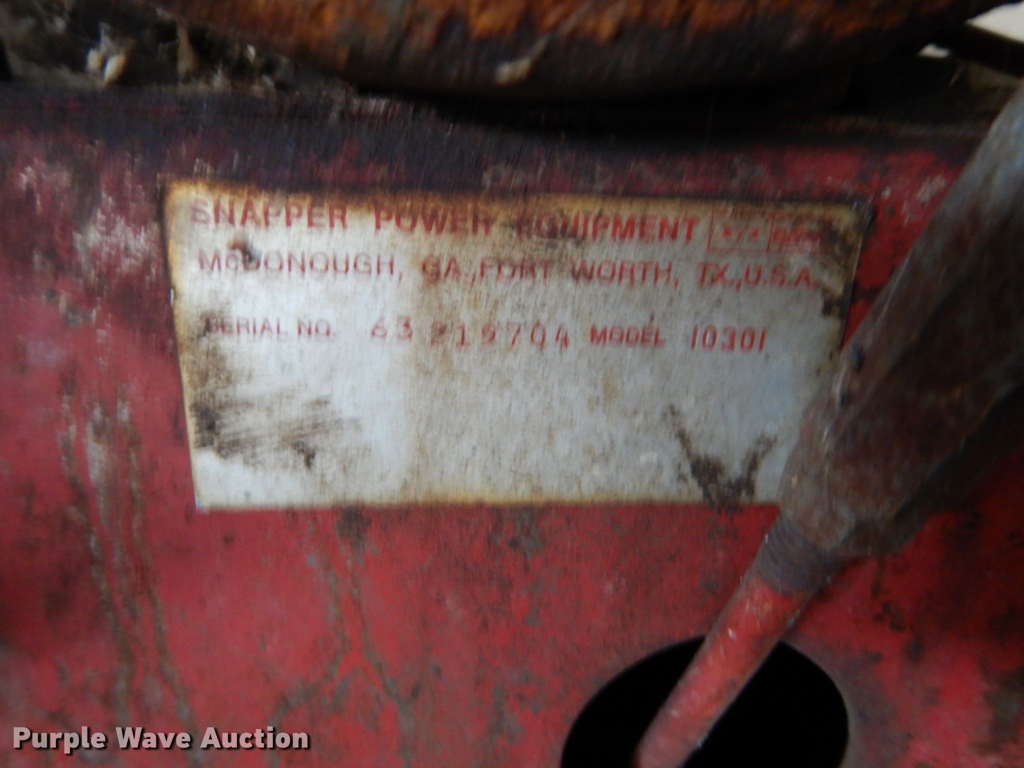 Purple Wave is selling a used Lawn and Garden in Nebraska. This item is a Snapper 1030 snow blower with the following: Single cylinder gas engine, 30" working width, 16x8.50-8 tires, No battery, Unknown operating condition, Serial 63229704