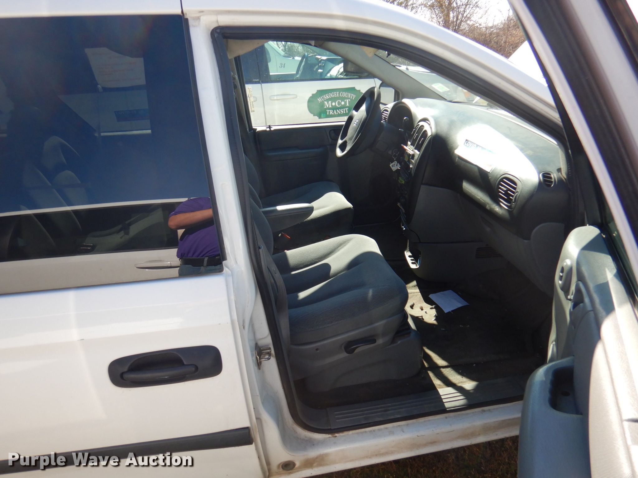 2005 Dodge Grand Caravan van. 313,946 miles on odometer. Engine Displacement: 3.3L V6 OHV 12V , Cylinders: 6, Fuel type: Gas. Transmission Automatic. Interior AC, Heat, Power windows, Power locks, Cruise control. Tires Size: 215/70R15. Notes Dash warning indicator: Check engine, No battery. Oklahoma title. 1D4GP24R15B224276. Muskogee County Public Transit Authority. Muskogee, OK 74403