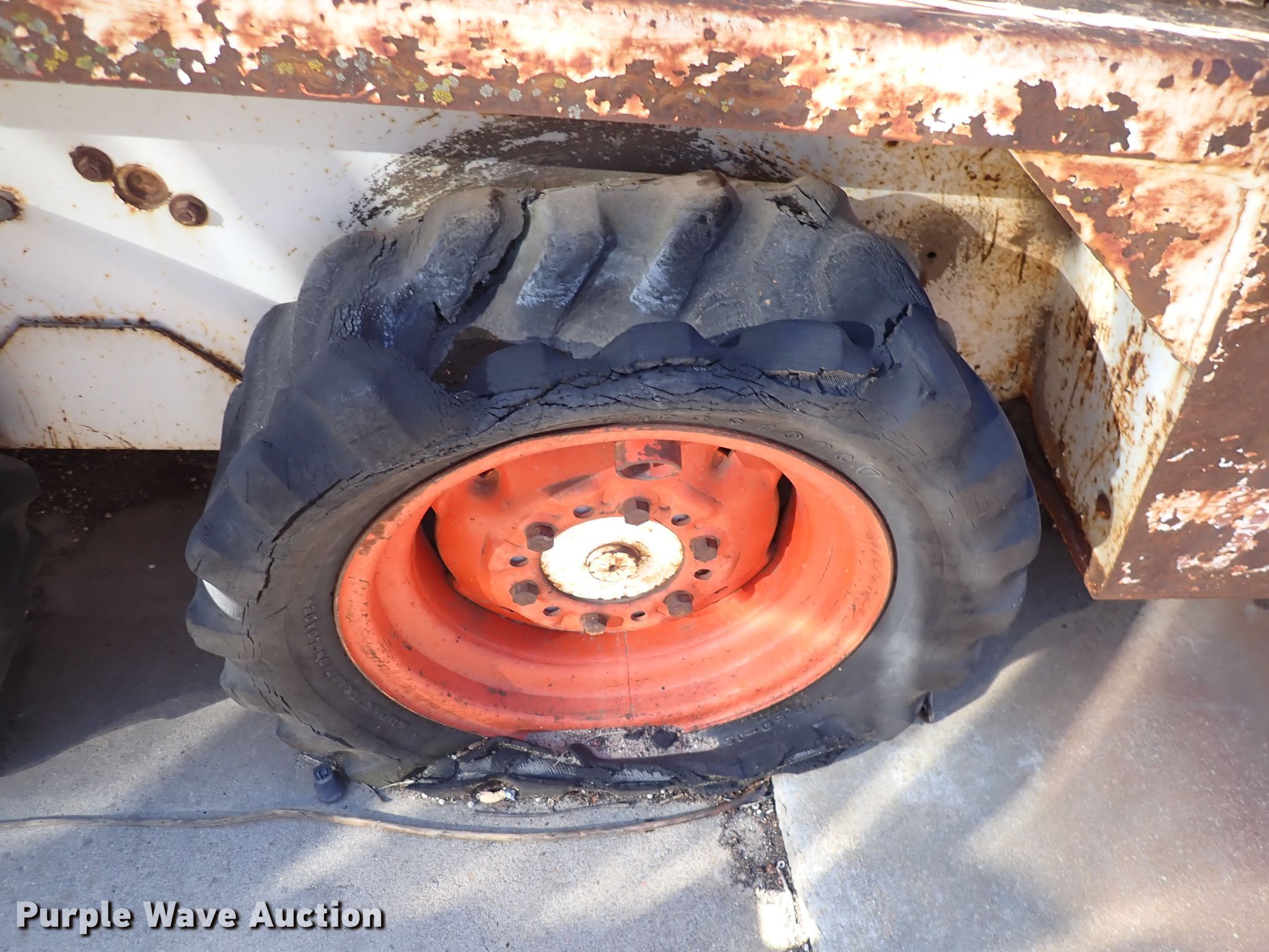 1976 Bobcat 520 skid steer loader. Unknown hours on meter, Serial: 4981-M-12727. Engine Kohler, Cylinders: 2, Fuel type: Gas. Transmission Hydrostatic. Operational Quick coupler: Manual, Bucket Width: 54", Bucket Width: 49". Tires Size: 27x8.50-15. Notes Tires flat/damaged, Non-operational unit. Wichita, KS 67204