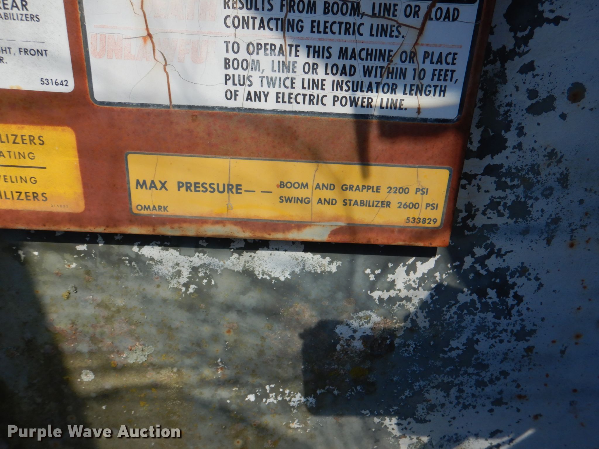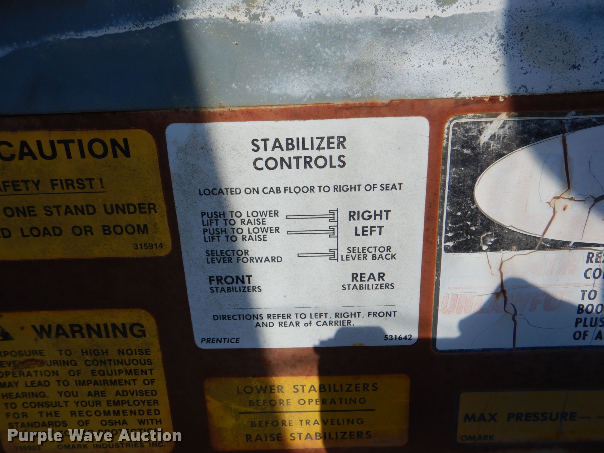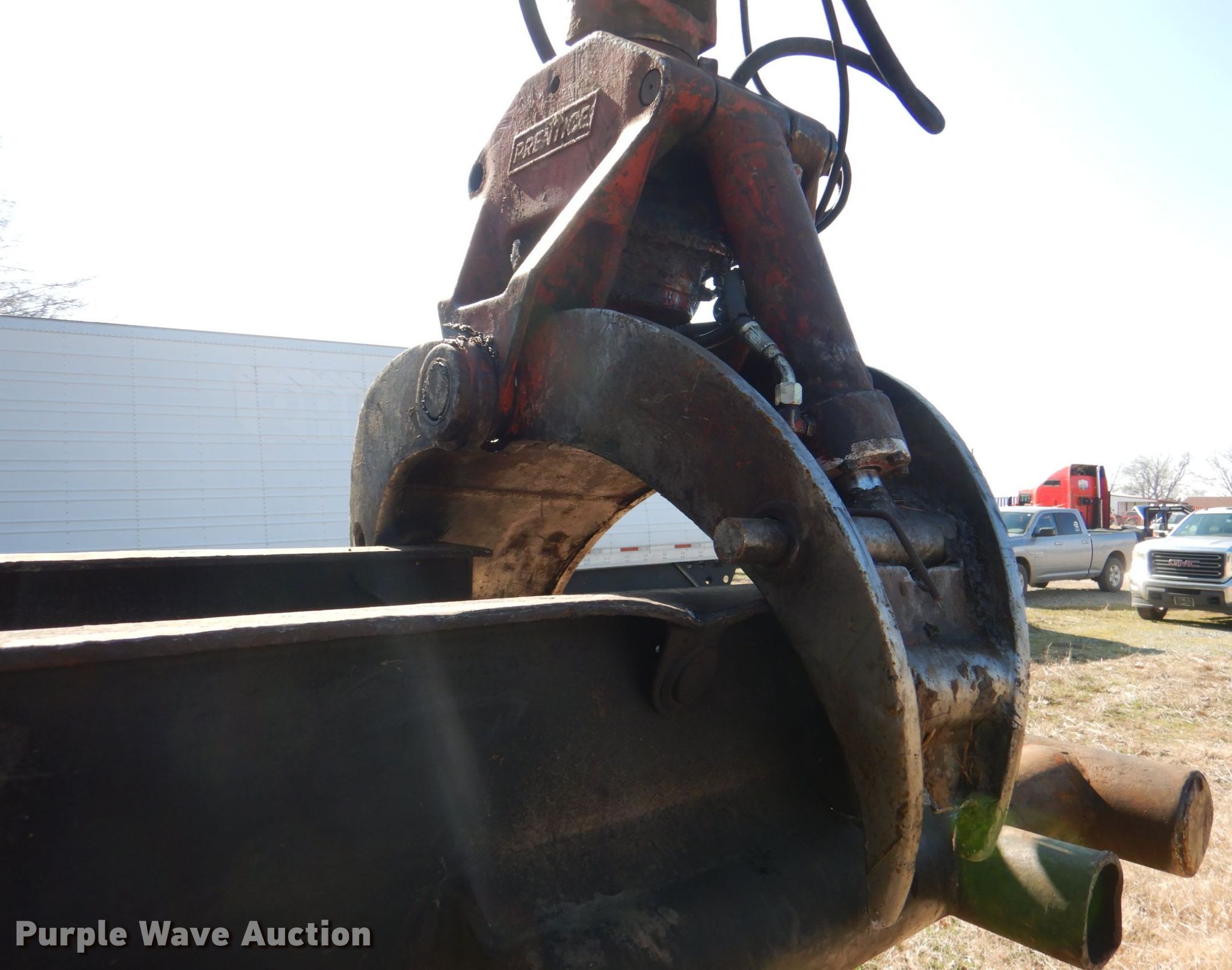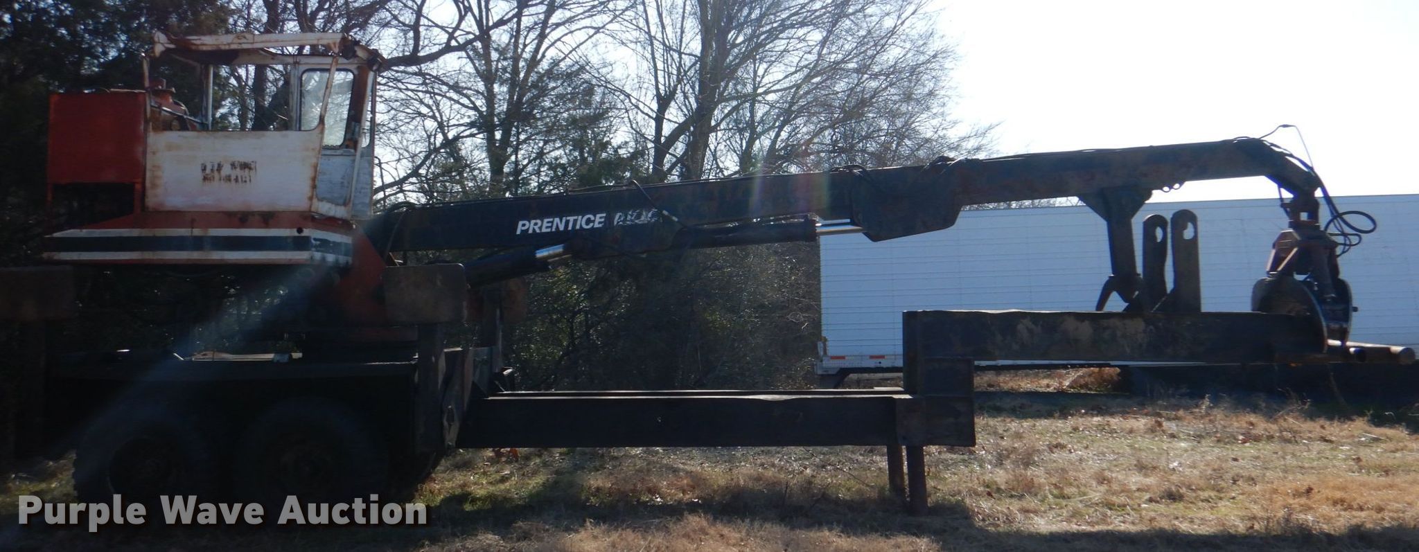 Purple Wave is selling a used Log Loader in Oklahoma. This item is a Prentice D210C log loader with the following: Serial: 210P23595, Cummins 5.9L six cylinder diesel engine, 27' boom length, 31"W grapple, Fuel leak, Battery weak