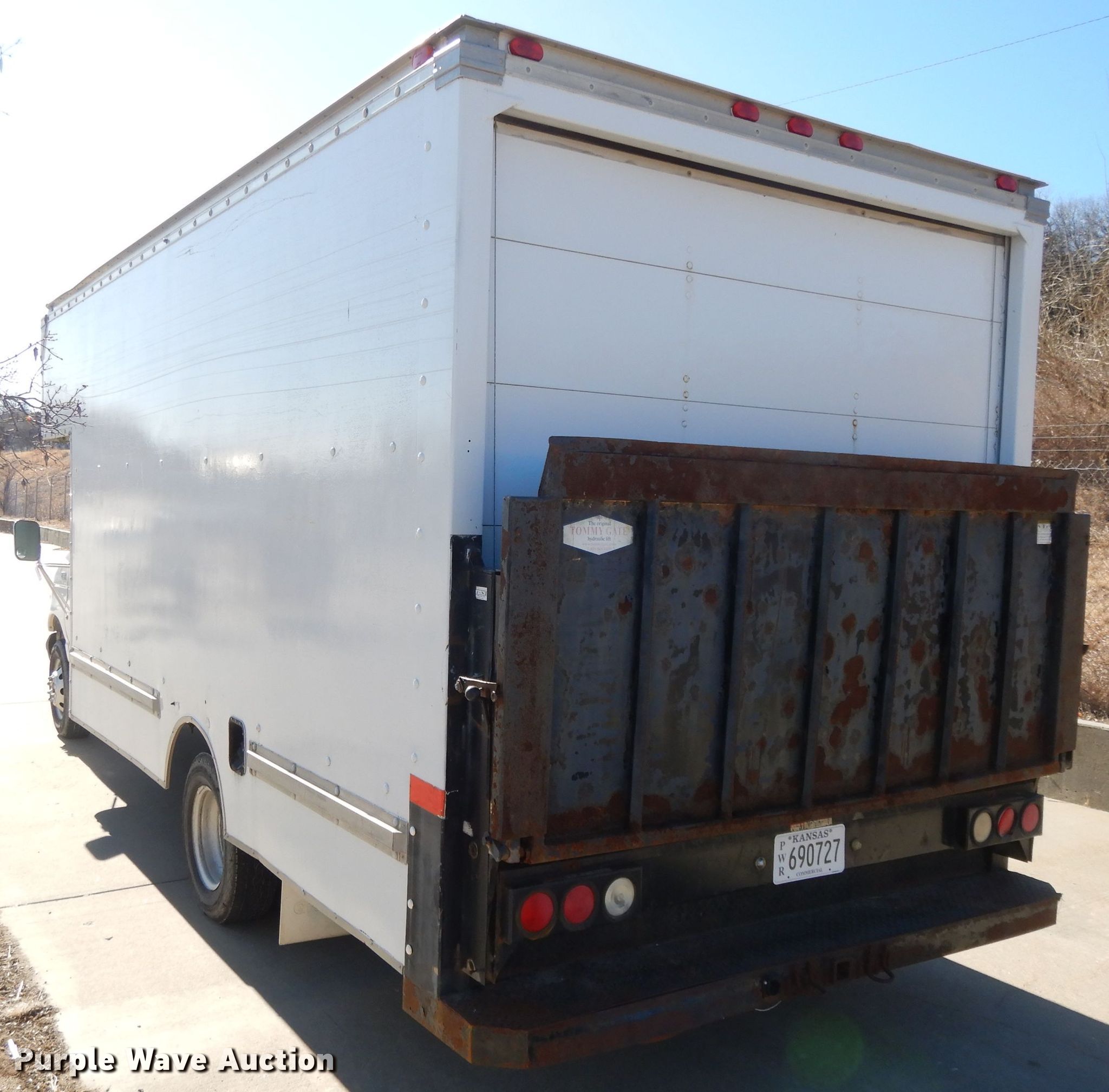 1999 Ford Econoline E350 Super Duty box truck. 126,105 miles on odometer, Unit #: 304. Engine Displacement: 5.4L SOHC 16V, Cylinders: 8, Fuel type: Gas. Transmission Automatic. Chassis Axles: Single, Suspension: Spring, Brakes: Hydraulic, GVWR: 11,500 lbs, Wheelbase: 158". Interior AC, Heat. Operational Box bed Gruman, Length: 15', Width: 96", Floor: Wood, End gate lift Tommy Gate VSW91-1650S42TP06.. Tires Size: 225/75R16. Notes Dash warning indicator: ABS, Climate control is stuck on defrost. Kansas title. 1FDWE37L9XHA98286. 338 Seth Child Rd. Manhattan, KS 66502