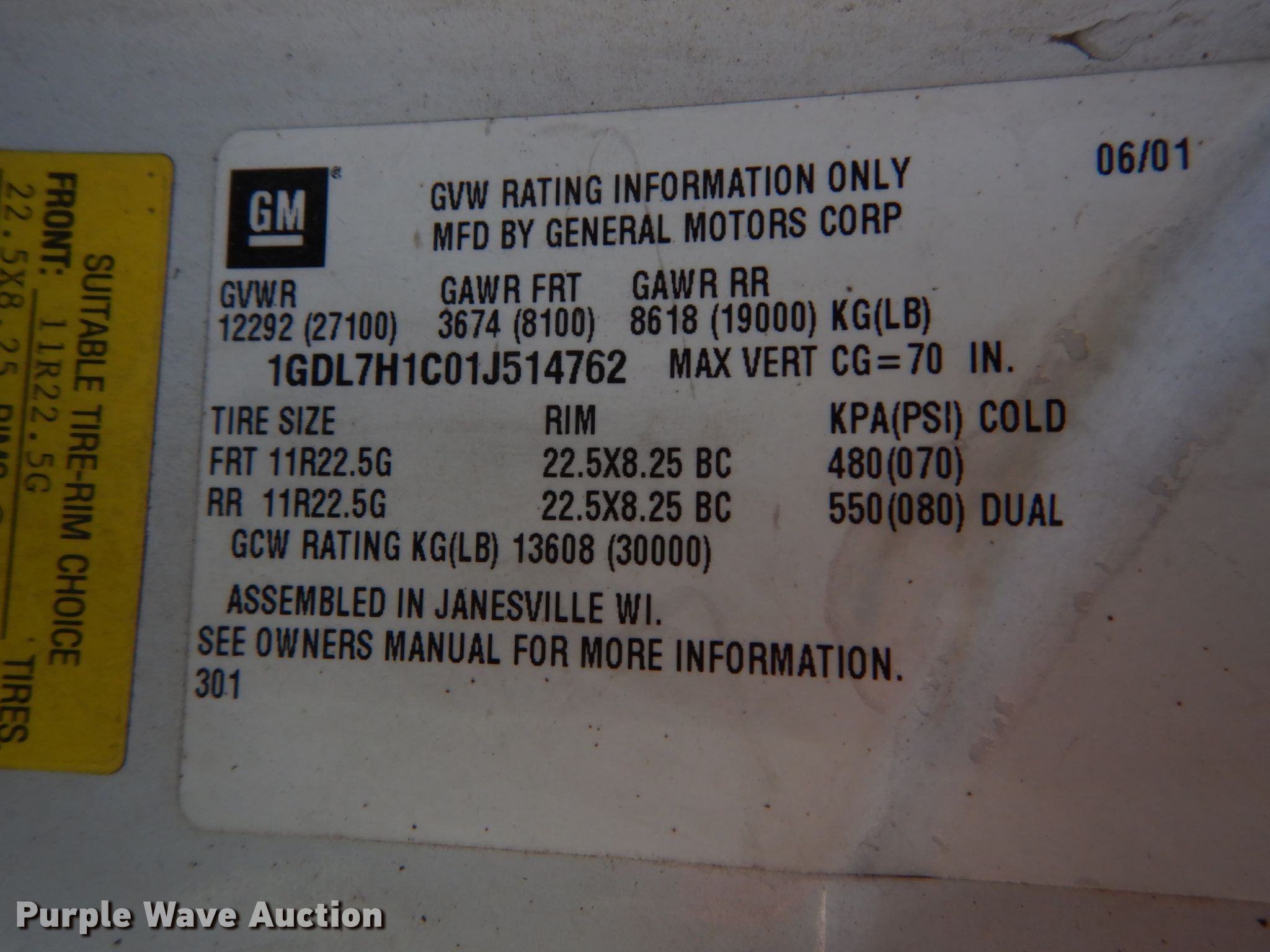 Purple Wave is selling a used Truck Chassis in Illinois. This item is a 2001 GMC C7500 truck cab and chassis with the following: 103,811 miles on odometer