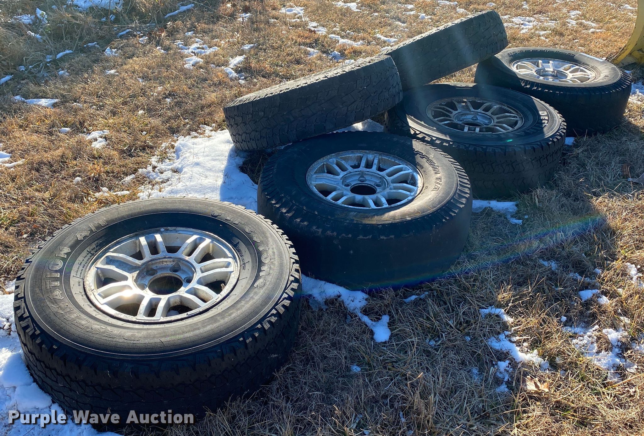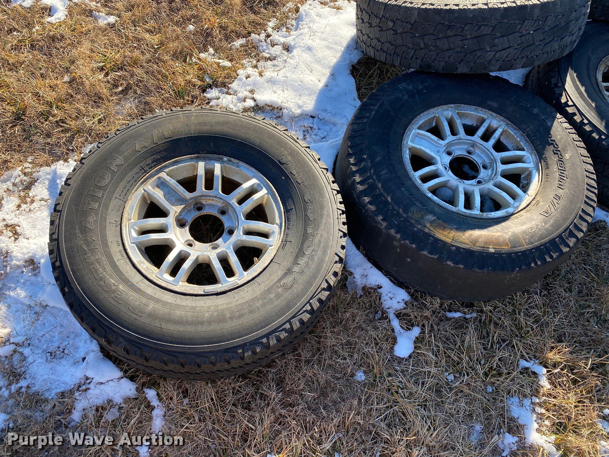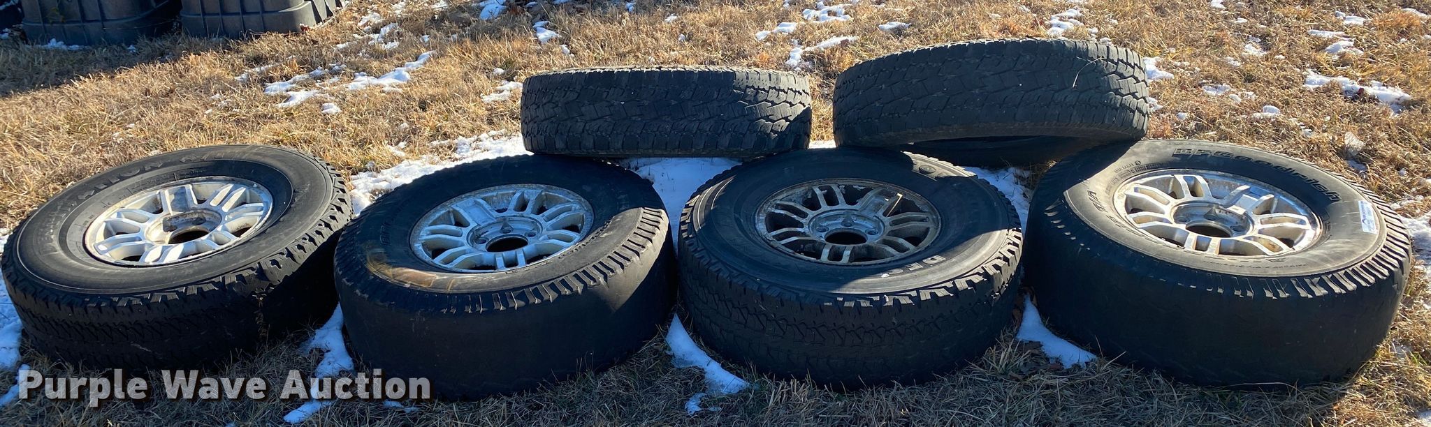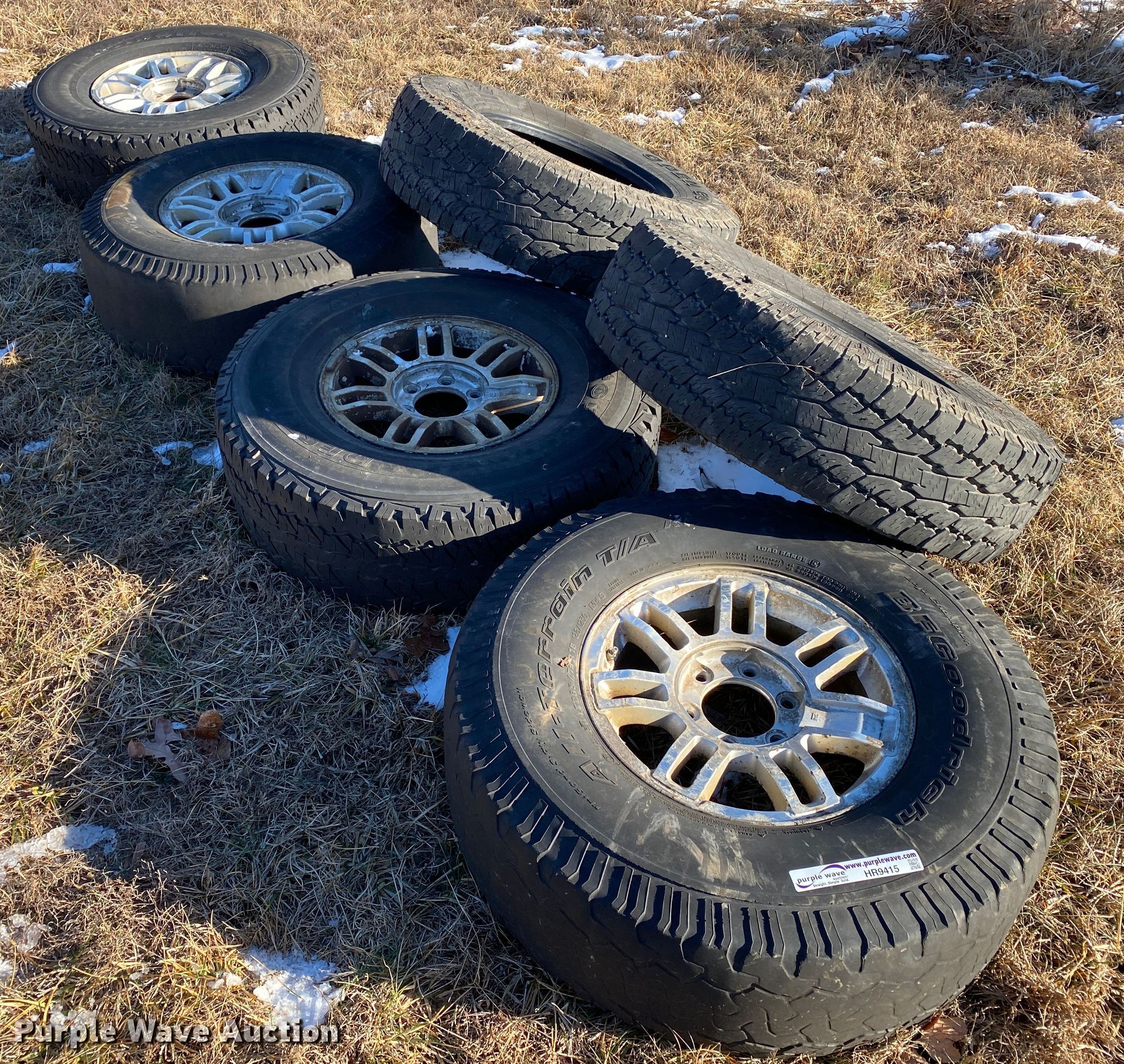 Purple Wave is selling a used Fleet Tires in Missouri. This item is a (6) tires with the following: (4) 285/75R16, 16" six lug wheels, (2) 255/80R17