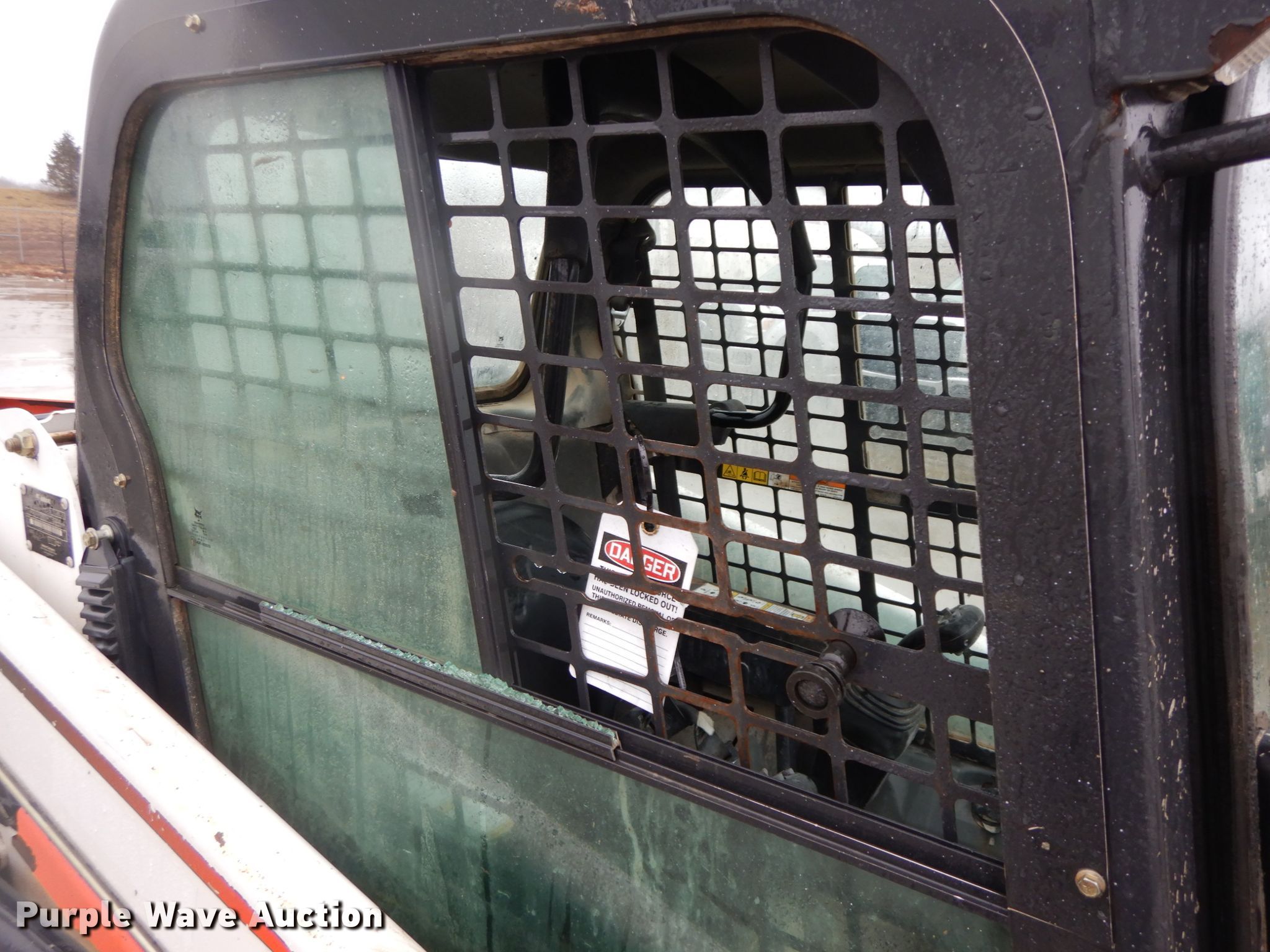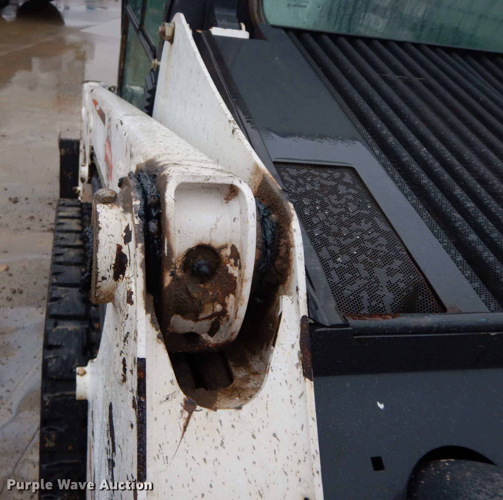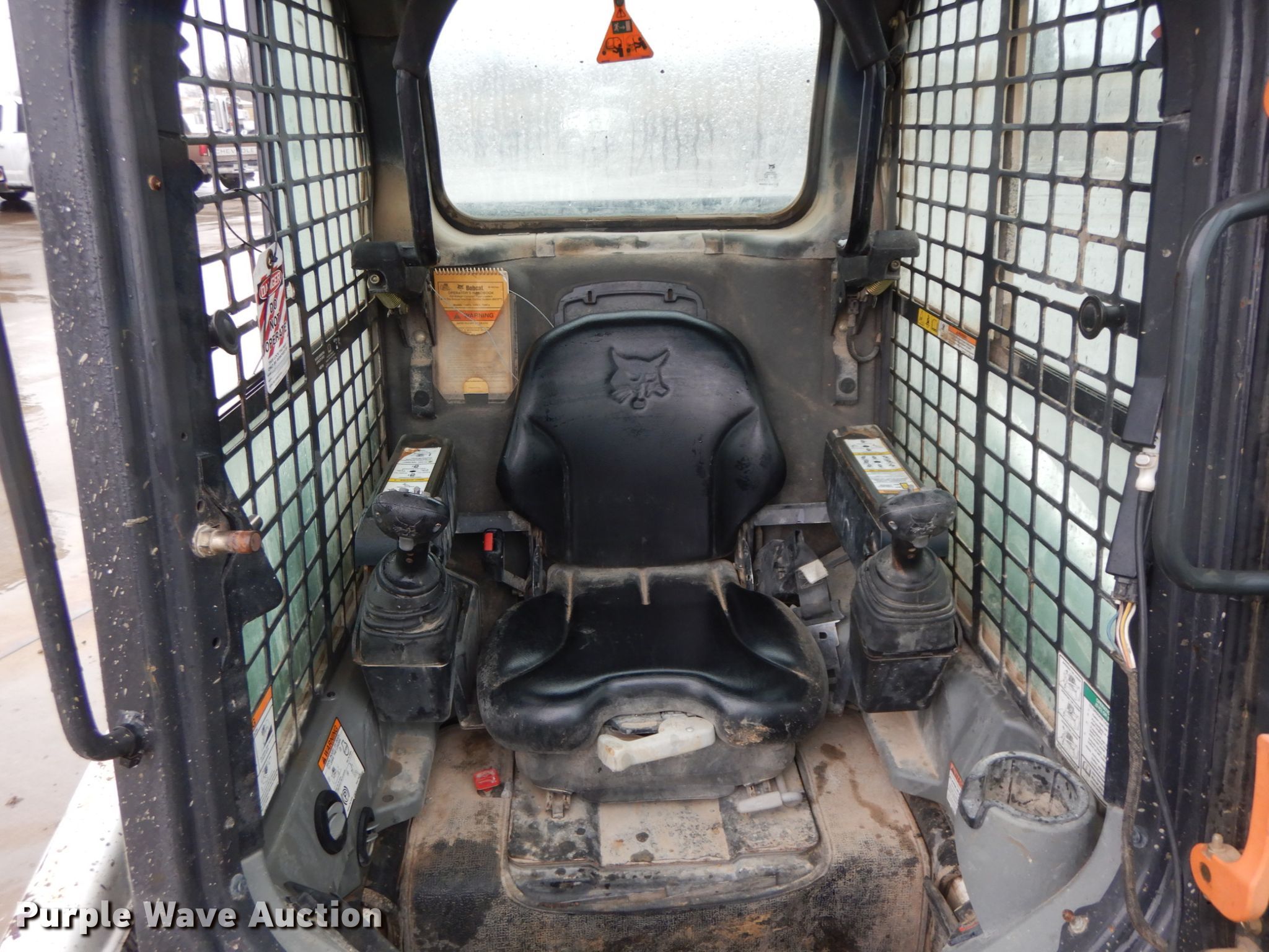 2015 Bobcat T450 tracked skid steer loader. 2,737 hours on meter, Serial: AUVP11786. Engine Cylinders: 4, Fuel type: Diesel. Transmission Hydrostatic, Two speed travel. Operators station Enclosed cab, AC, Heat, Bucket control: Hand, Pattern changer, Electronic Monitoring System panel. Operational Auxiliary hydraulics, Quick coupler: Manual, Bucket Width: 56", Cutting edge: Bolt-on. Tracks Width: 12". Notes Side window broken. Emery Sapp & Sons. 5670 MO-763. Columbia, MO 65202