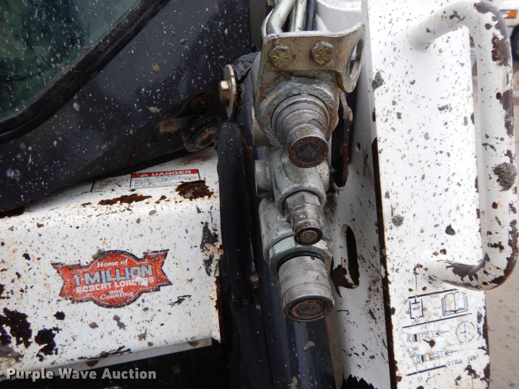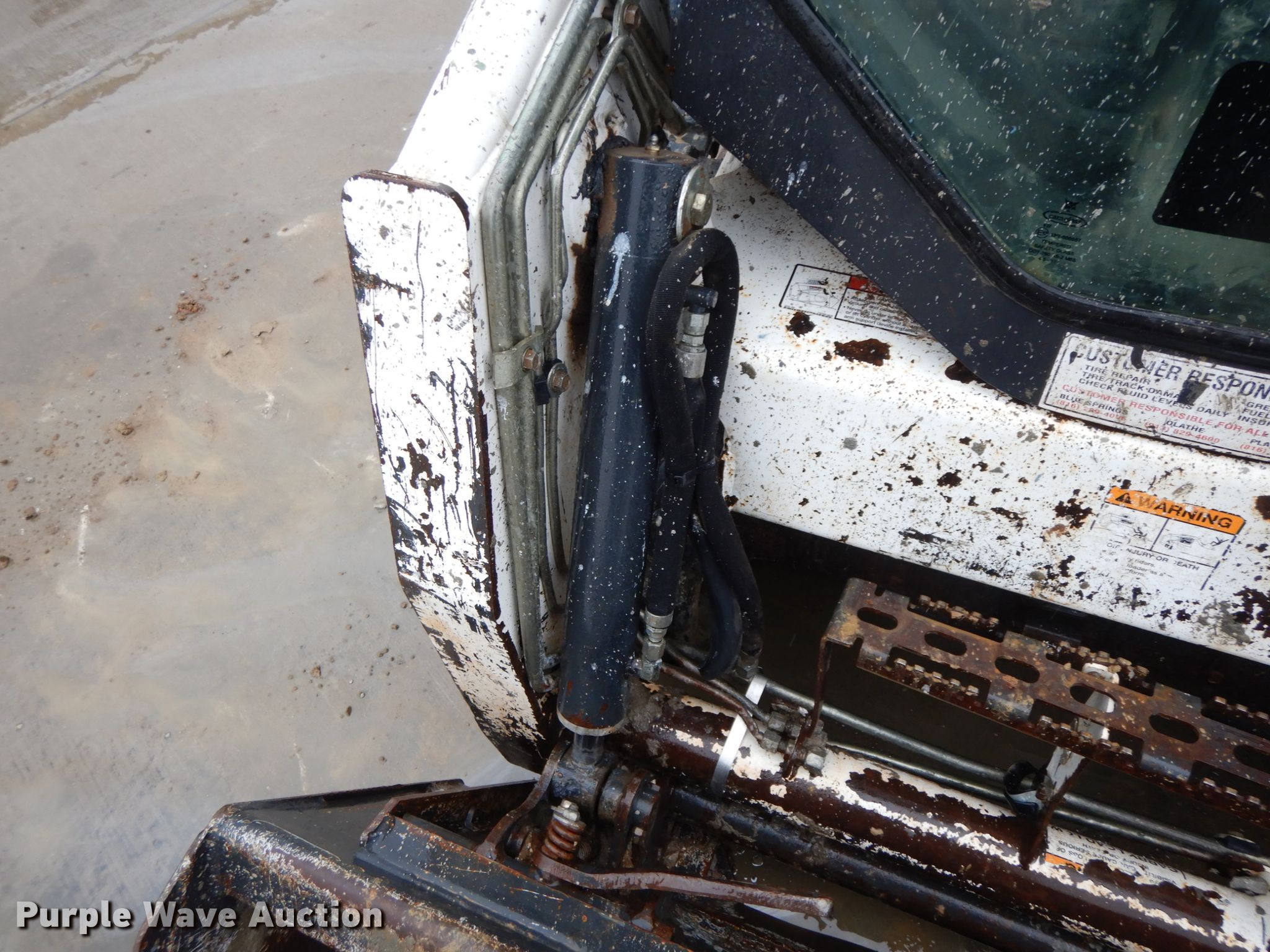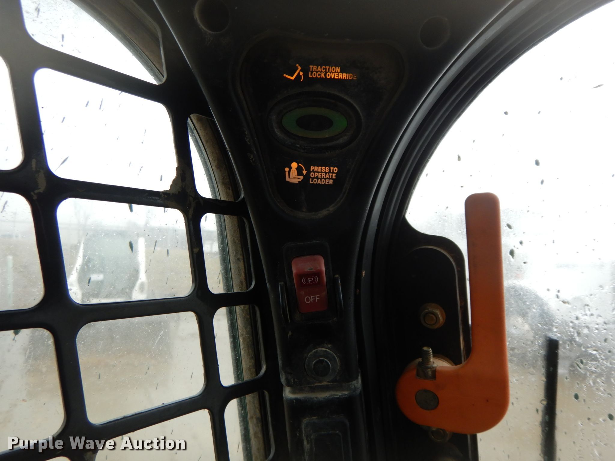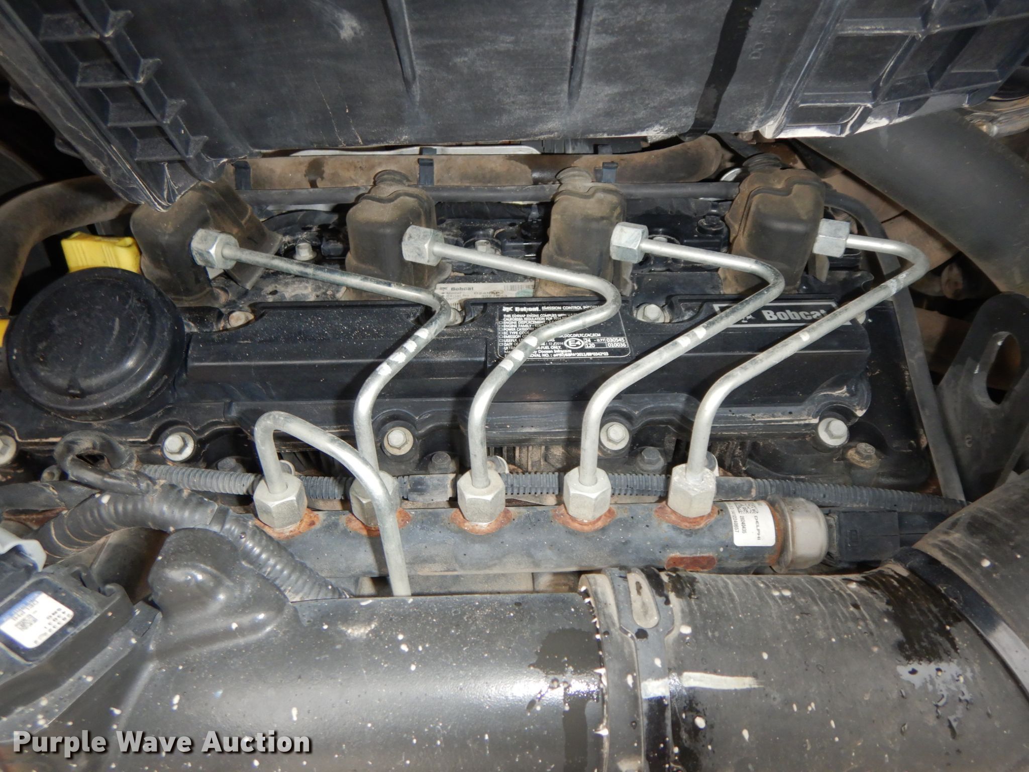2015 Bobcat T450 tracked skid steer loader. 2,737 hours on meter, Serial: AUVP11786. Engine Cylinders: 4, Fuel type: Diesel. Transmission Hydrostatic, Two speed travel. Operators station Enclosed cab, AC, Heat, Bucket control: Hand, Pattern changer, Electronic Monitoring System panel. Operational Auxiliary hydraulics, Quick coupler: Manual, Bucket Width: 56", Cutting edge: Bolt-on. Tracks Width: 12". Notes Side window broken. Emery Sapp & Sons. 5670 MO-763. Columbia, MO 65202