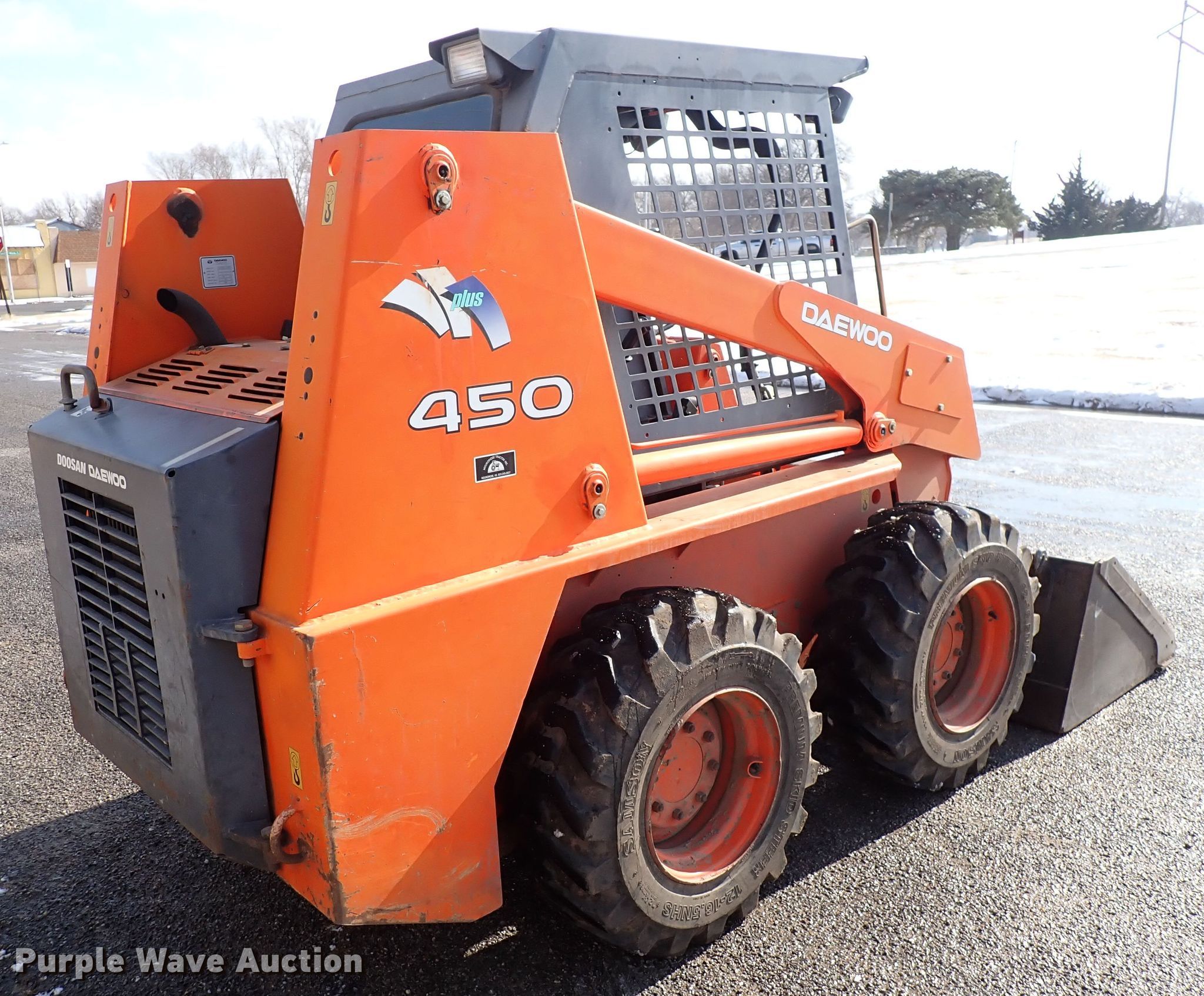 Purple Wave is selling a used Skid Steer Loader in Kansas. This item is a 2005 Daewoo 450 skid steer loader with the following: 869 hours on meter, Serial: AL-01013