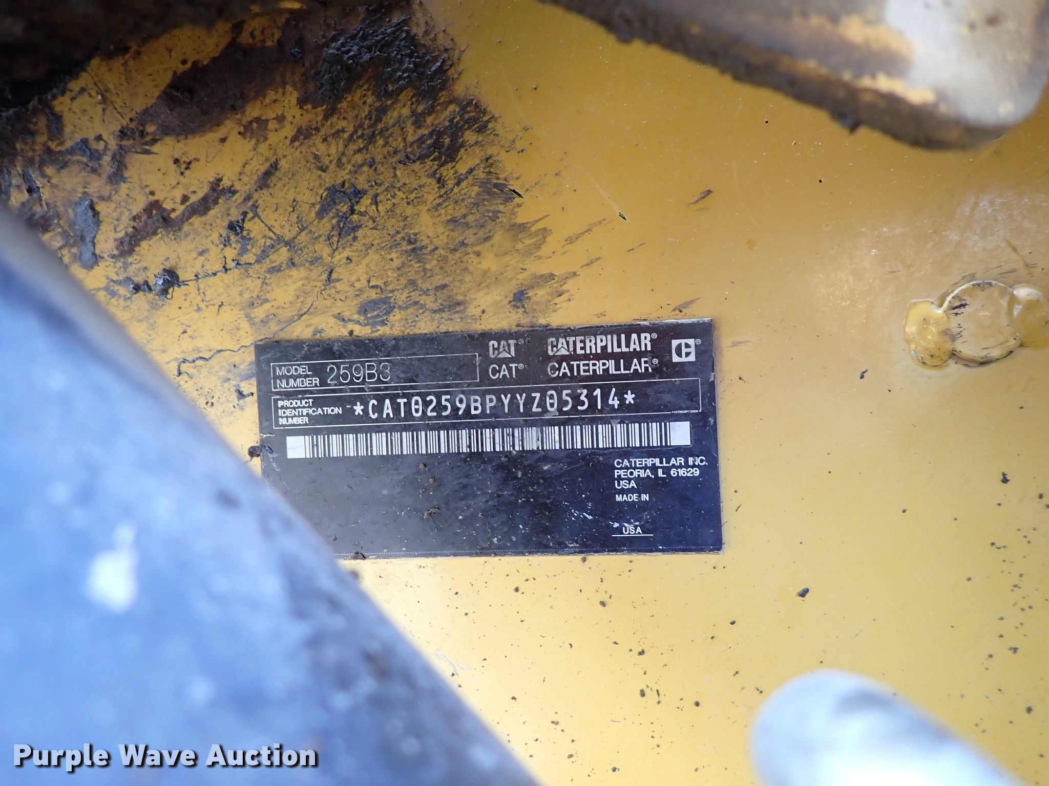 Purple Wave is selling a used Tracked Skid Steer Loader in Oklahoma. This item is a Caterpillar 259B Series 3 tracked skid steer loader with the following: 4,240 hours on meter, Serial: CAT0259BPYYZ85314, Unit #: 53.11L