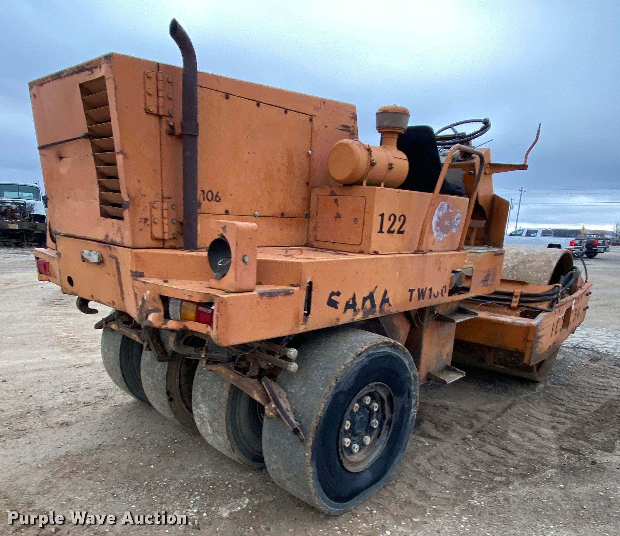 Sakai TW100 combination roller. Engine. Cylinders: 5, Fuel type: Diesel. Transmission Hydrostatic. Operational Drum: Smooth, Front drum Width: 84", Diameter: 48". Tires Rear: 12.00-16, Quantity: 4. Notes Non-operational hour meter. Atlas Asphalt Inc. 4437 AR-5 #1. Mountain Home, AR 72653