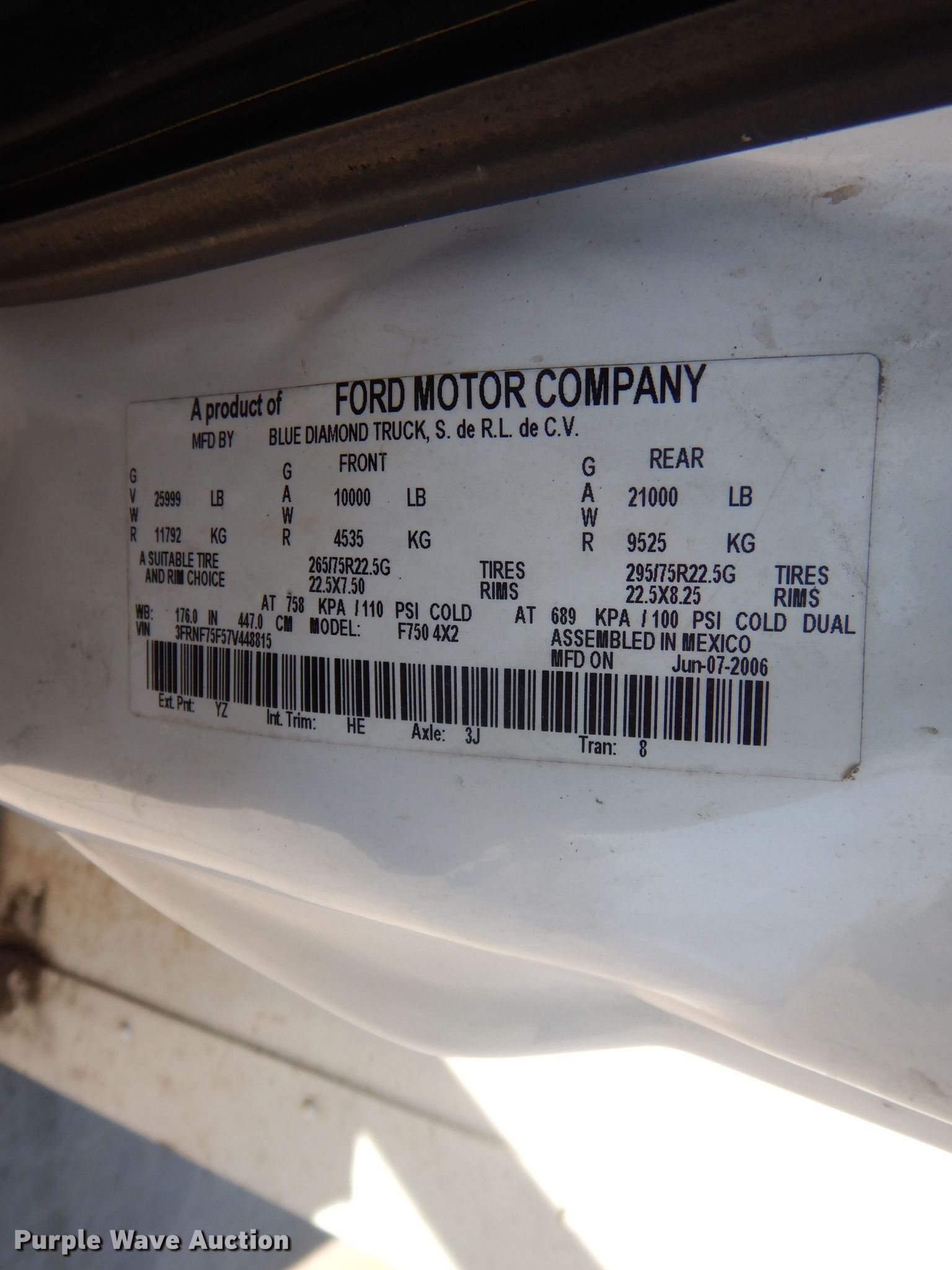 2007 Ford F750 Super Duty dump truck. 128,764 miles on odometer, Unit #: 519. Engine Cummins ISB, Displacement: 5.9L, Cylinders: 6, Fuel type: Diesel. Transmission Manual, Speed: 6. Chassis Axles: Single, Suspension: Spring, Brakes: Hydraulic, PTO, GVWR: 25,999 lbs FAWR: 10,000 lbs, RAWR: 21,000 lbs, Wheelbase: 176". Interior AC, Heat, Cruise control. Operational Dump bed Arbortech, 14' L x 96" W, Side height: 72", Bed type: Steel, Ram: Single , End gate: Manual. Tires Size: 11R22.5. Kansas title. 3FRNF75F57V448815. HME Inc.. 2921 US-24. Topeka, KS 66618