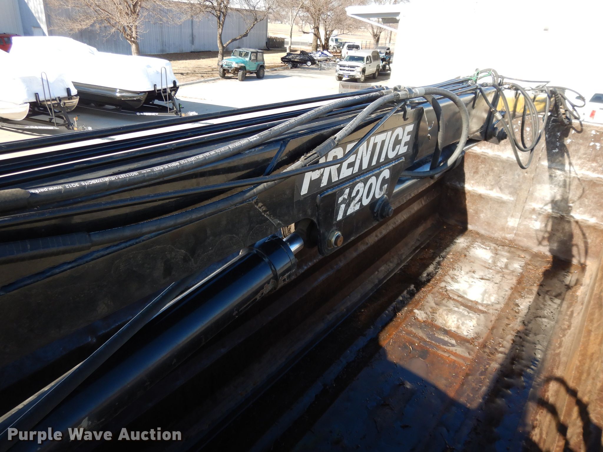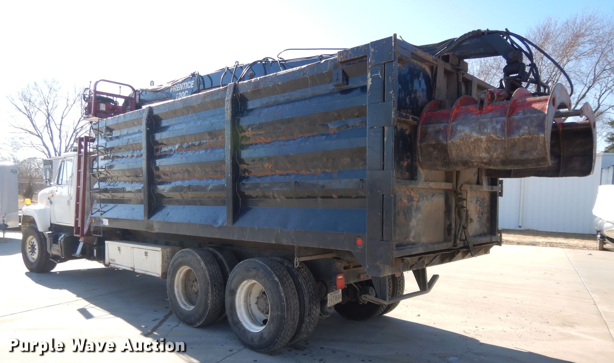 1999 International 2574 crane truck. 210,468 miles on odometer, Unit #: 520. Engine International 530, Displacement: 8.7L, Cylinders: 6, Fuel type: Diesel. Transmission Manual, Speed: 10. Chassis Axles: Tandem, Suspension: Spring over walking beam, Brakes: Air, PTO, Wheelbase: 268". Interior Heat. Operational Bed Length: 20', Crane Prentice 120G, Boom Telescopic, Grapple: 42"W.. Tires Front: 425/65R22.5, Rear: 11R22.5. Kansas title. 1HTGGADT5XH603724. HME Inc.. 2921 US-24. Topeka, KS 66618