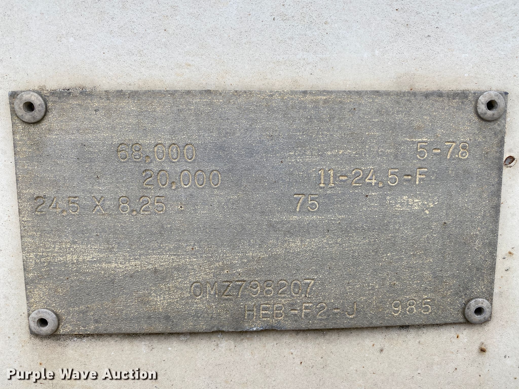 Purple Wave is selling a used Tank Trailer in Arkansas. This item is a 1978 Fruehauf pneumatic dry bulk trailer with the following: 42'L x 7'7"W overall, Steel tank, (3) compartments, (2) 4" diameter outlet valves, (3) 18"W manways, Dual leg landing gear, Spring suspension, Air brakes, Tandem axle, Steel wheels, 11R22.5 tires, GVWR 68,000 lbs, GAWR 20,000 lbs