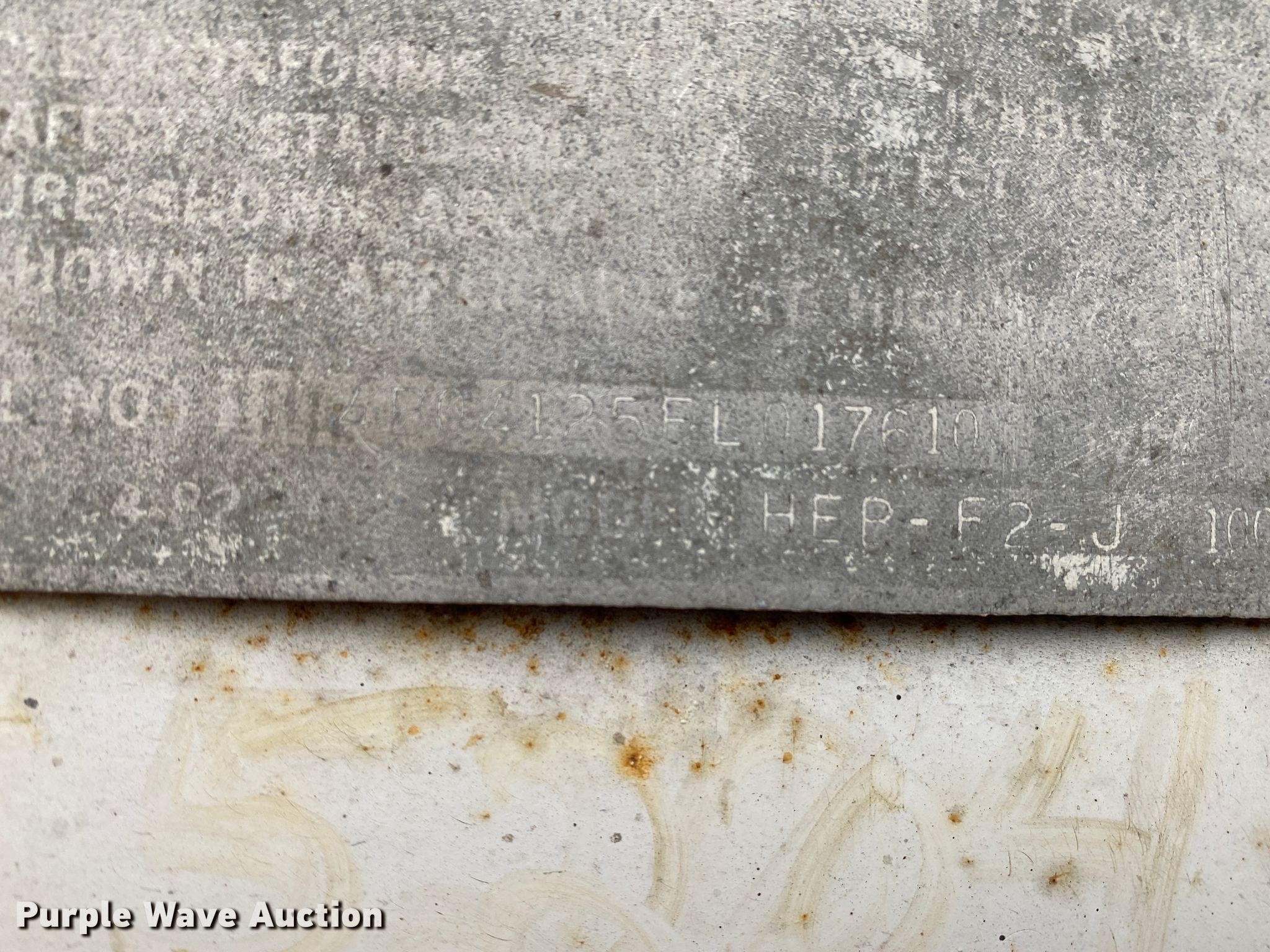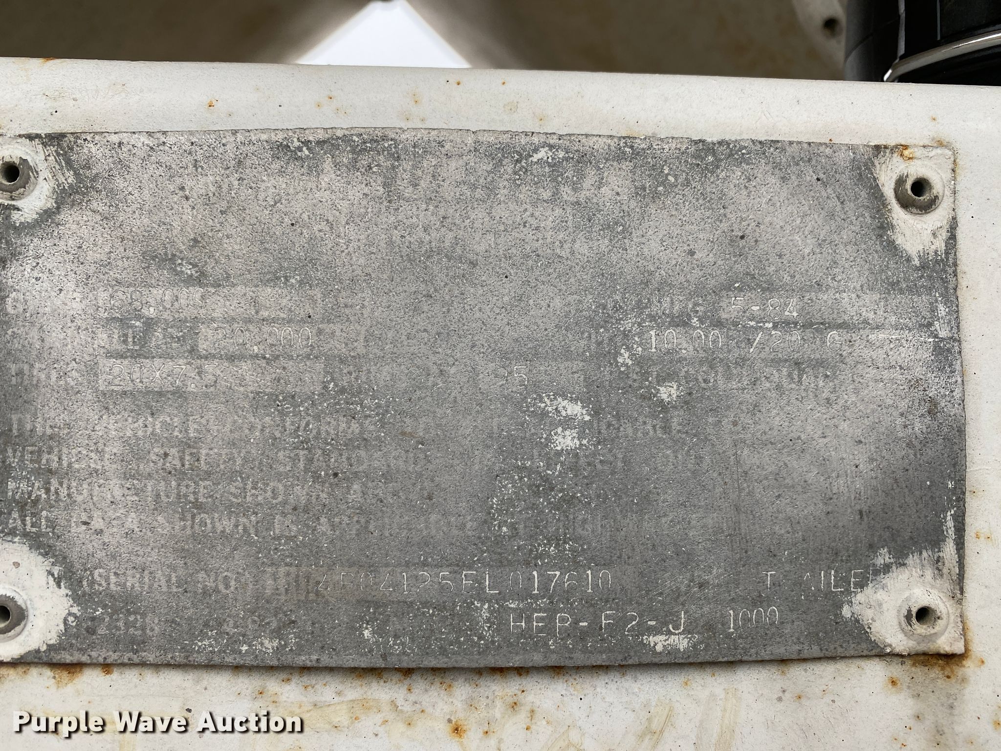 1984 Fruehauf pneumatic dry bulk trailer. 42'L x 8'W overall, Steel tank, (3) compartments, (2) 4" diameter outlet valves, (3) 18"W manways, Dual leg landing gear, Spring suspension, Air brakes, Tandem axle, Steel wheels, 11R22.5 tires, GVWR 68,000 lbs, GAWR 20,000 lbs. Arkansas title. 1H4B04125EL017610. Atlas Asphalt Inc. 4437 AR-5 #1. Mountain Home, AR 72653