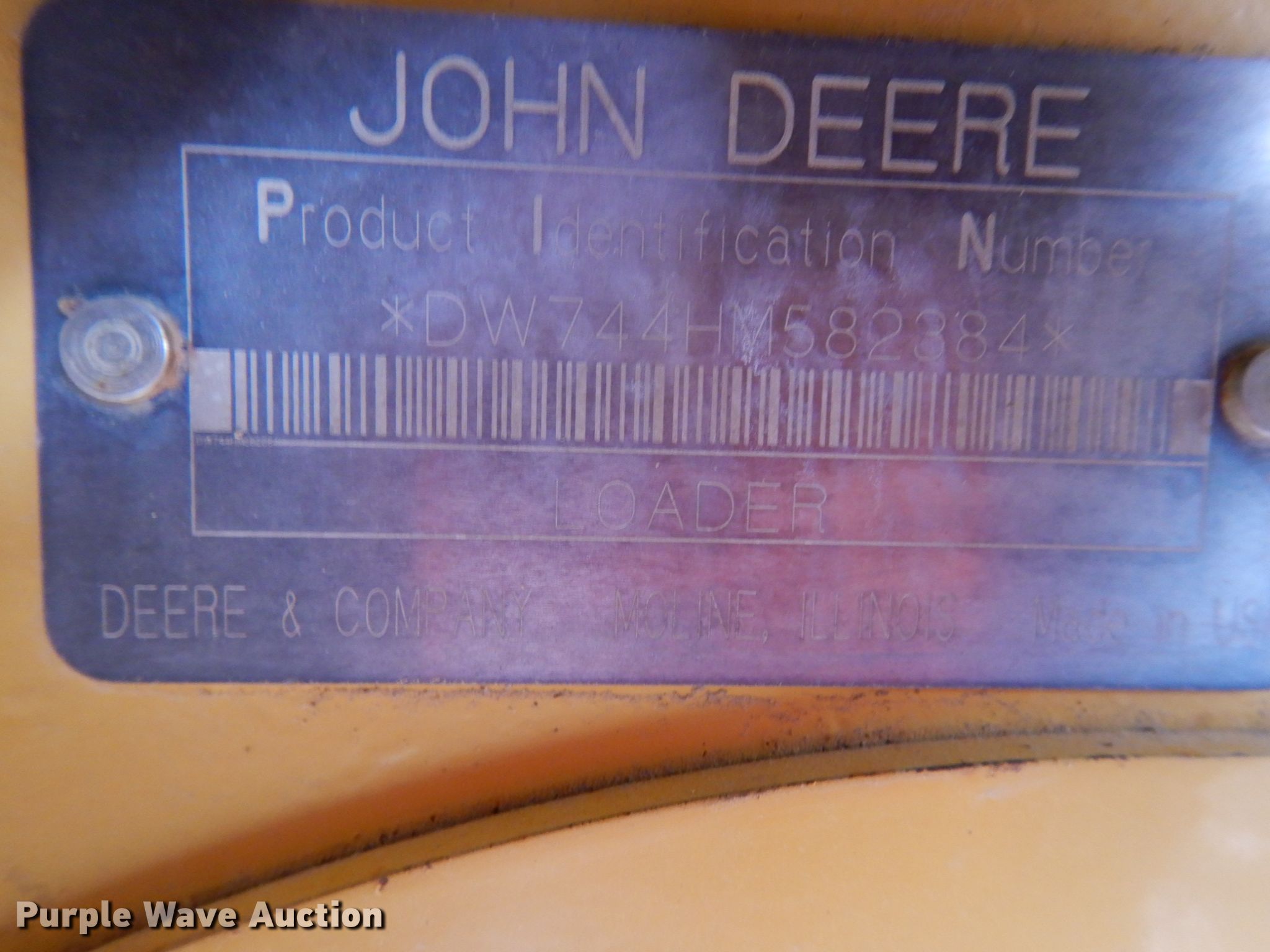 Purple Wave is selling a used Wheel Loader in Iowa. This item is a 2002 John Deere 744H wheel loader with the following: 8,565 hours on meter, Serial: DW744HM582384