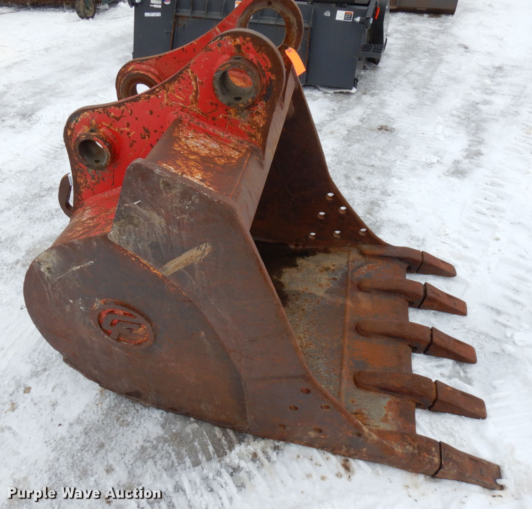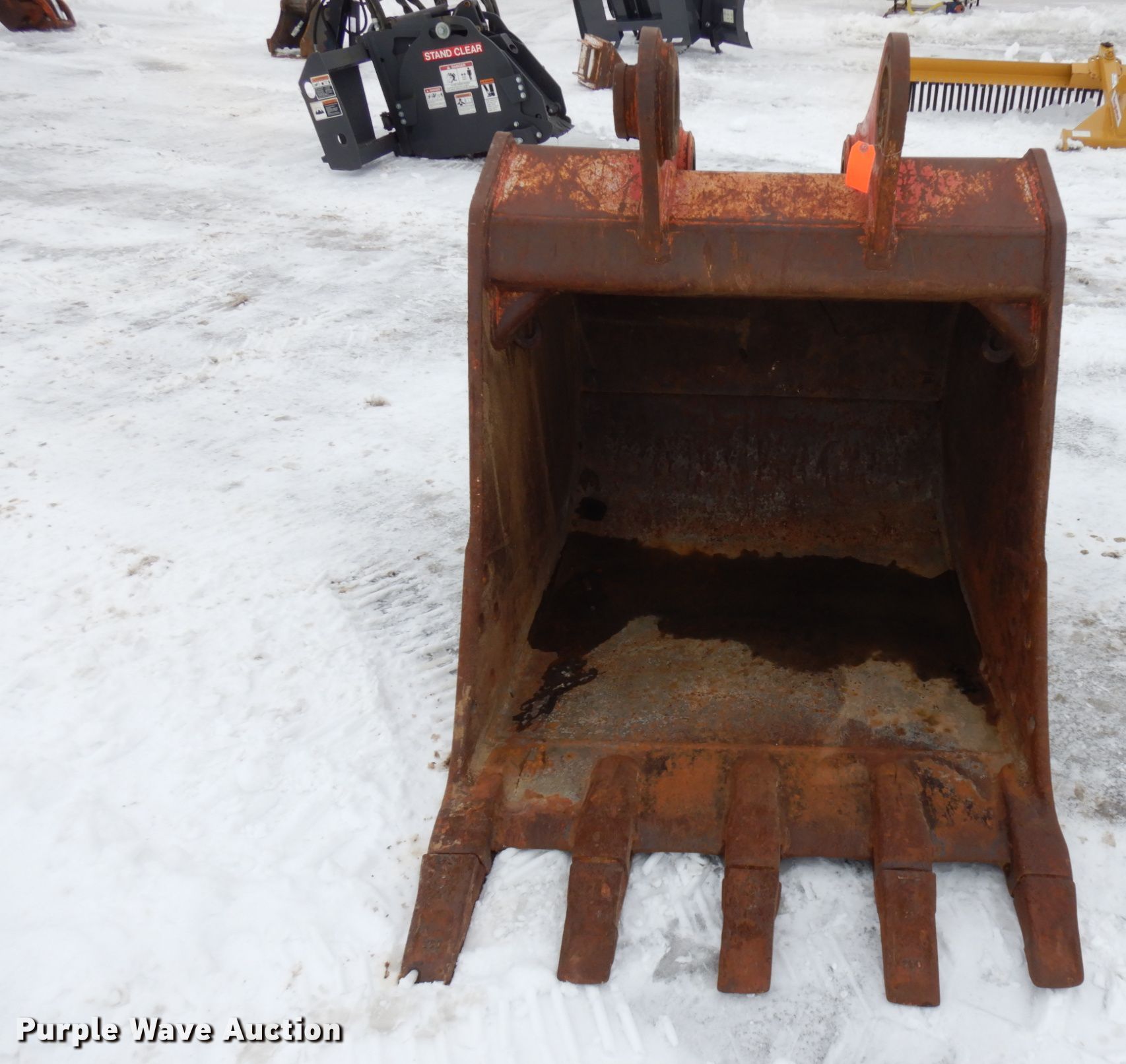 Purple Wave is selling a used Excavator Attach. in Iowa. This item is a 42"W bucket with the following: Weld-on cutting edge, Bolt-on teeth, Thumb