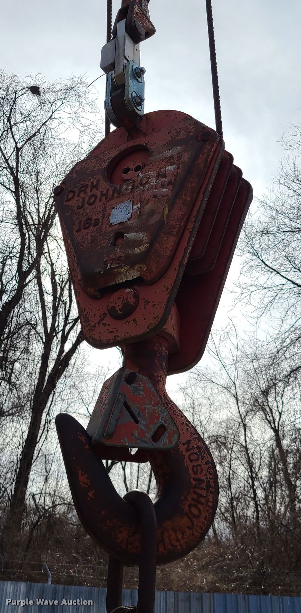 1991 Link Belt HSP-8050 crane. 8,797 hours on meter, Serial: 5311-297. Engine Cummins, Cylinders: 6, Fuel type: Diesel. Transmission Powershift, 6F-2R. Chassis Brakes: Air. Operators station Enclosed cab, Crane controls: Stick. Operational Boom Telescopic, Sections: 3, Maximum lift capacity: 100,000 lbs, Maximum lift height: 170', Jib: 25', Boom controls In-cab, Crane block. Tires Size: 26.5-25. Lawson Steel Erection Company - Open inspection Mar. 15. 1600 E Dora. Kansas City, MO 64106
