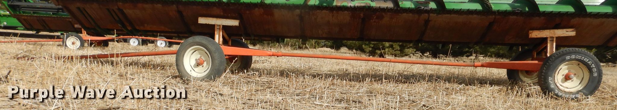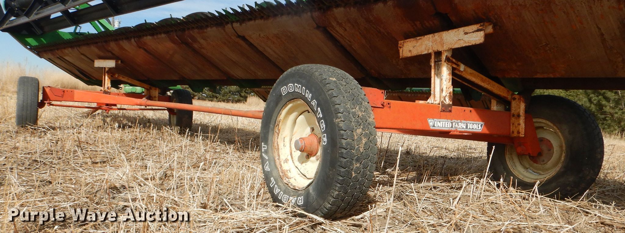 Purple Wave is selling a used Ag Equip. or Header Trailer in Kansas. This item is a United Farm Tools header trailer with the following: 31'L overall, 18'L x 82"W deck, Width adjust, Spread axle, Steel wheels, 215/70R15 tires