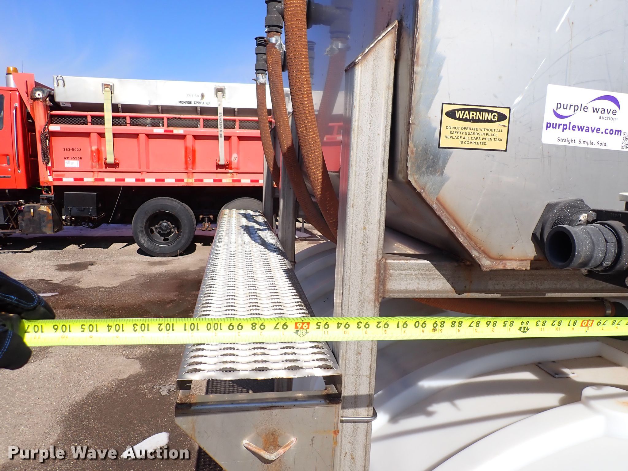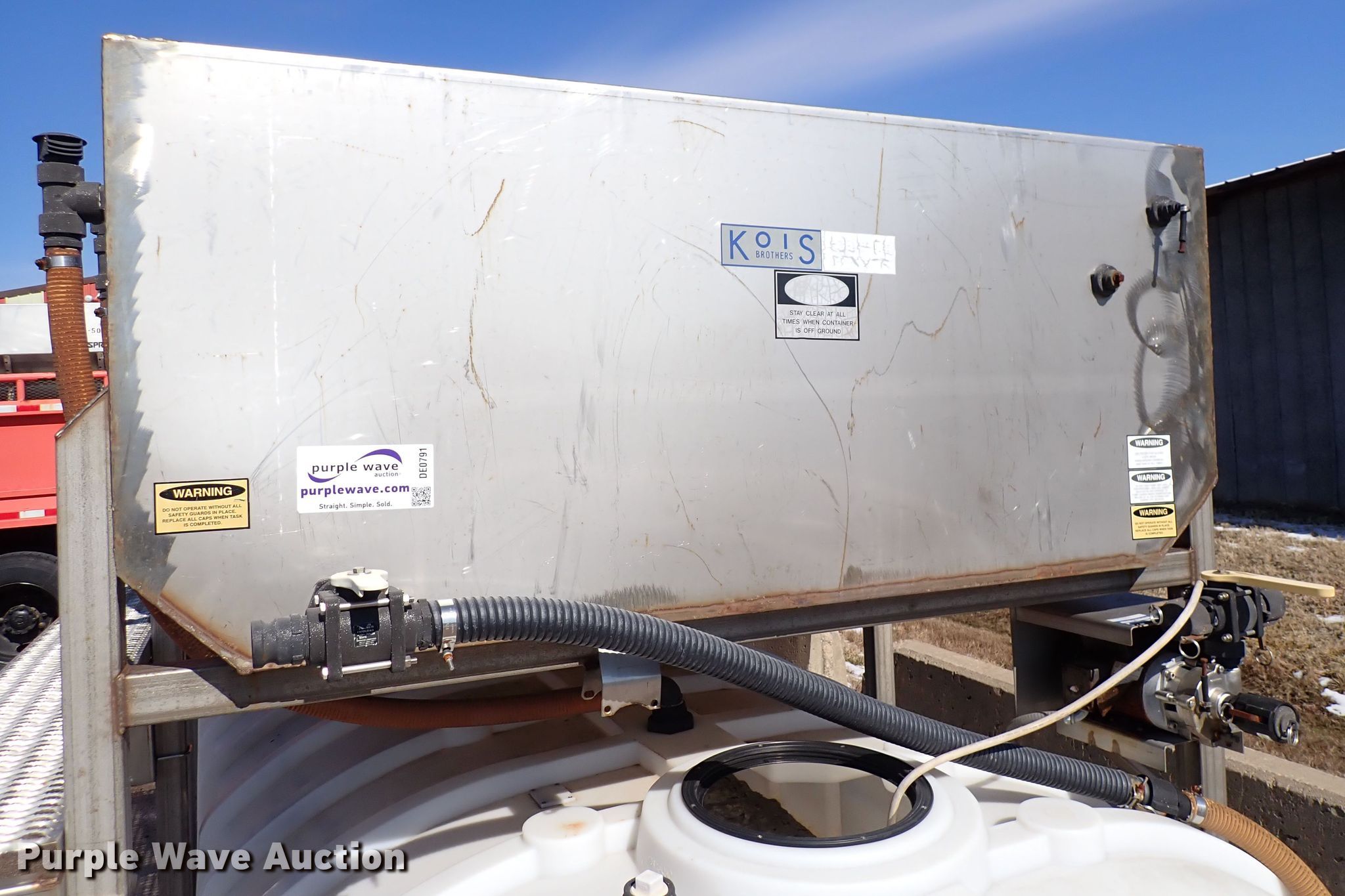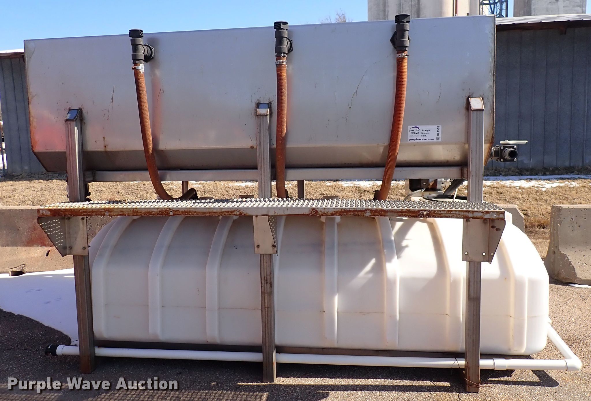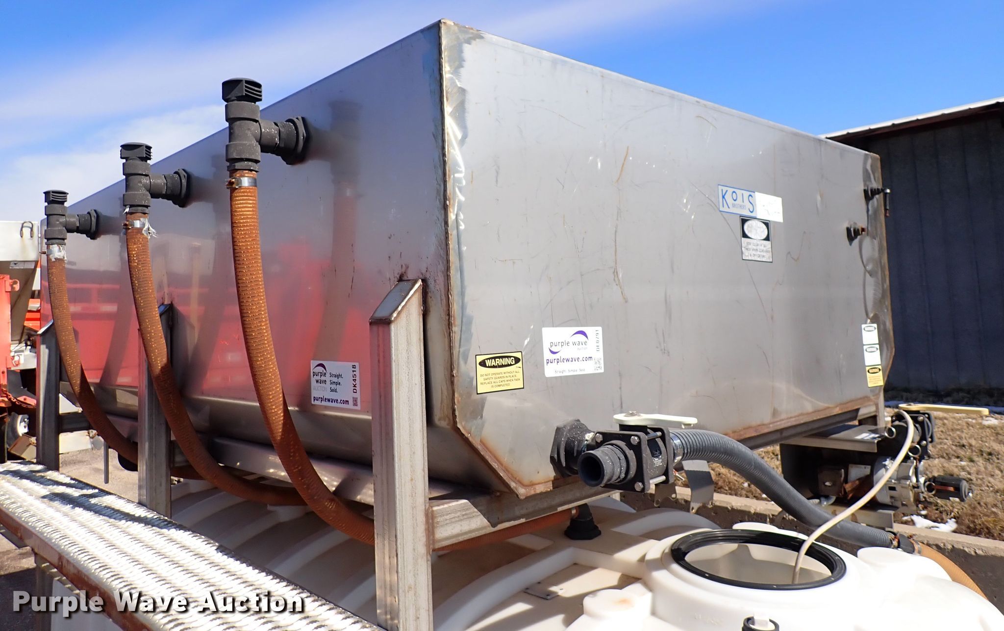 Purple Wave is selling a used Road Safety Equip. in Kansas. This item is a 2001 Sprayer Specialties Brinemaker 26 salt brine maker with the following: 10'L x 101"W, Stainless steel frame, KDOT ID 593-5011