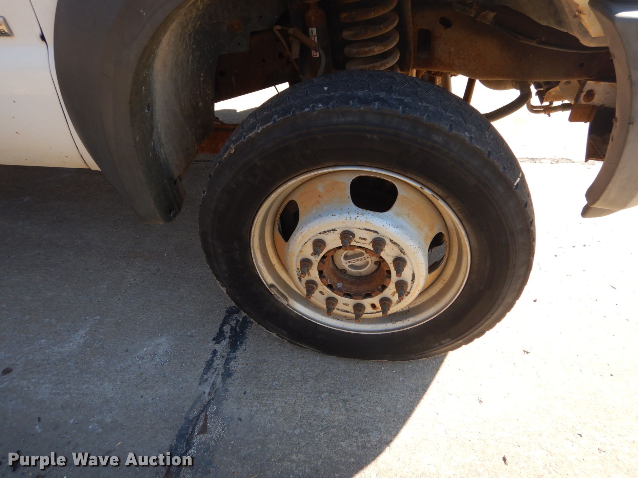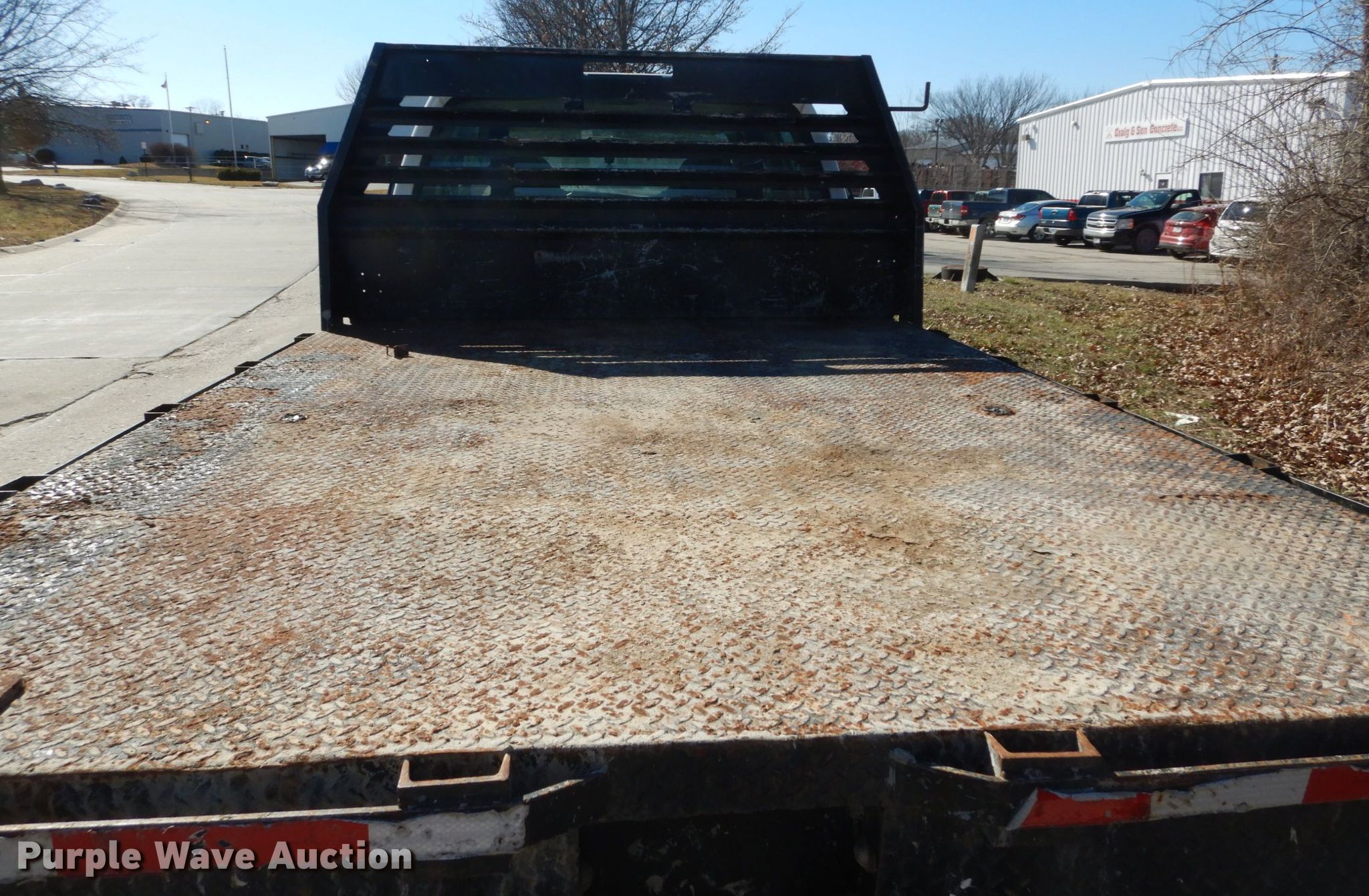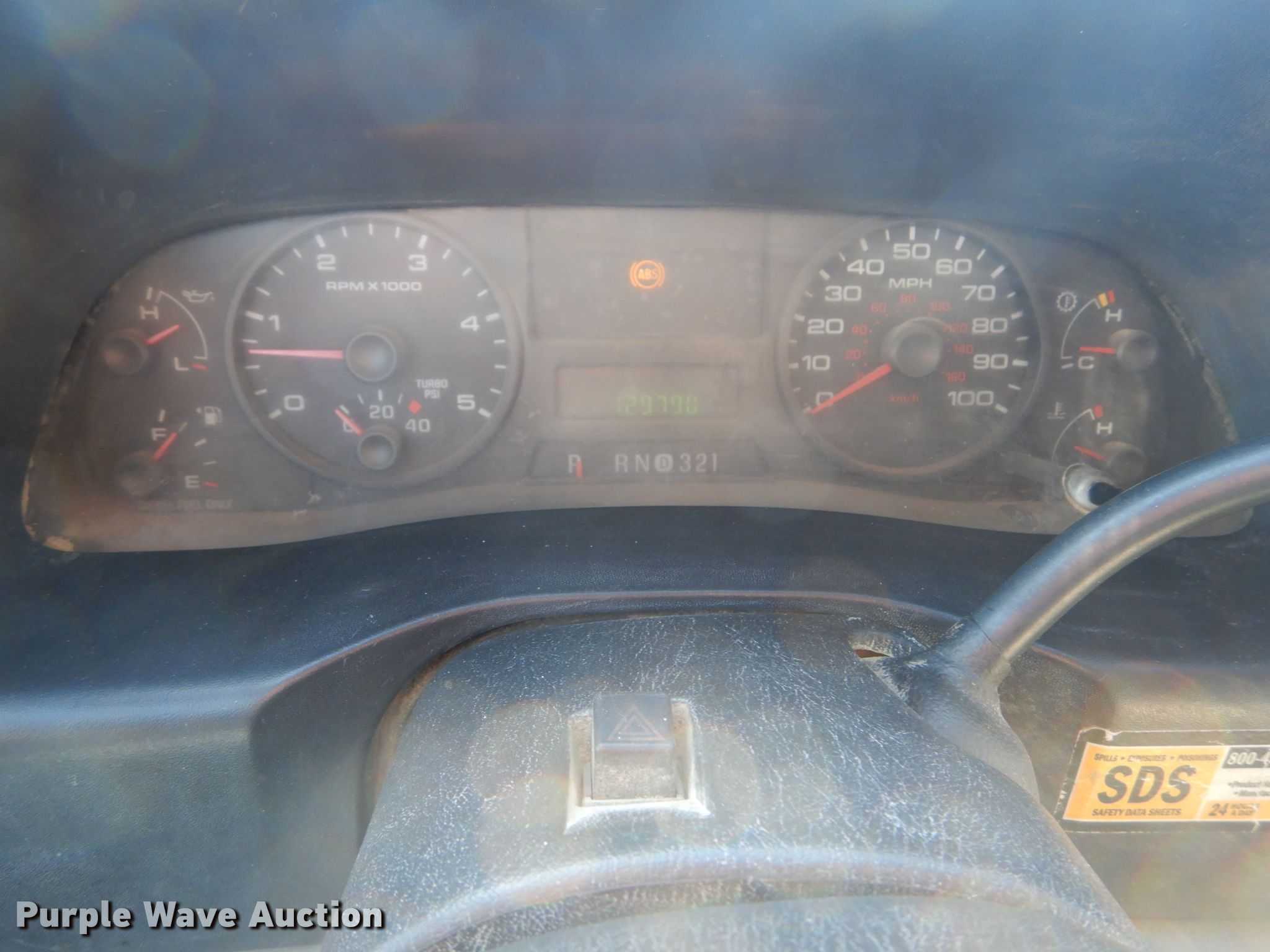 2005 Ford F550 Super Duty XL SuperCrew flatbed truck. 129,790 miles on odometer. Engine Displacement: 6.0L V8 OHV 32V, Cylinders: 8, Fuel type: Diesel. Transmission Automatic. Chassis Four wheel drive. Interior AC, Heat. Operational Flatbed Reading DKD10-DW, Length: 10', Width: 92". Tires Size: 225/70R19.5. Notes Dash warning indicator: ABS, Windshield chipped or cracked. Missouri title. 1FDAW57P45EC21173. Craig and Son Concrete. 105 N Central Dr. O'Fallon, MO 63366