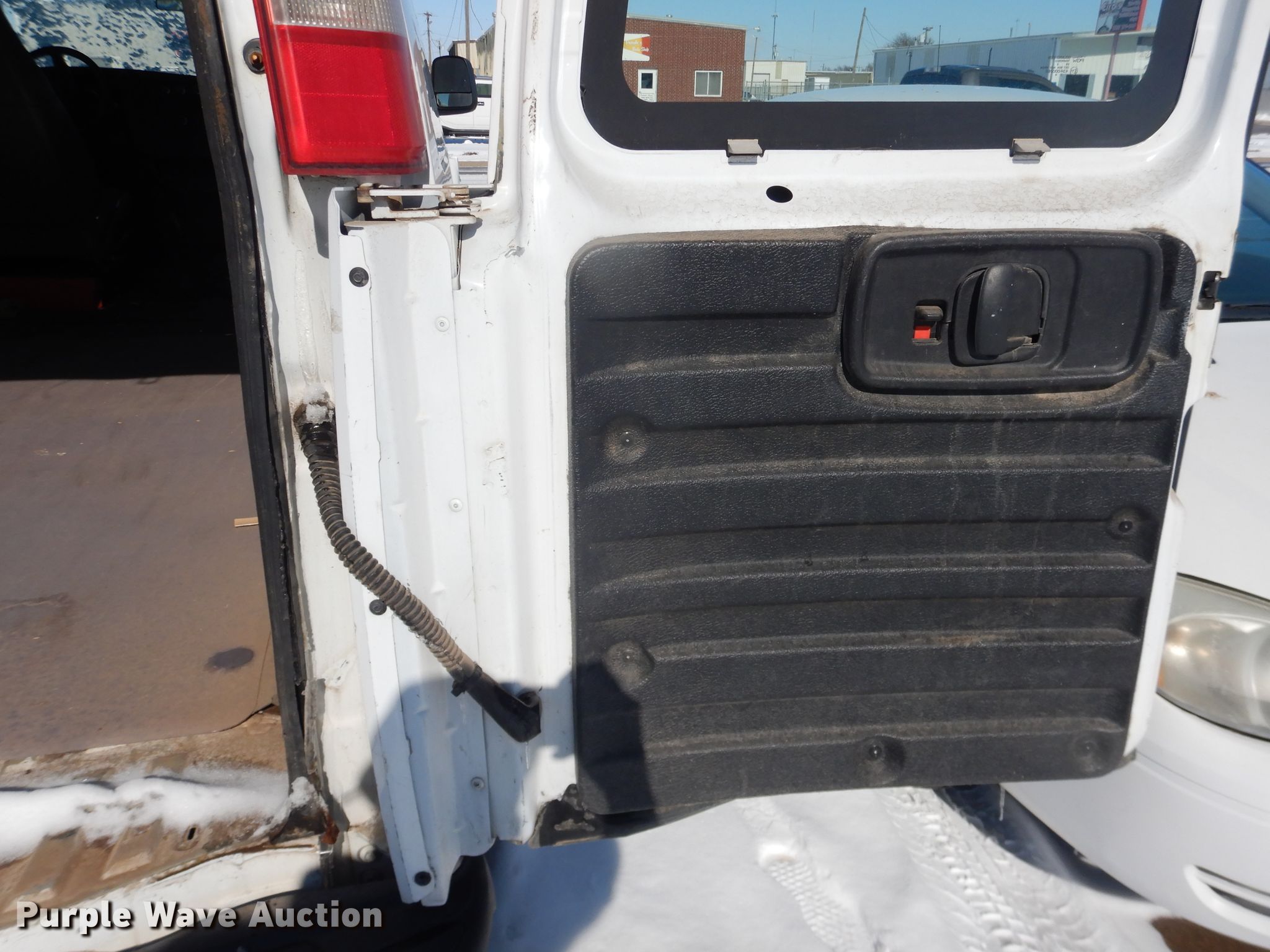 2009 Chevrolet Express 1500 van. 200,952 miles on odometer. Engine Displacement: 4.3L V6 OHV 12V, Cylinders: 6, Fuel type: Gas. Transmission Automatic. Interior AC, Heat. Tires Size: 245/70R17. Notes Wiring issue in steering column, Non-operational unit. Kansas title. 1GCFG15X291115904. Office Solutions, Inc. 1008 W Mary St. Garden City, KS 67846
