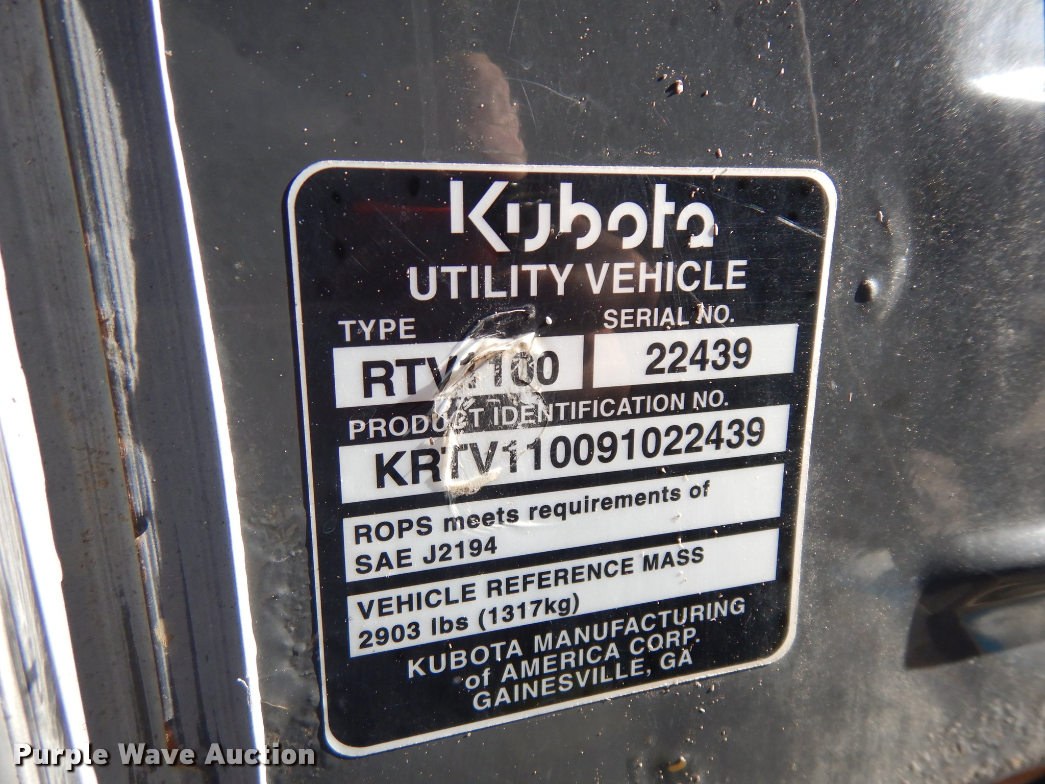 Purple Wave is selling a used Utility Vehicle in Indiana. This item is a Kubota RTV 1100 utility vehicle with the following: Engine hours: 994, Serial: 22439