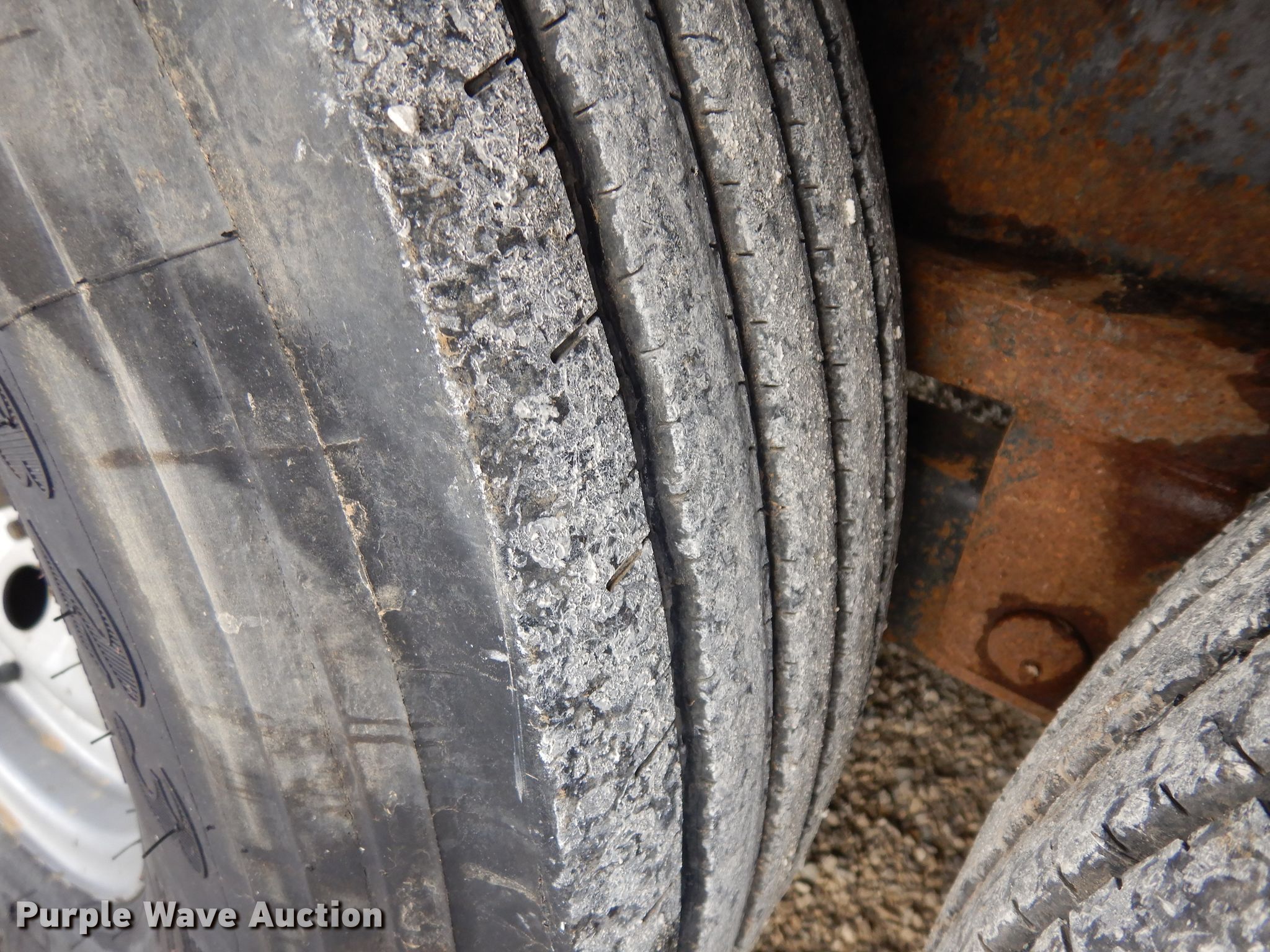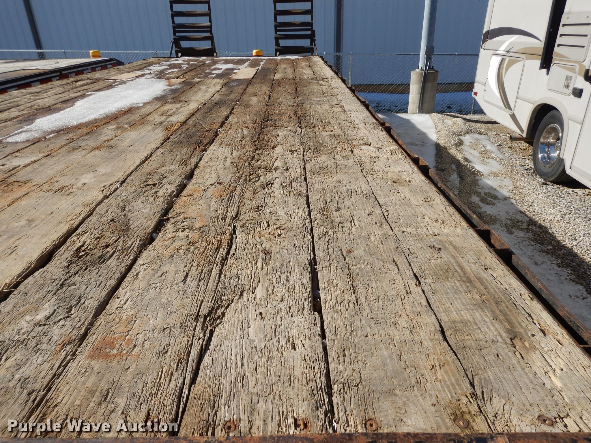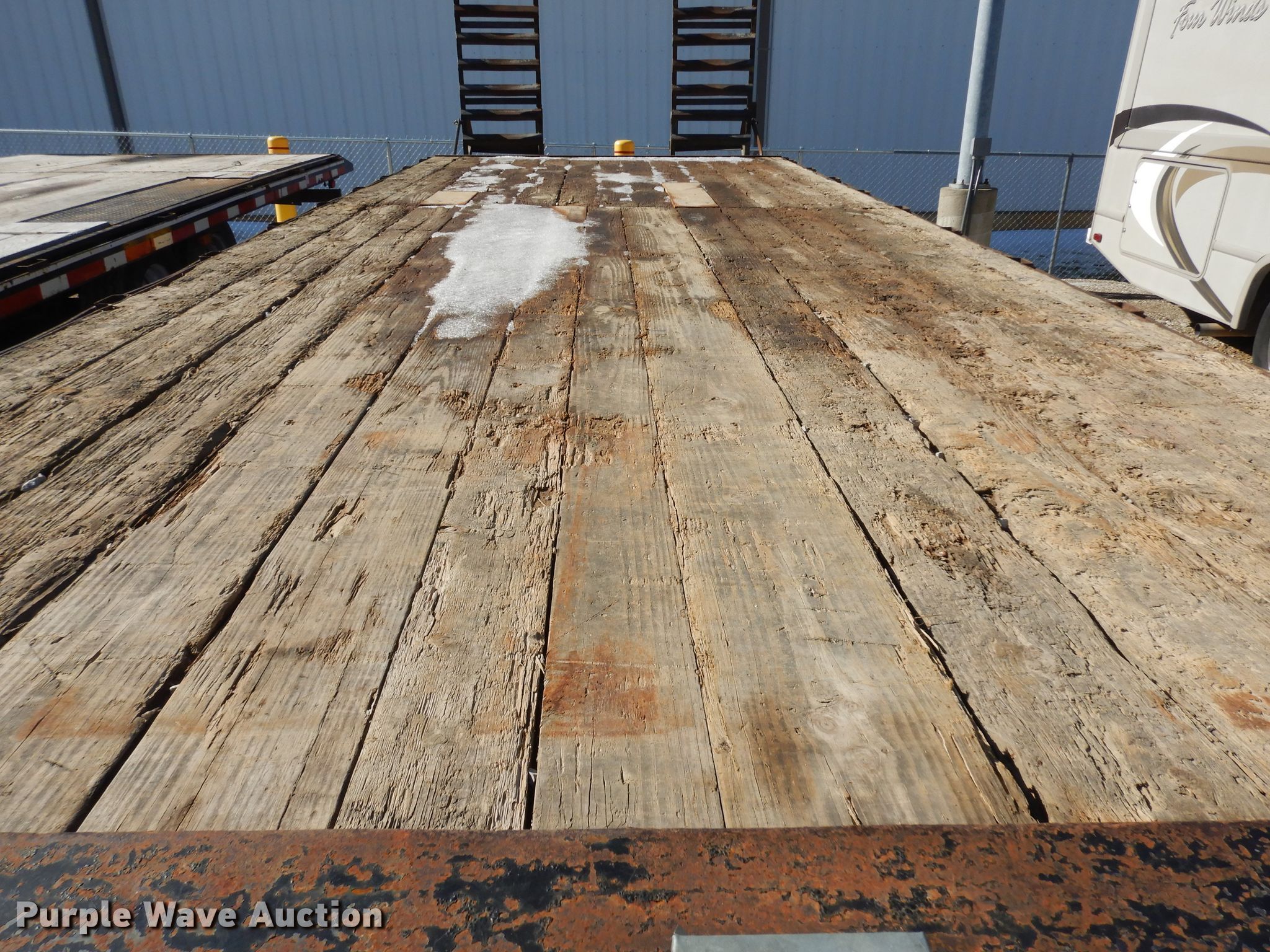 Purple Wave is selling a used Equip. Trailer in Indiana. This item is a 2013 Kaufman equipment trailer with the following: 30'L x 100"W overall, 21'L x 100"W x 33"H wood deck, 5'L ramps, Single leg landing gear, Tandem axle, Air suspension, Electric brakes, 2 5/16" ball hitch, Steel wheels, 235/85R16 tires, 14,000 lbs GVWR