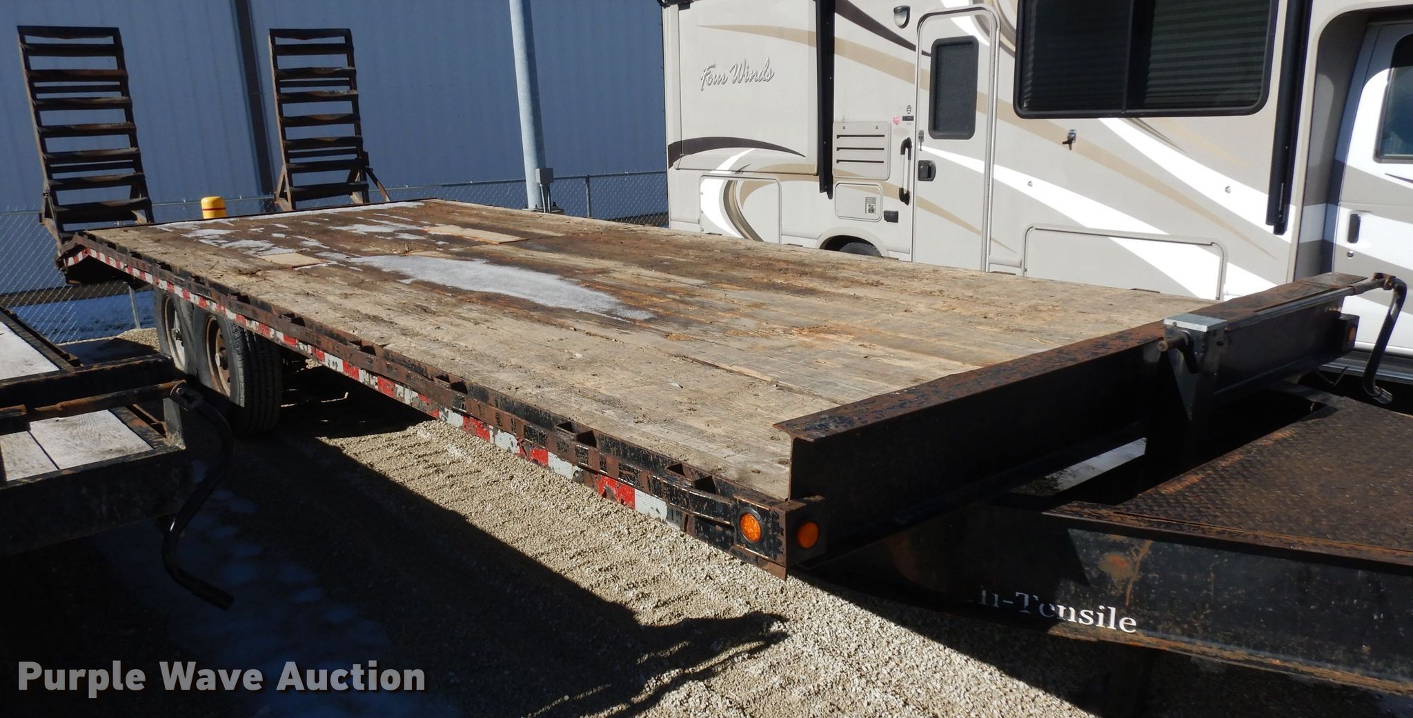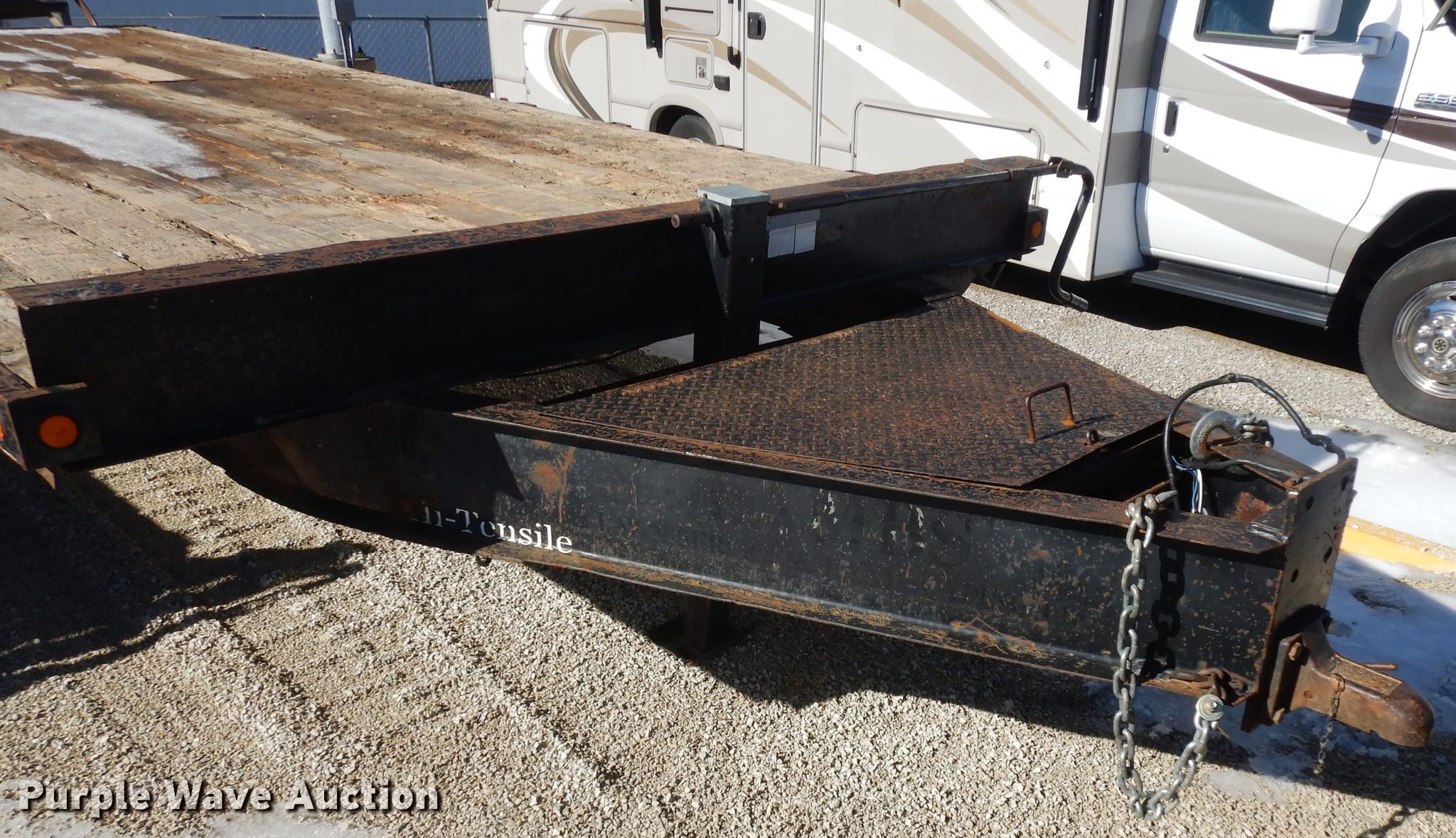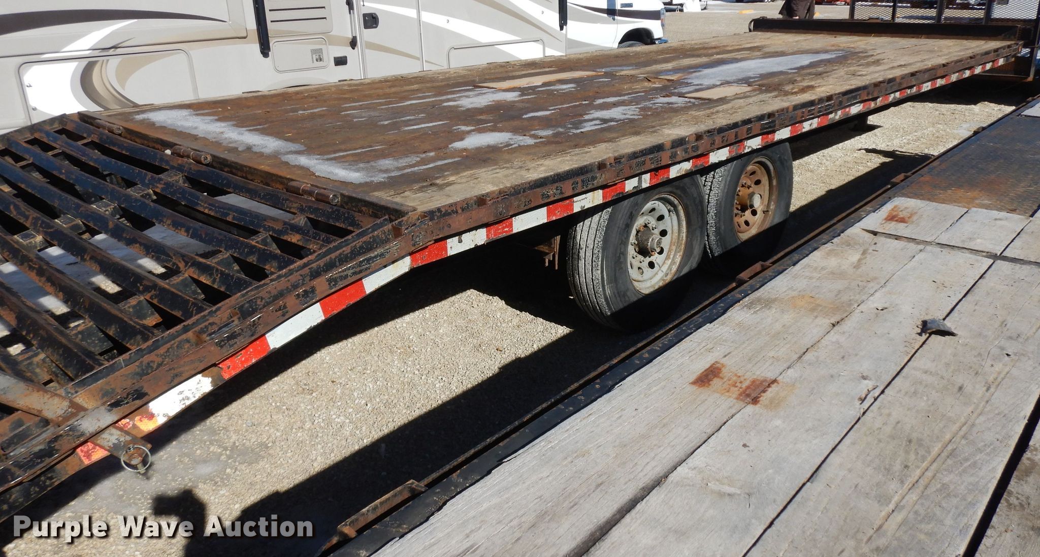 Purple Wave is selling a used Equip. Trailer in Indiana. This item is a 2013 Kaufman equipment trailer with the following: 30'L x 100"W overall, 21'L x 100"W x 33"H wood deck, 5'L ramps, Single leg landing gear, Tandem axle, Air suspension, Electric brakes, 2 5/16" ball hitch, Steel wheels, 235/85R16 tires, 14,000 lbs GVWR