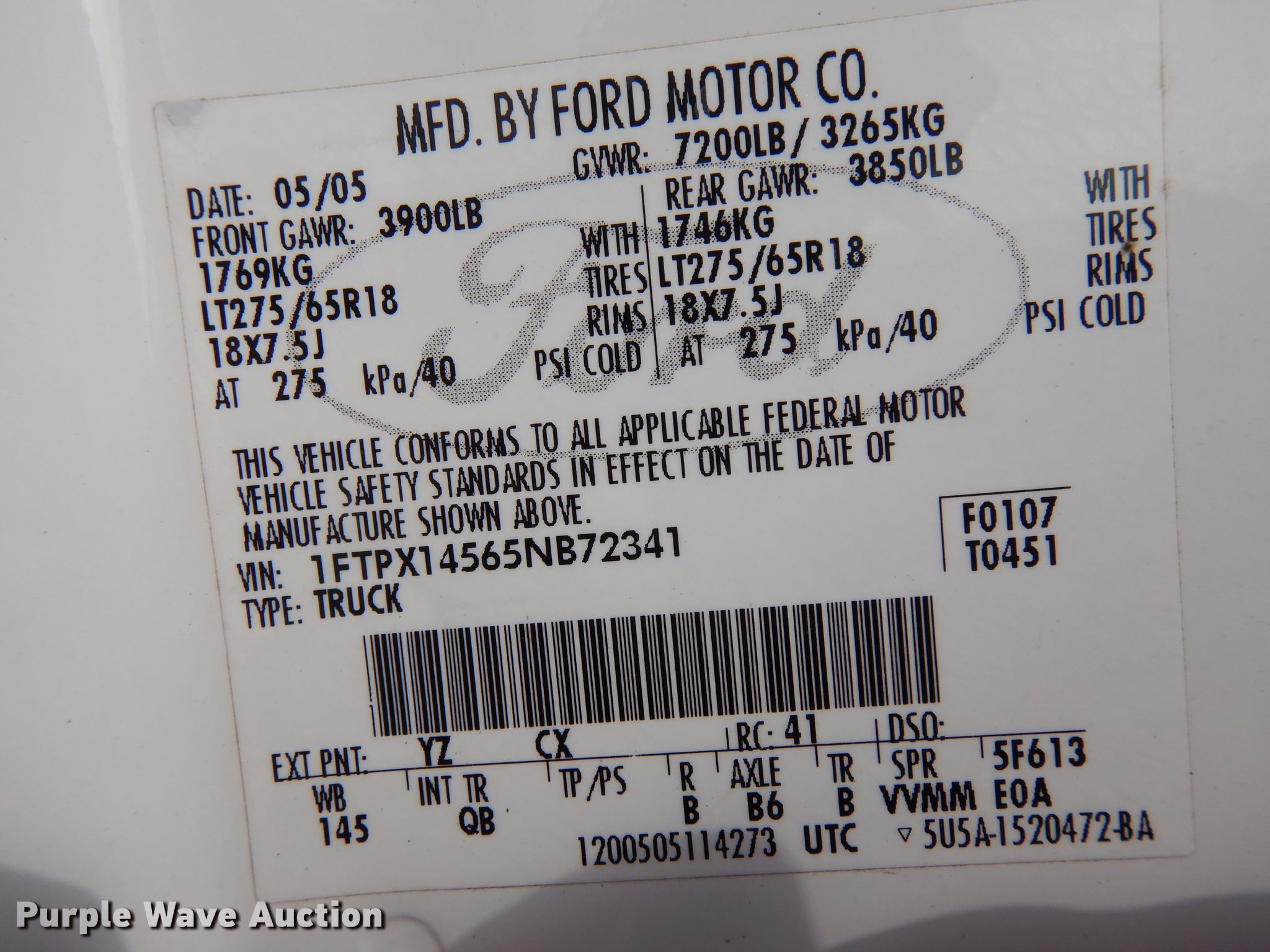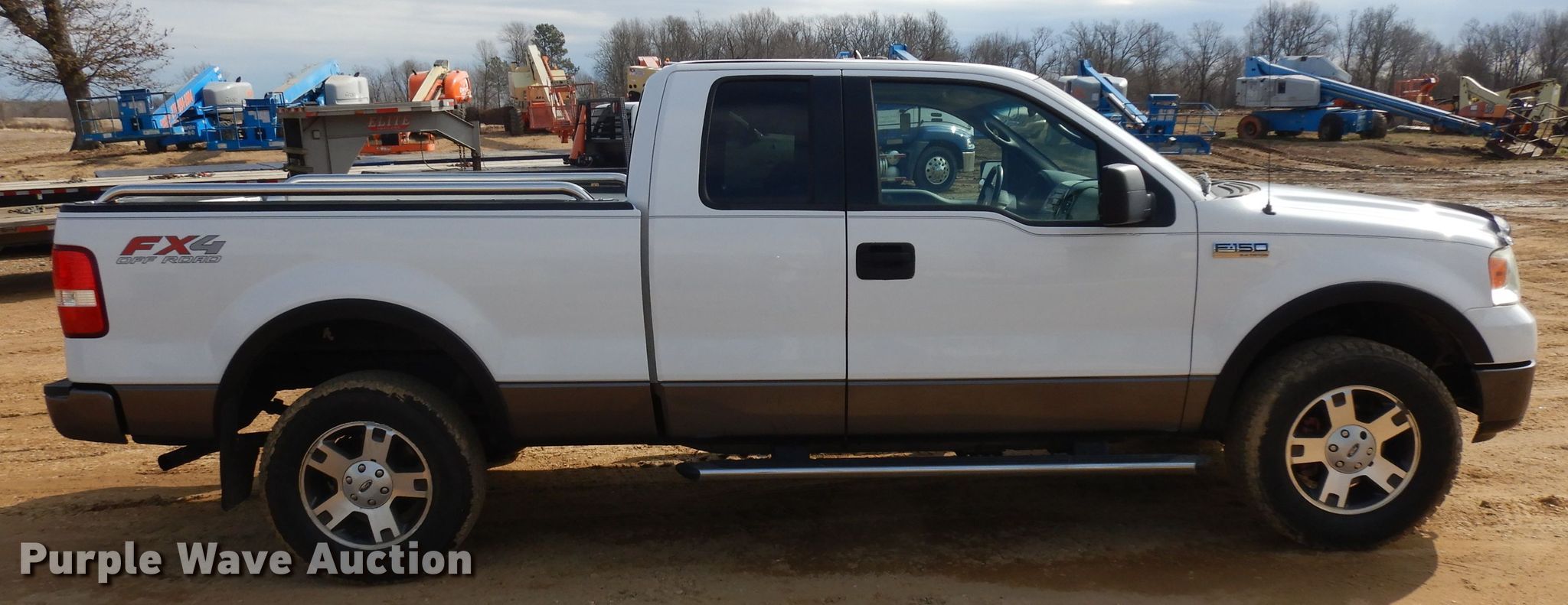 2005 Ford F150 SuperCab pickup truck. 174,522 miles on odometer. Engine Displacement: 5.4L V8 SOHC 16V, Cylinders: 8, Fuel type: Gas. Transmission Automatic, Four wheel drive. Interior AC, Heat, Seat: Power driver, Heated mirrors, Power windows, Power locks, Cruise control, Powered sunroof. Tires Size: 275/65R18. Notes Dash warning indicator: Check engine, Air bag. Kentucky title. 1FTPX14565NB72341. Crawford Equipment, Inc... Mayfield, KY 42066