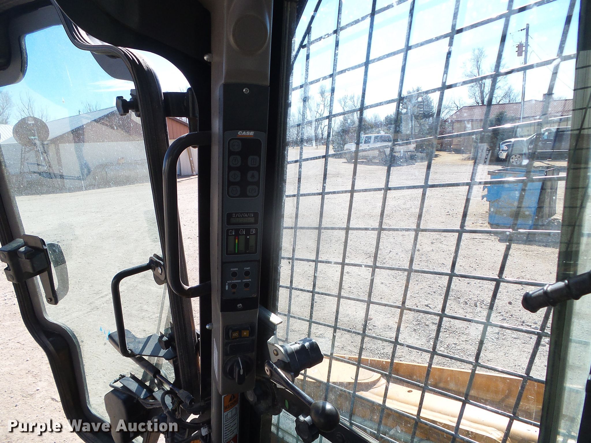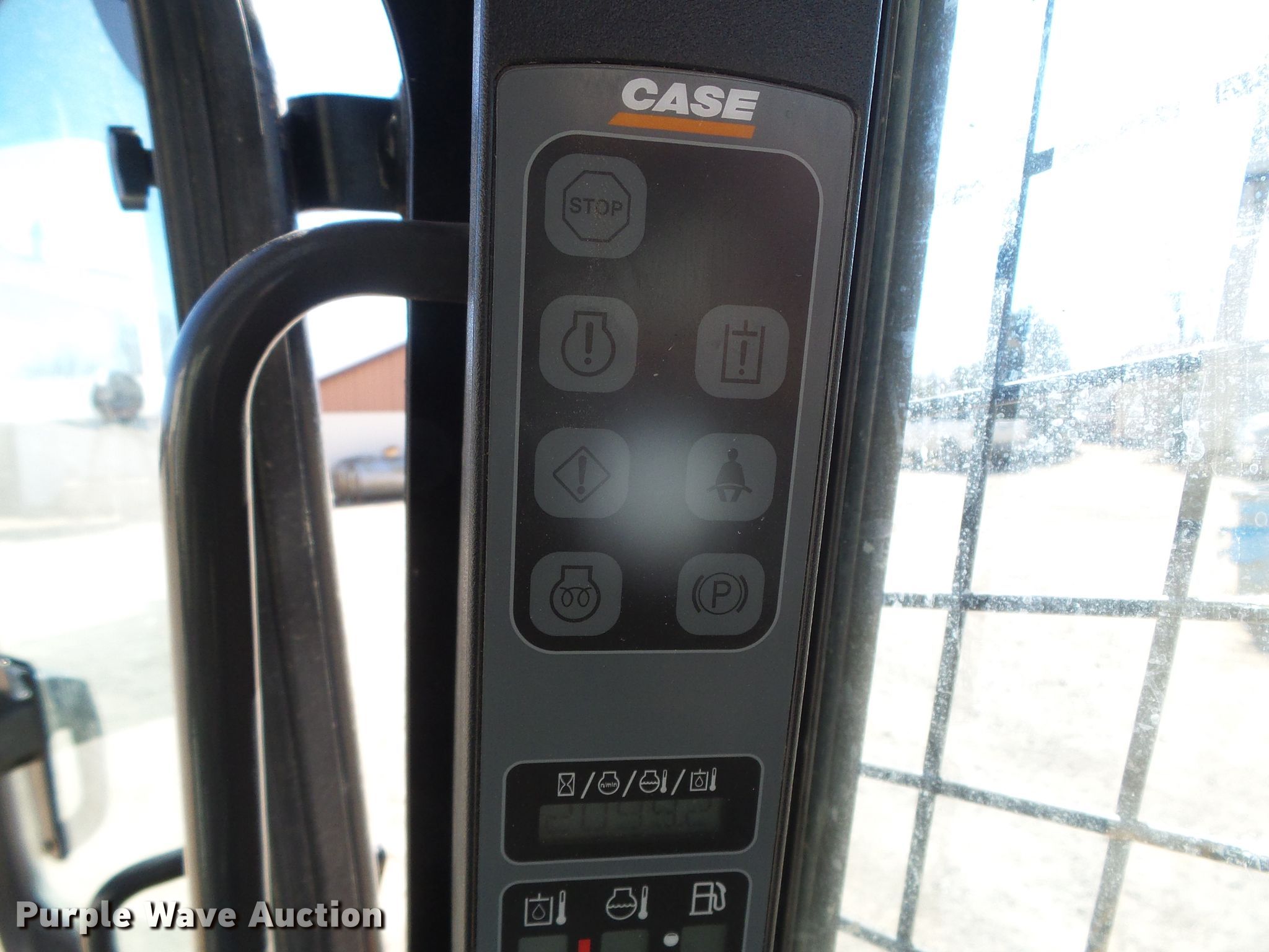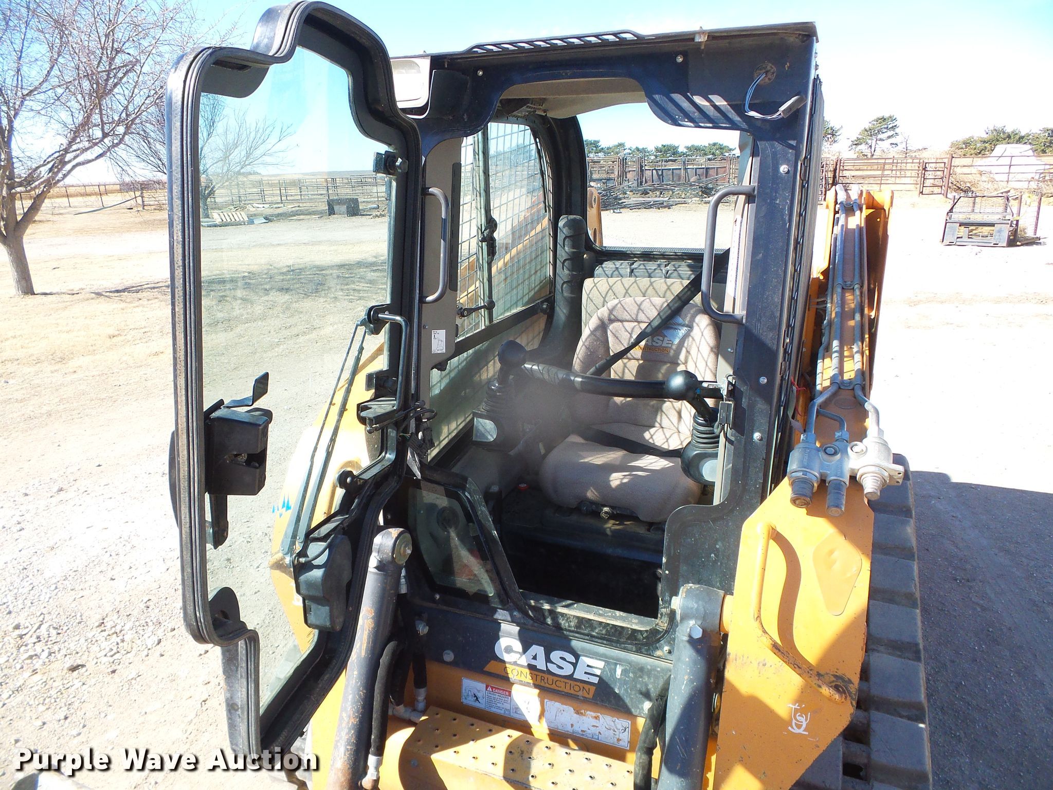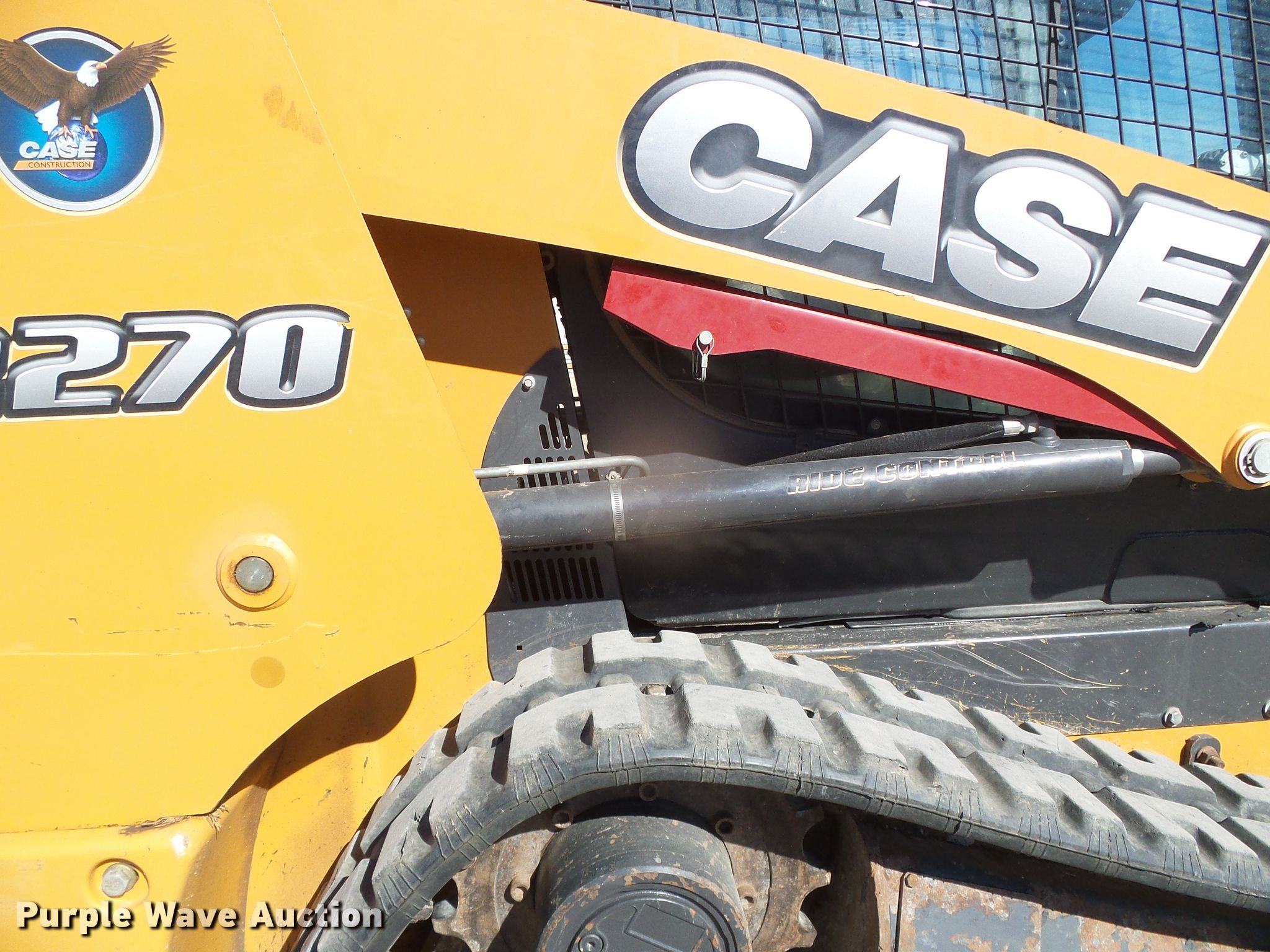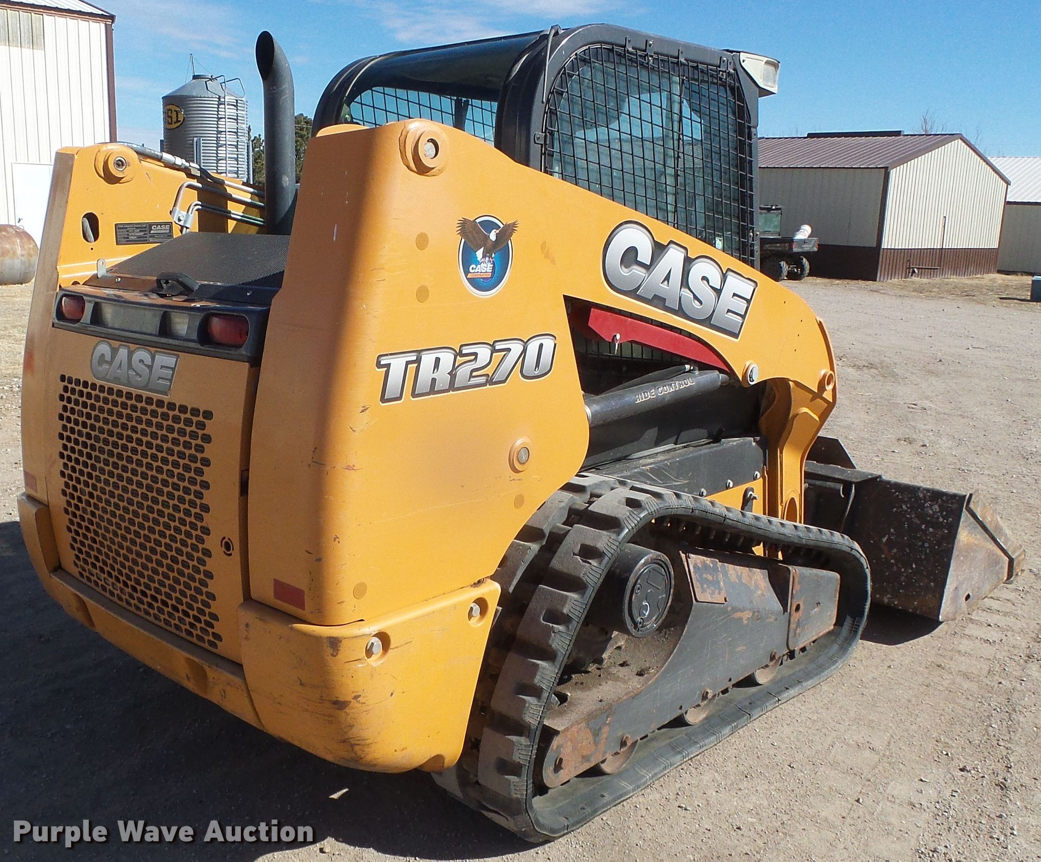 2014 Case TR270 tracked skid steer loader. 2,099 hours on meter, Serial: NEM462491. Engine Serial: 170523, Displacement: 3.4L, Cylinders: 4, Fuel type: Diesel. Transmission Hydrostatic. Operators station Enclosed cab, AC, Heat, Bucket control: Hand, Electronic Monitoring System panel. Operational Auxiliary hydraulics, Quick coupler: Hydraulic, Bucket Width: 78", Cutting edge: Bolt-on. Tracks Width: 12". Dodge City, KS 67801