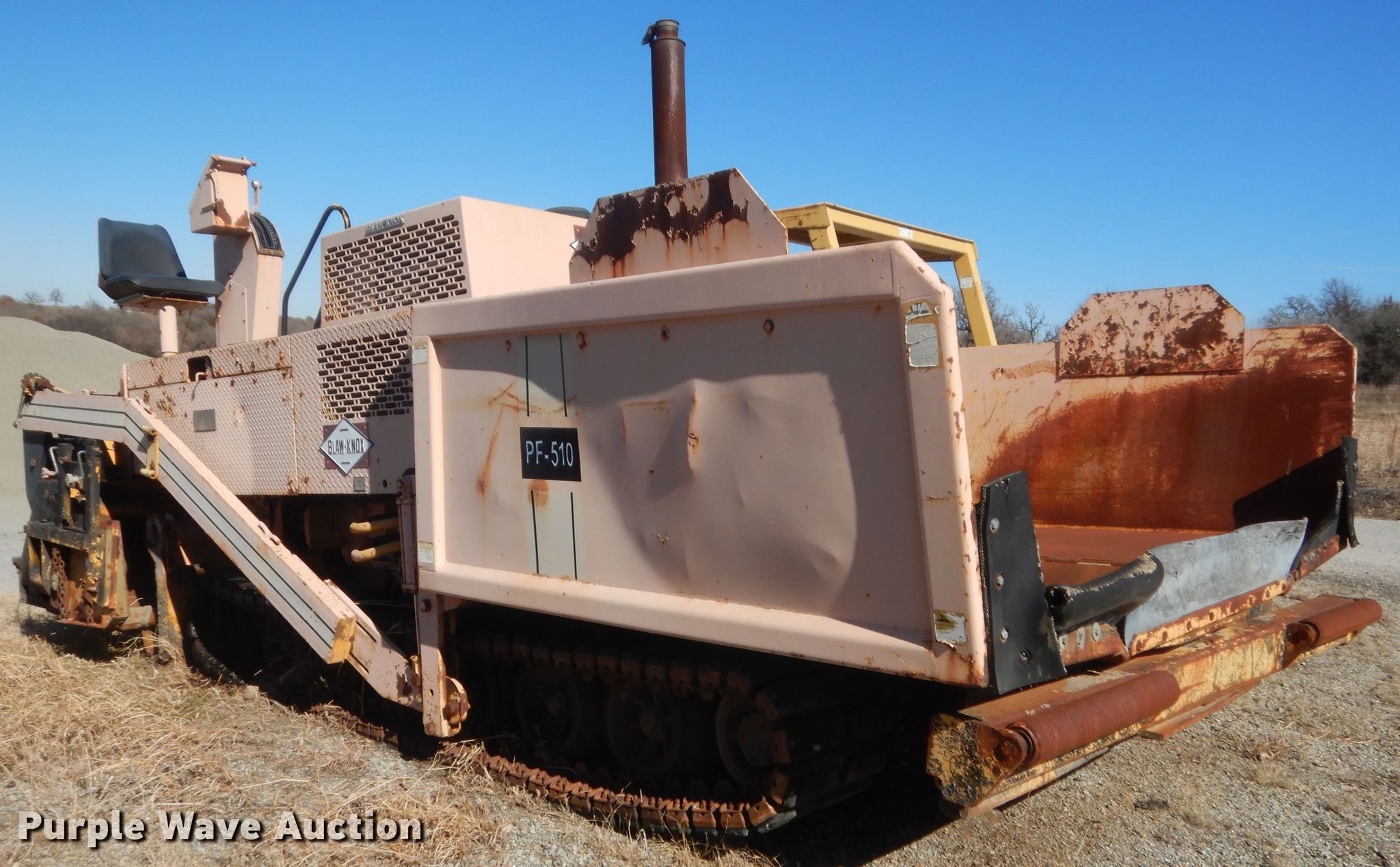 Purple Wave is selling a used Paver or Screed in Oklahoma. This item is a Blaw Knox PF510 paver with the following: 4,098 hours on meter, Serial: 51004-20
