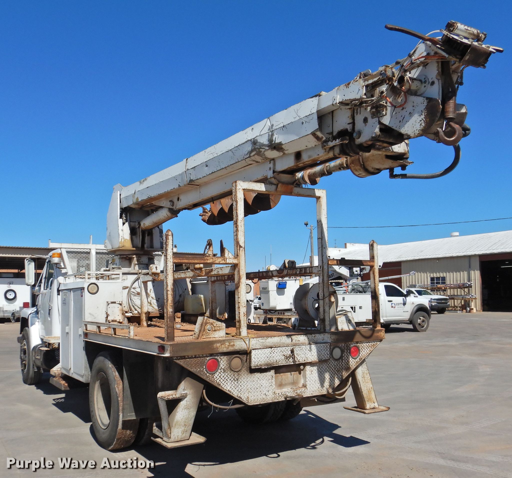 Purple Wave is selling a used Digger Derrick Truck in Oklahoma. This item is a 1985 International 1954 pressure digger derrick truck with the following: 103,921 miles on odometer, Engine hours: 928