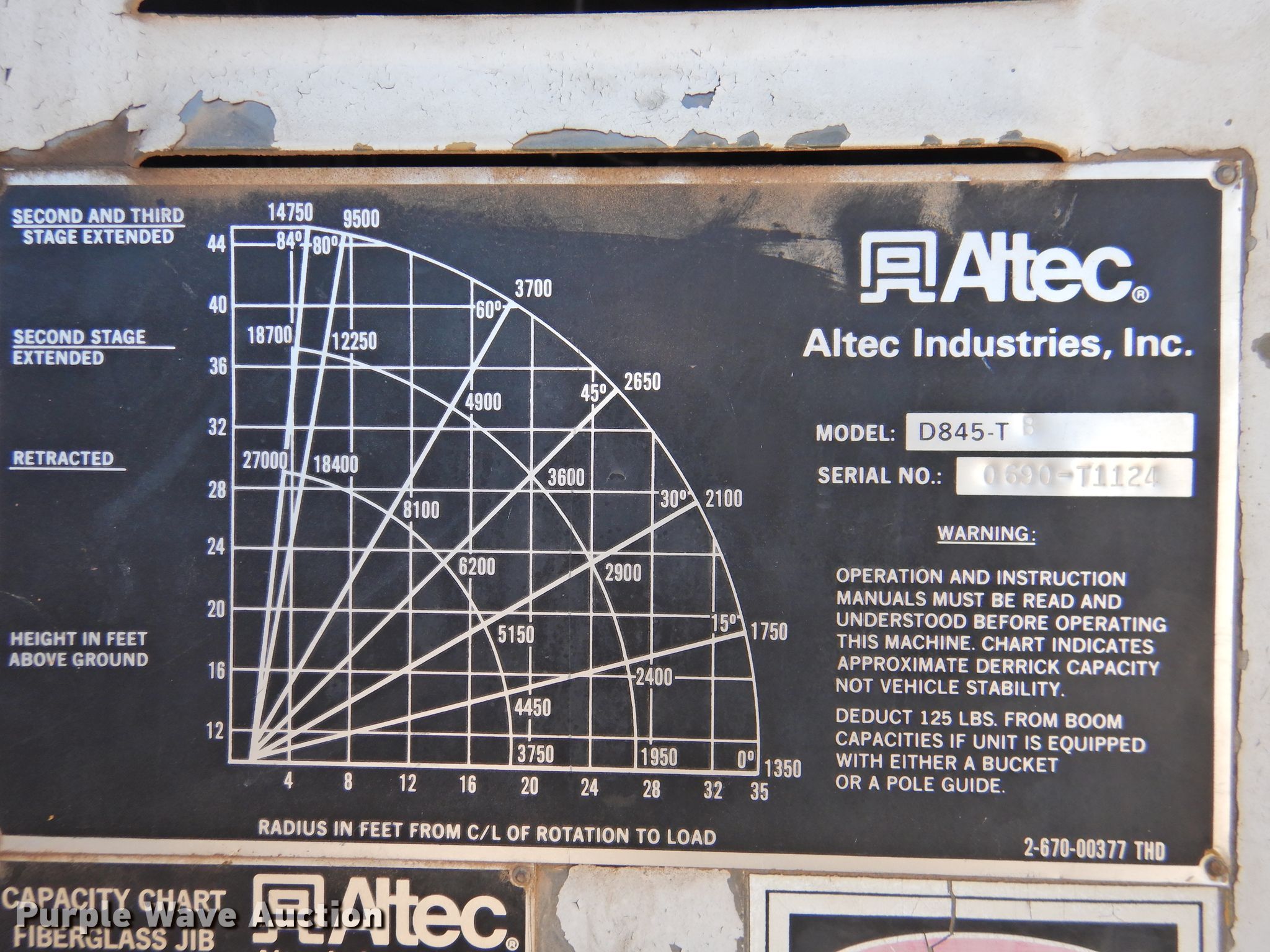 1985 International 1954 digger derrick truck. 103,921 miles on odometer, Engine hours: 928. Engine Displacement: 7.6L, Cylinders: 6, Fuel type: Diesel. Transmission Manual, Speed: 10. Chassis Axles: Single, Differential lock: Inter-axle, Suspension: Spring, Brakes: Air, PTO. Interior Heat. Operational Bed Length: 15' 7", Boom Altec D845-TB, Serial: 0690-T1124, Boom length: 45', Boom controls Ground, Material handler, Pole guide, Auger Diameter: 18".. Tires Front: 11R22.5, Rear: 10.00R20. Notes Oil leak, AC compressor disconnected. Oklahoma title. 1HTLDUXL9FHA57175. Cotton Electric COOP. 226 N Broadway St. Walters, OK 73572