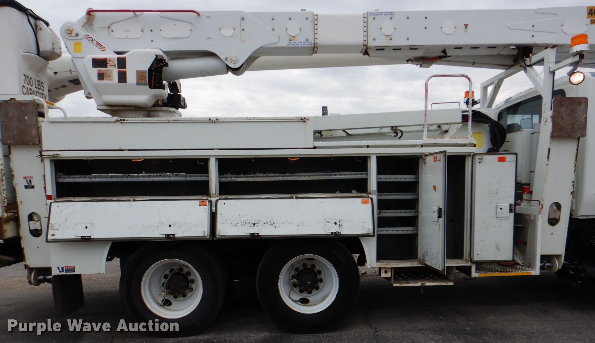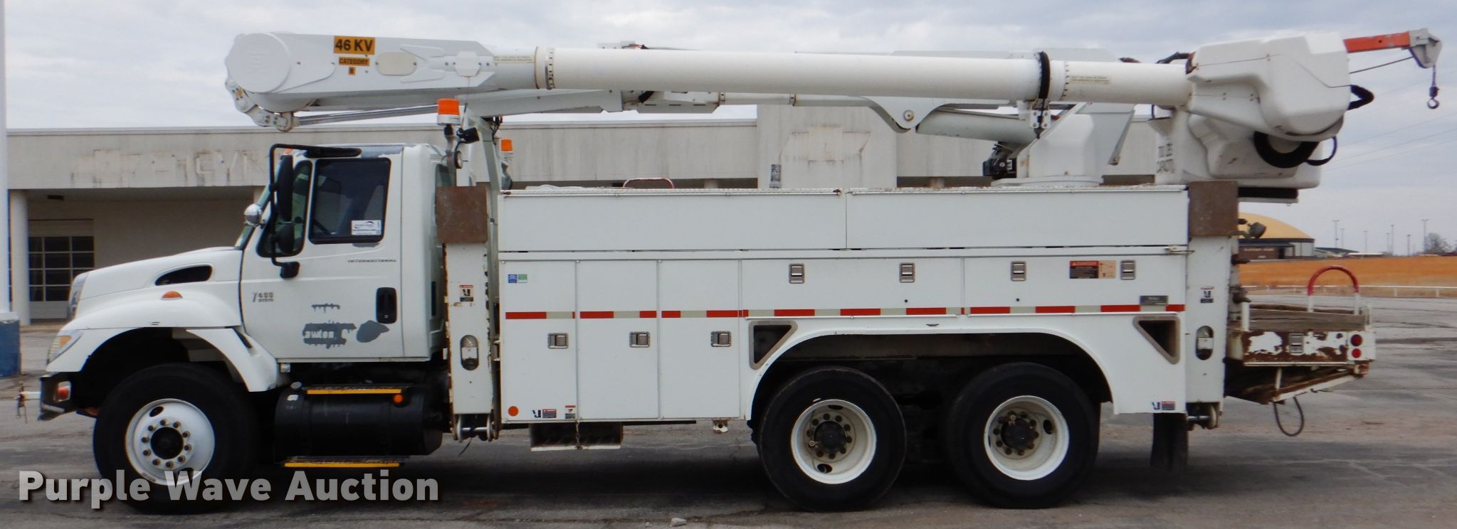 Purple Wave is selling a used Bucket Truck in Oklahoma. This item is a 2006 International 7400 bucket truck with the following: 106,884 miles on odometer, Engine hours: 16,188