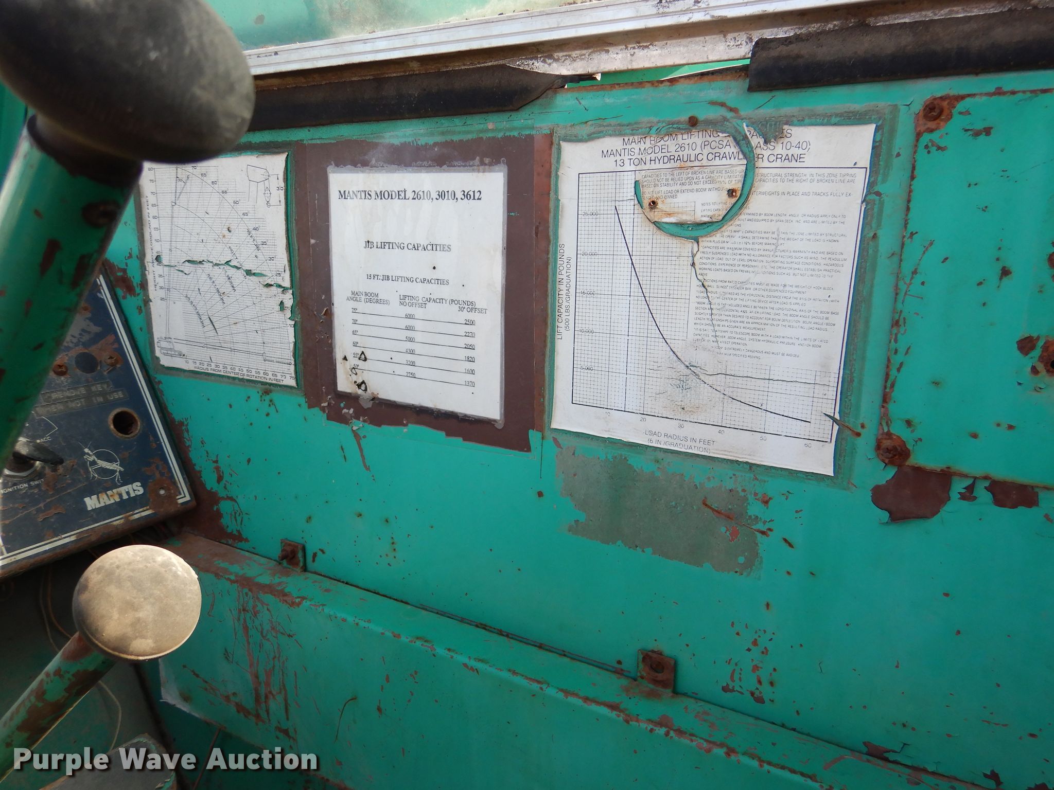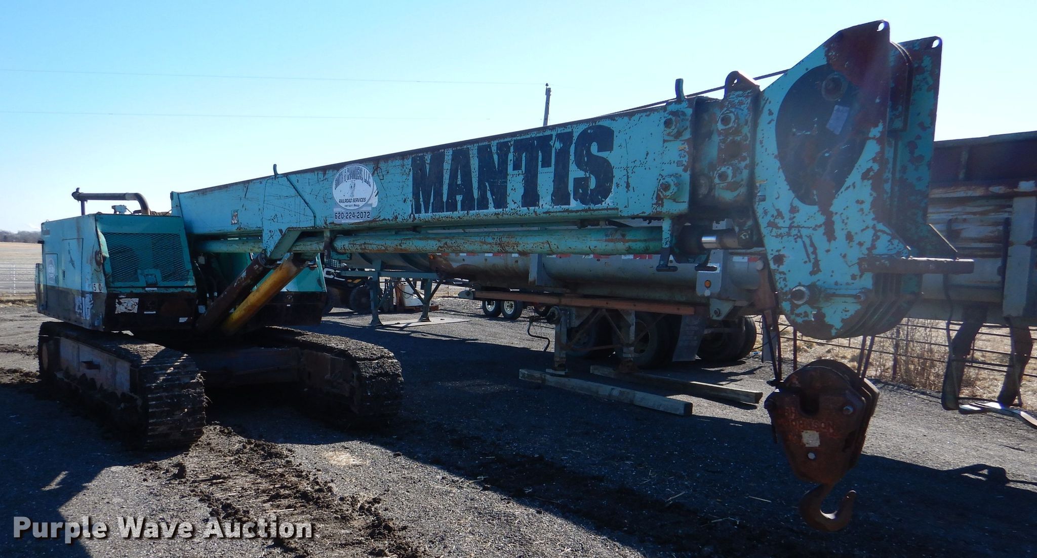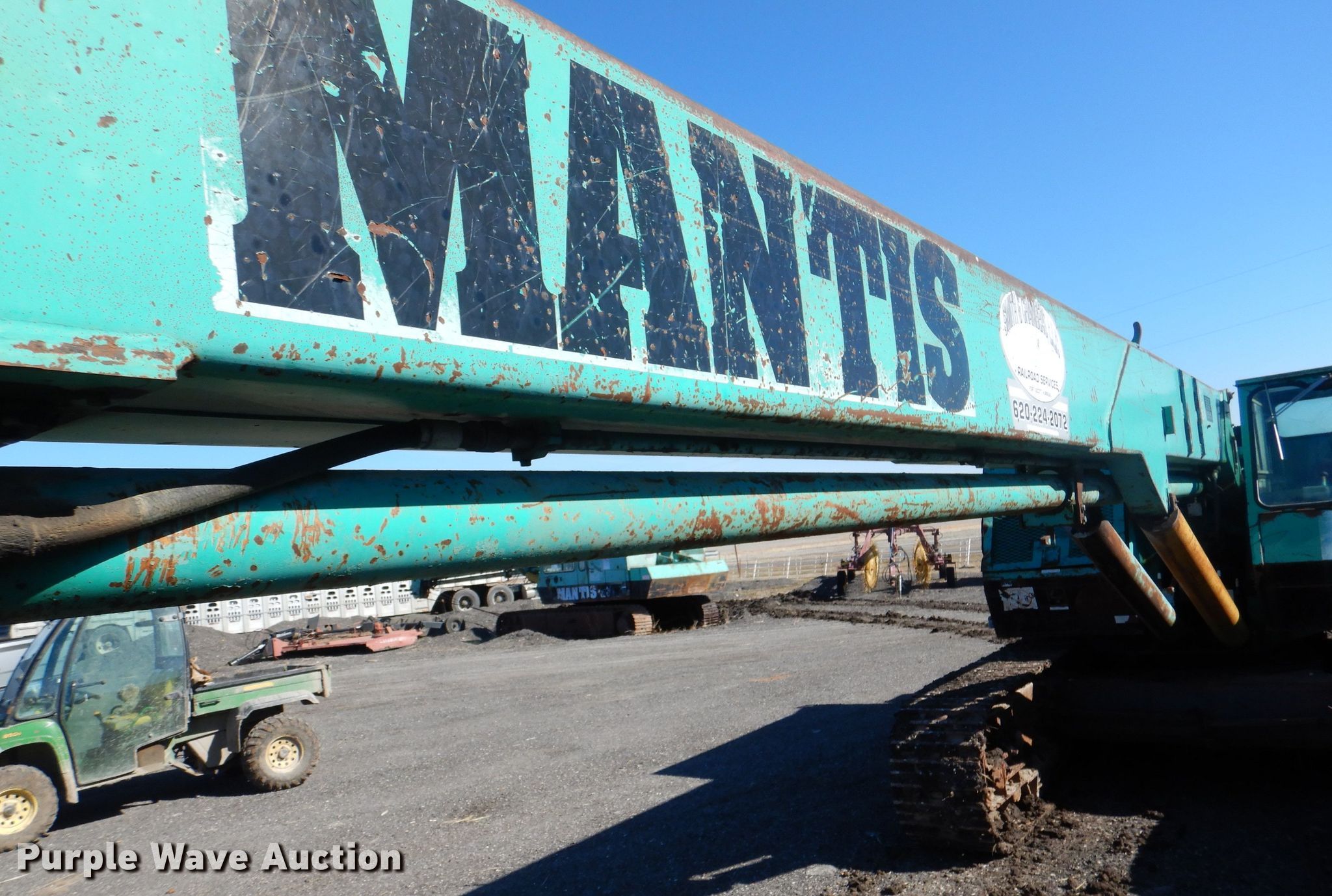 (2) cranes. 1989 Mantis 2610 crane. Engine hours: 916, Serial: 26-242. Engine Deutz, Cylinders: 6, Fuel type: Diesel. Chassis Crawler Hydraulic/ hydrostatic, Hydraulic actuated. Operators station Enclosed cab, Heat, Crane controls: Stick. Operational Boom Telescopic, Sections: 3, Maximum lift capacity: 26,000 lbs, Maximum lift height: 65', Boom controls In-cab, Winches: 1, Crane block Sheaves: 2, Capacity: 30,000 lbs. Tracks Width: 18", Extendable tracks. Notes Glass cracked, Engine issues, Unknown operating condition. 1989 Mantis 2610 Engine hours: 1,119, Serial: 26-247. Engine Duetz, Cylinders: 6, Fuel type: Diesel. Chassis Crawler Hydraulic/ hydrostatic, Hydraulic actuated. Operators station Enclosed cab, Heat, Crane controls: Stick. Operational Boom Telescopic, Sections: 3, Maximum lift capacity: 26,000 lbs, Maximum lift height: 65', Boom controls In-cab, Winches: 1, Crane block Sheaves: 2, Capacity: 30,000 lbs. Tracks Width: 18", Extendable tracks. Notes Glass cracked, Lift cylinder leak. 3D Recycling. 19450 KS-7. LaCygne, KS 66040