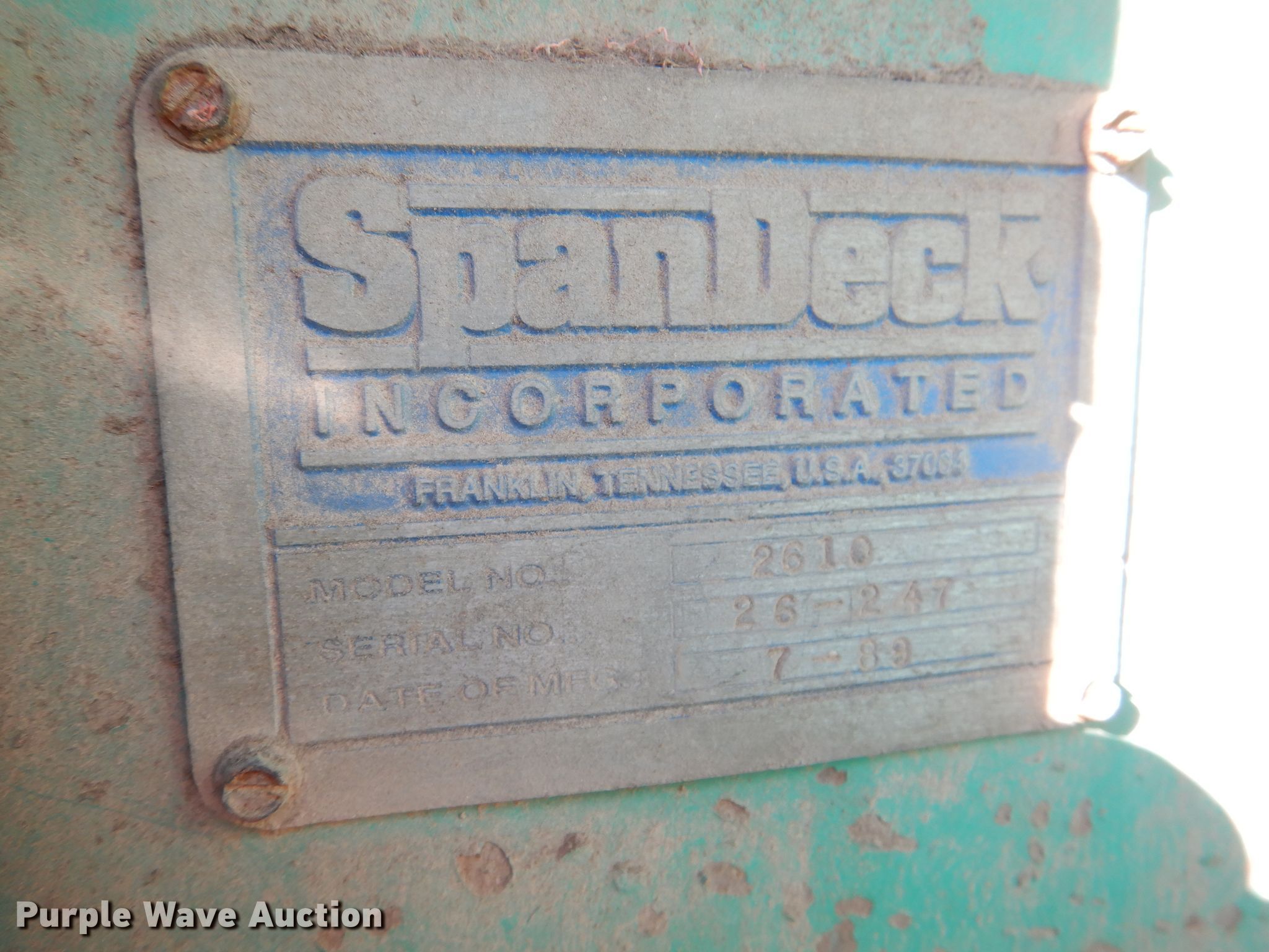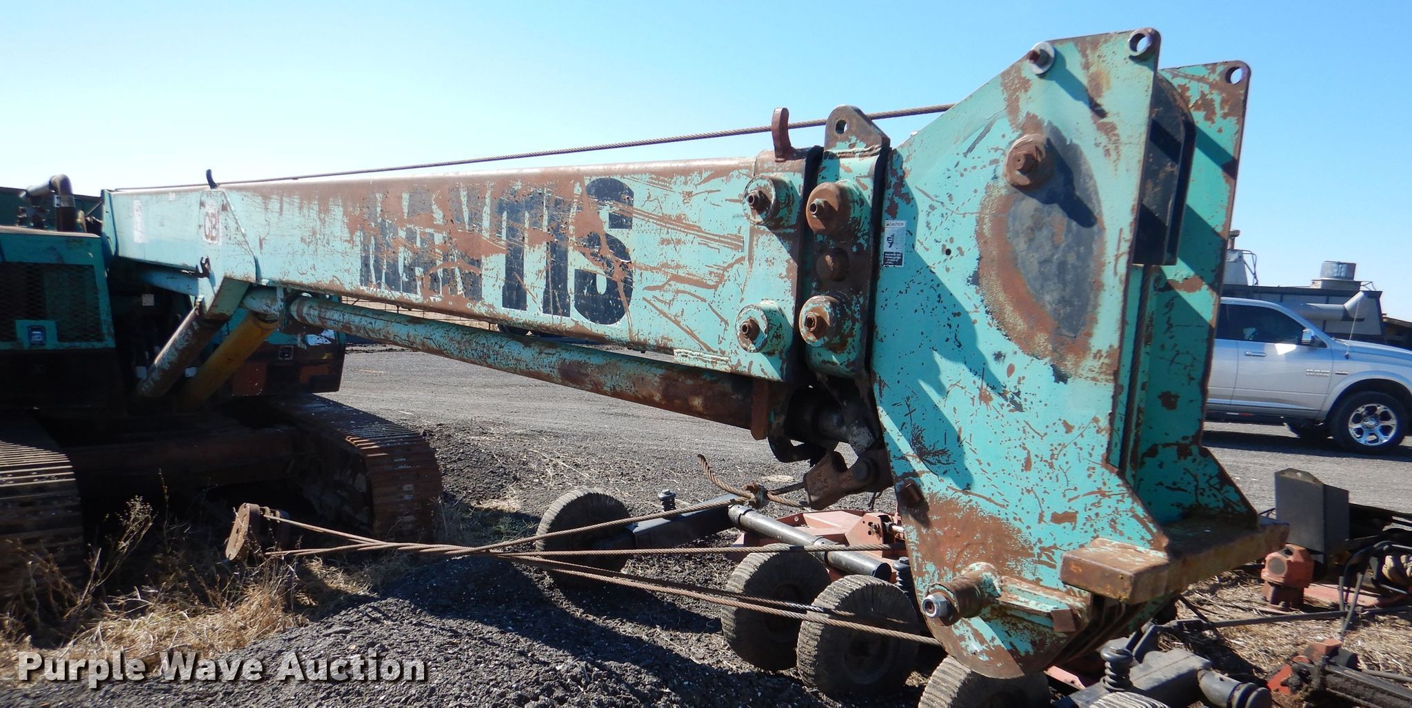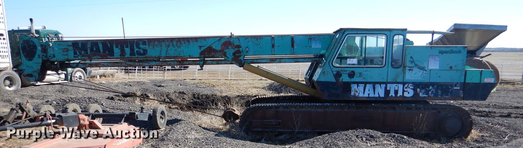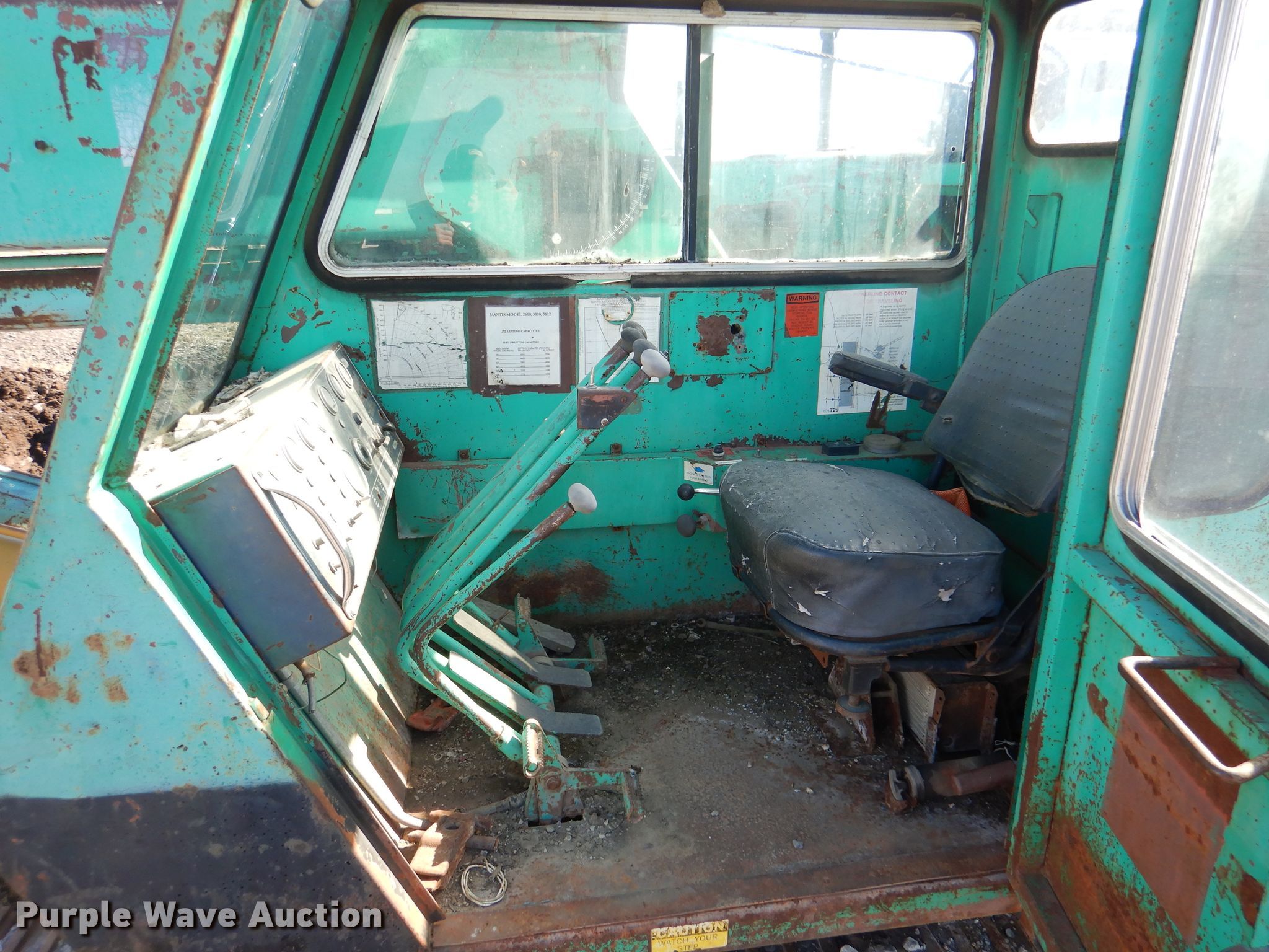 (2) cranes. 1989 Mantis 2610 crane. Engine hours: 916, Serial: 26-242. Engine Deutz, Cylinders: 6, Fuel type: Diesel. Chassis Crawler Hydraulic/ hydrostatic, Hydraulic actuated. Operators station Enclosed cab, Heat, Crane controls: Stick. Operational Boom Telescopic, Sections: 3, Maximum lift capacity: 26,000 lbs, Maximum lift height: 65', Boom controls In-cab, Winches: 1, Crane block Sheaves: 2, Capacity: 30,000 lbs. Tracks Width: 18", Extendable tracks. Notes Glass cracked, Engine issues, Unknown operating condition. 1989 Mantis 2610 Engine hours: 1,119, Serial: 26-247. Engine Duetz, Cylinders: 6, Fuel type: Diesel. Chassis Crawler Hydraulic/ hydrostatic, Hydraulic actuated. Operators station Enclosed cab, Heat, Crane controls: Stick. Operational Boom Telescopic, Sections: 3, Maximum lift capacity: 26,000 lbs, Maximum lift height: 65', Boom controls In-cab, Winches: 1, Crane block Sheaves: 2, Capacity: 30,000 lbs. Tracks Width: 18", Extendable tracks. Notes Glass cracked, Lift cylinder leak. 3D Recycling. 19450 KS-7. LaCygne, KS 66040