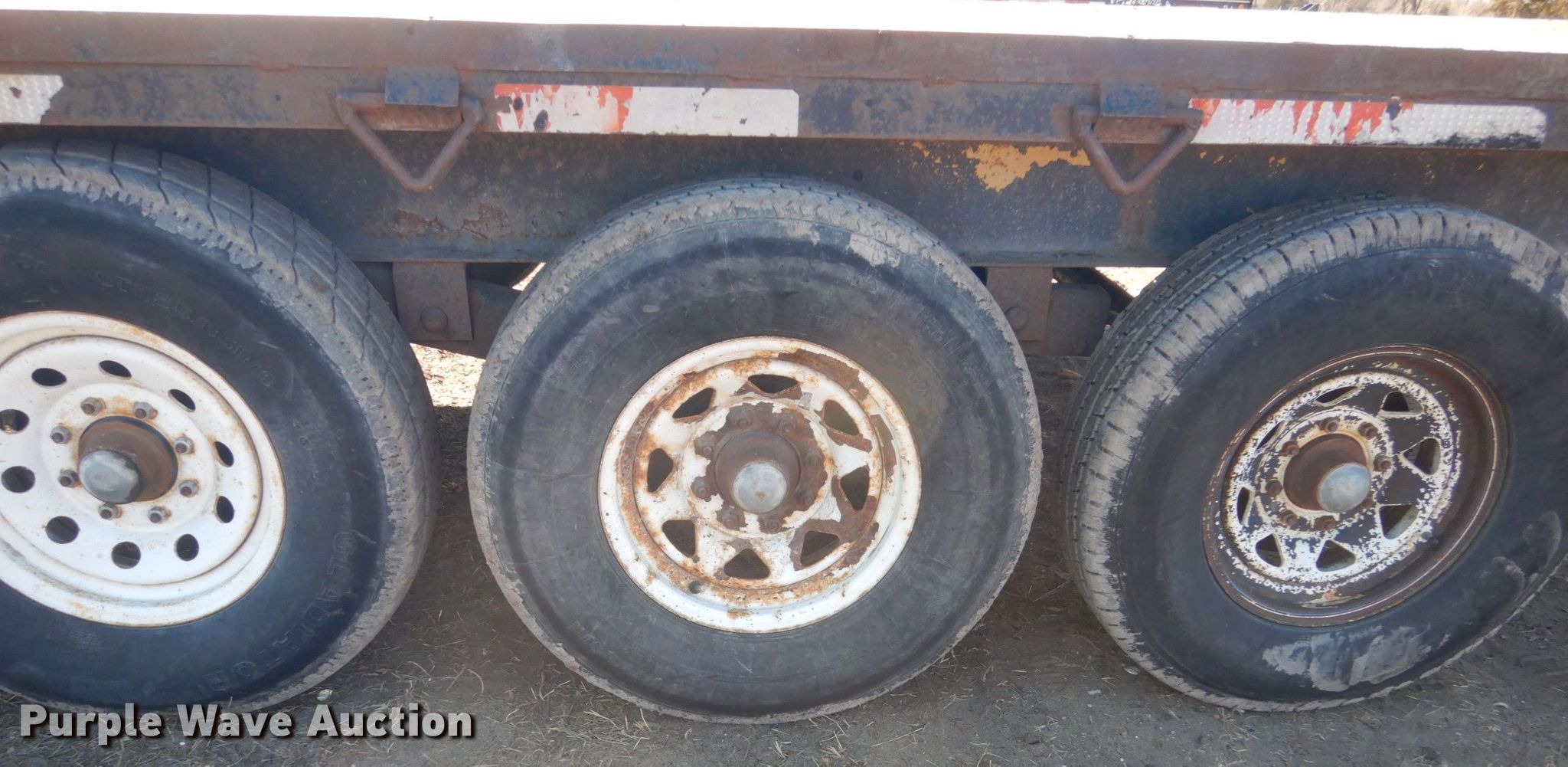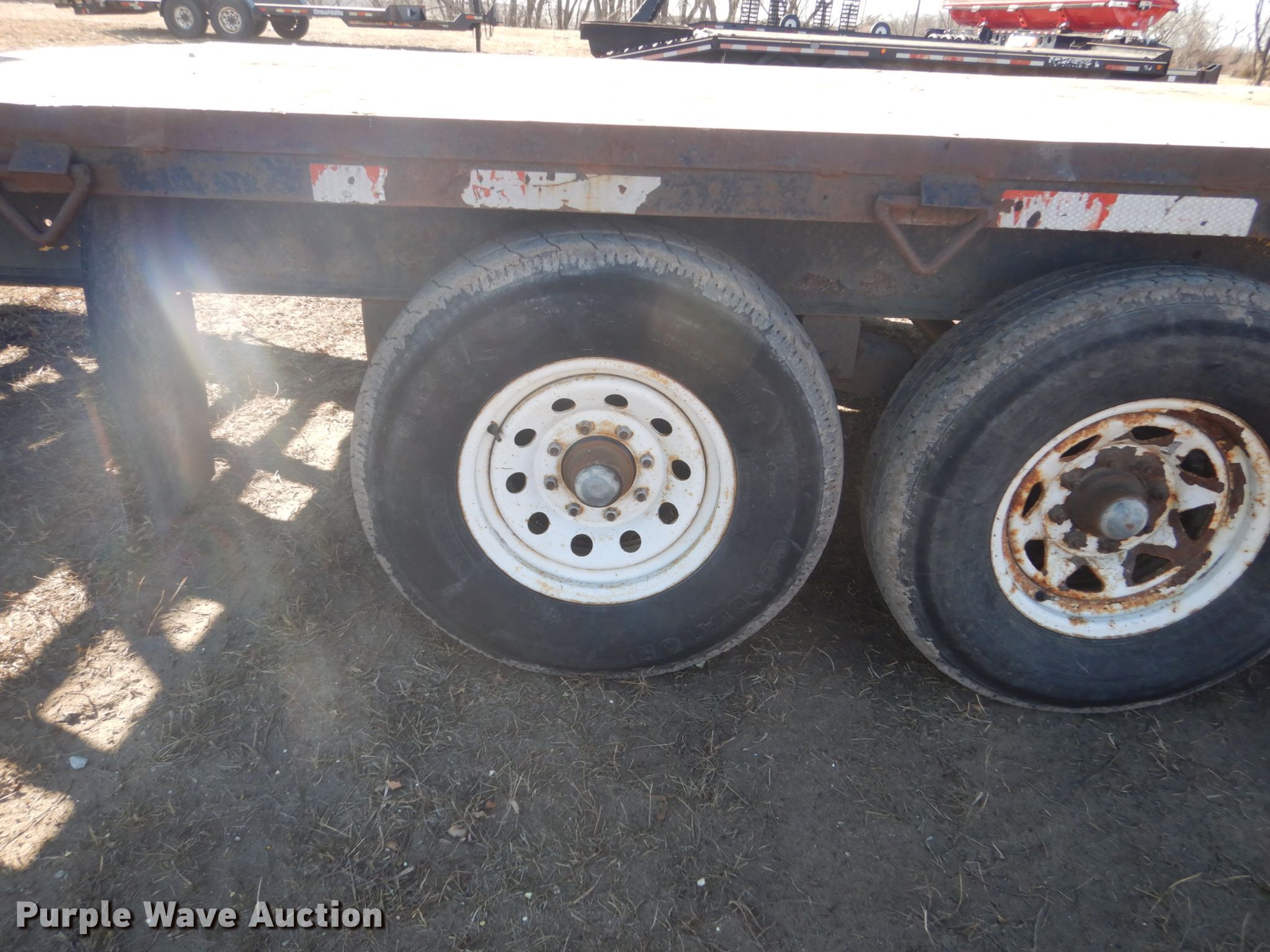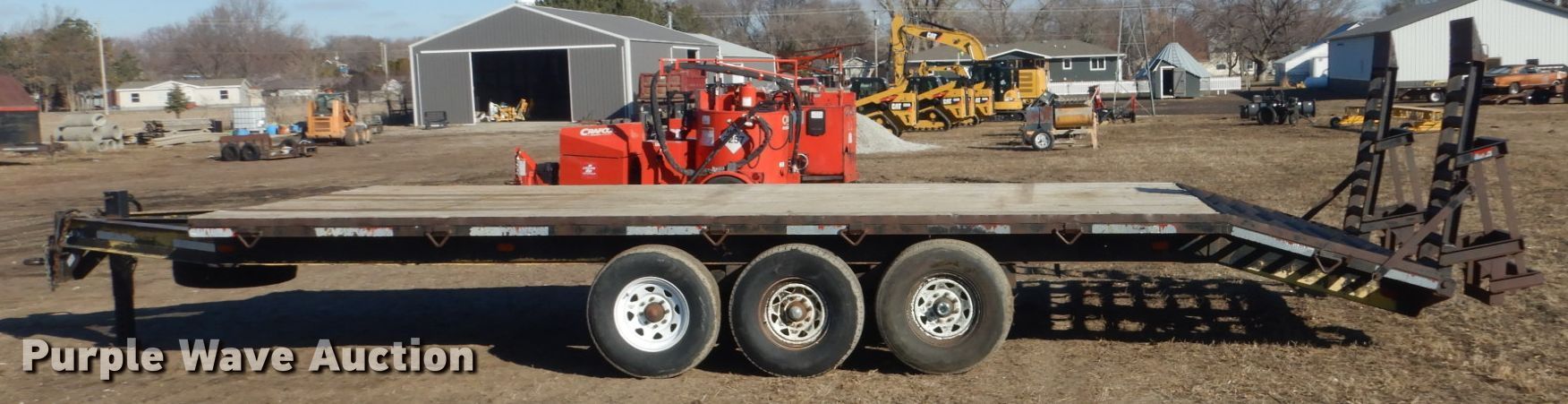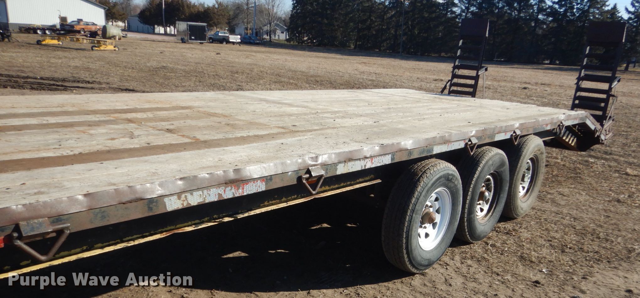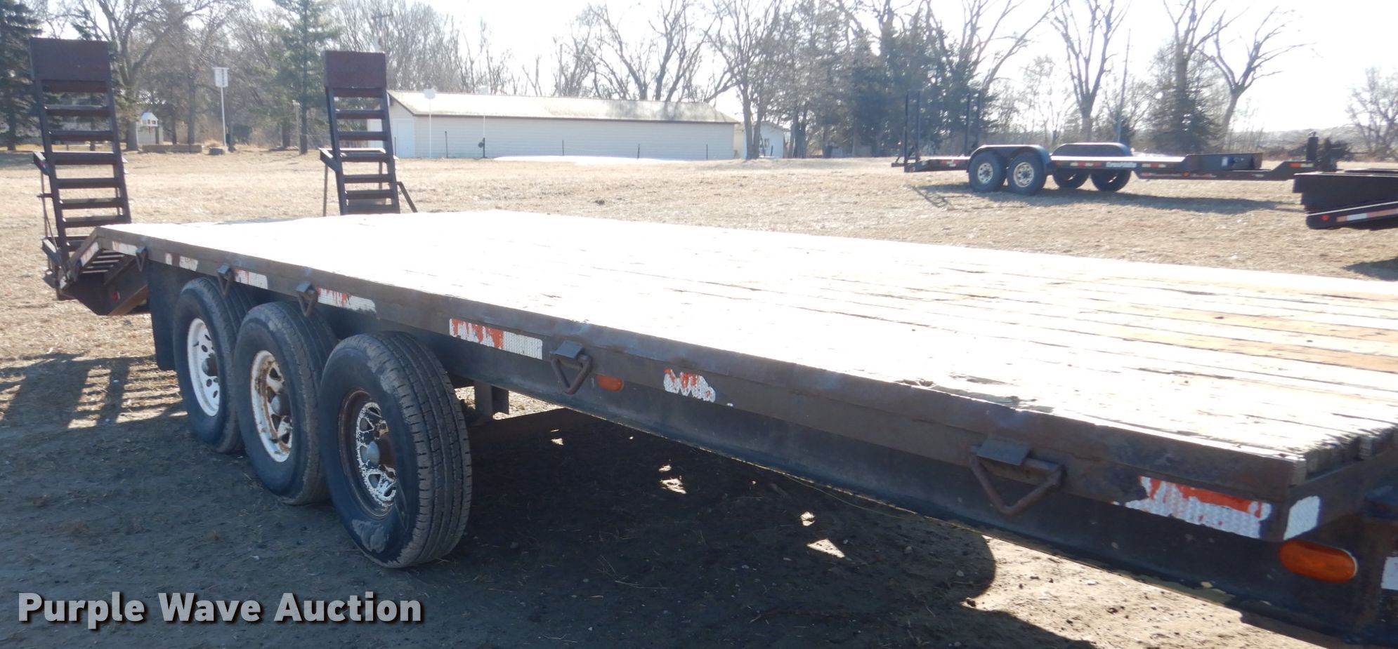 Purple Wave is selling a used Equip. Trailer in Nebraska. This item is a 1999 Shop built equipment trailer with the following: 30'4"L overall, 20'L x 99"W deck, 4' tail length, 5'L ramps, Wood deck, Single leg landing gear, Spring suspension, Electric brakes, Triple axle, Steel wheels, 235/85R16 tires
