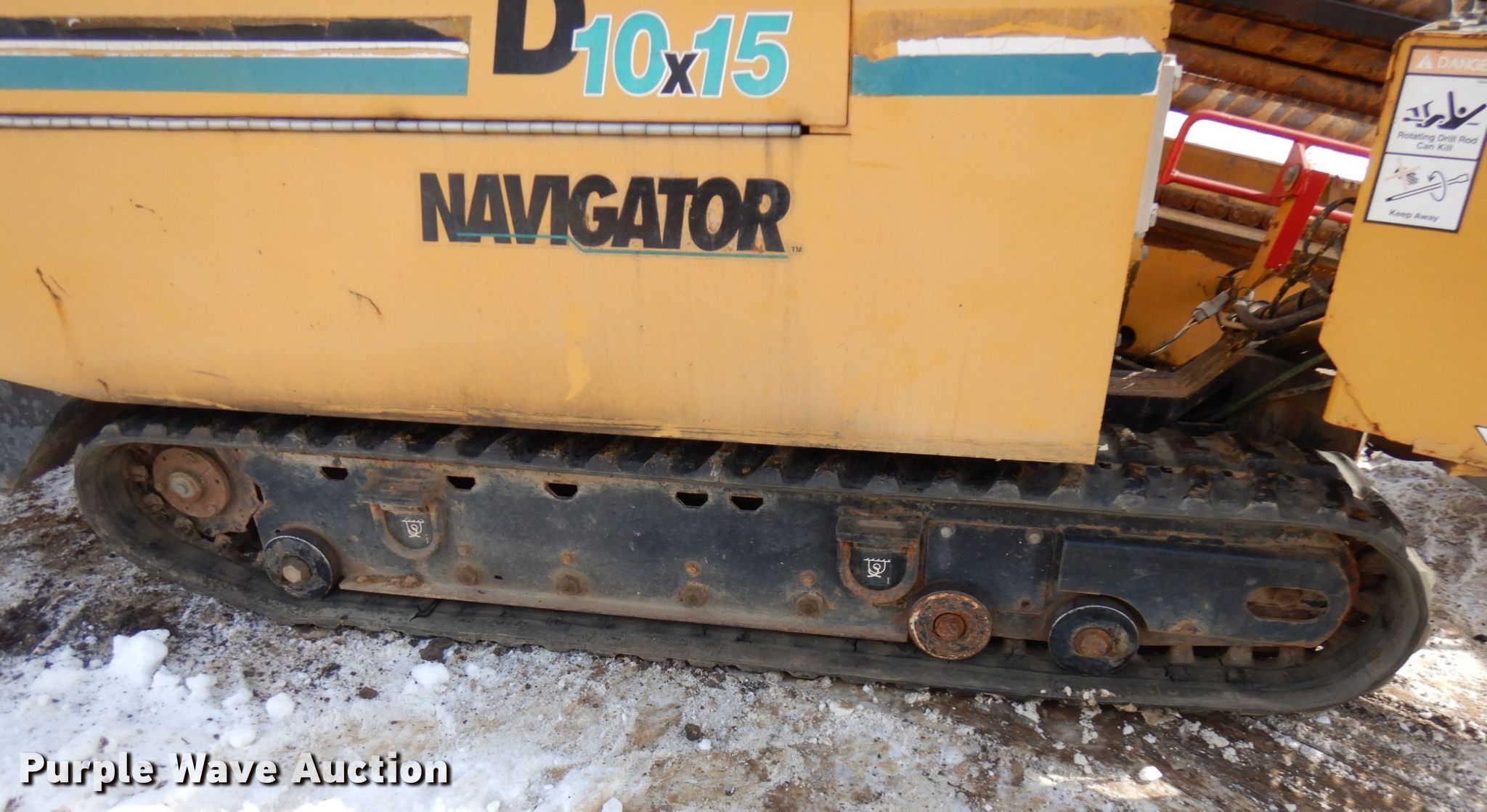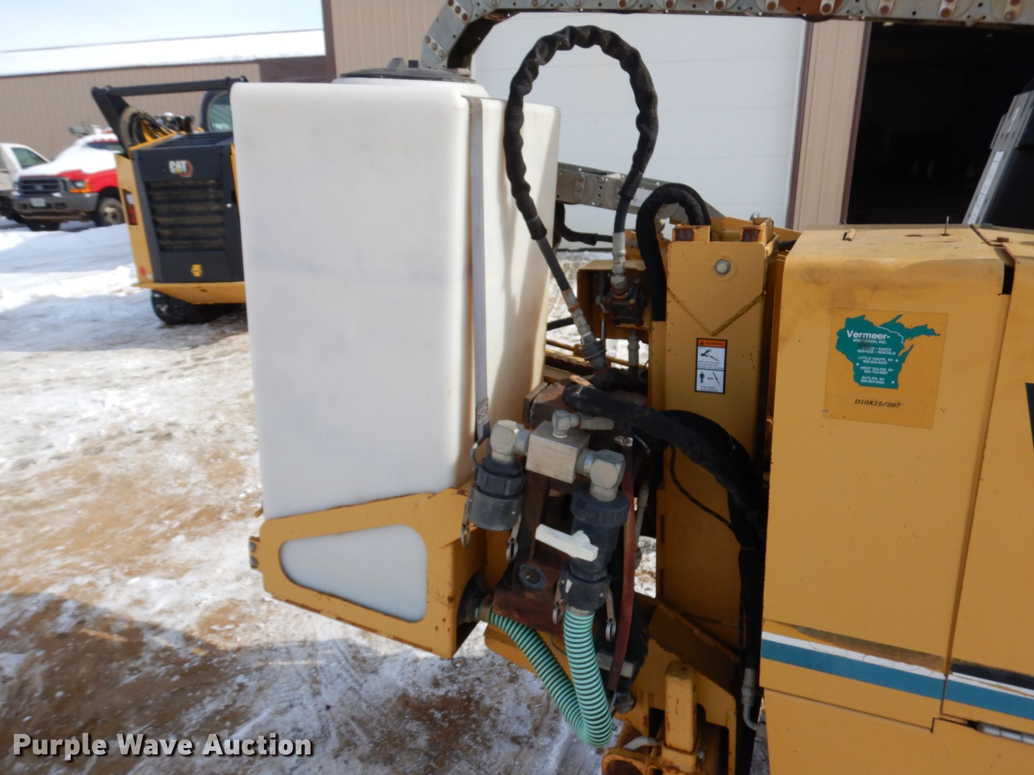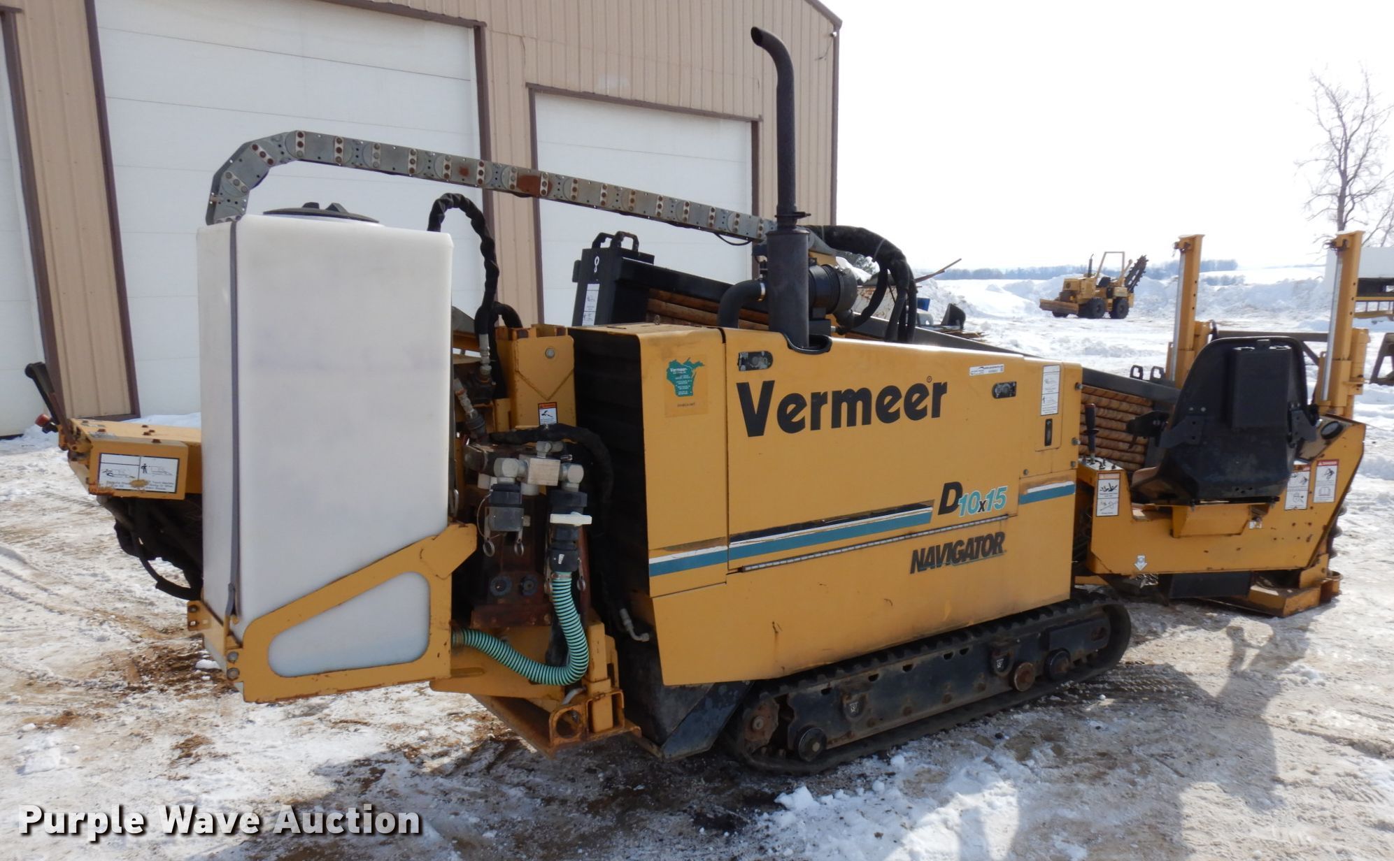 1999 Vermeer D10X15 directional boring unit. 3,256 hours on meter, Serial: 1VRT170M0X1000297. Engine Cylinders: 4, Fuel type: Diesel. Operational Ground drive remote: Tethered, Water pump, Drill stems On drill: 42, Drill stem length: 123" Diameter: 1.5", Auto rod loader, Rear hydraulic stabilizers, Hydraulic stake down, Fluid mix system Mix system capacity: 55 gallons. Tracks Width: 9", Rubber. Owen's Excavating & Trenching, Inc.. 1194 N. Hwy 80. Hazel Green, WI 53811