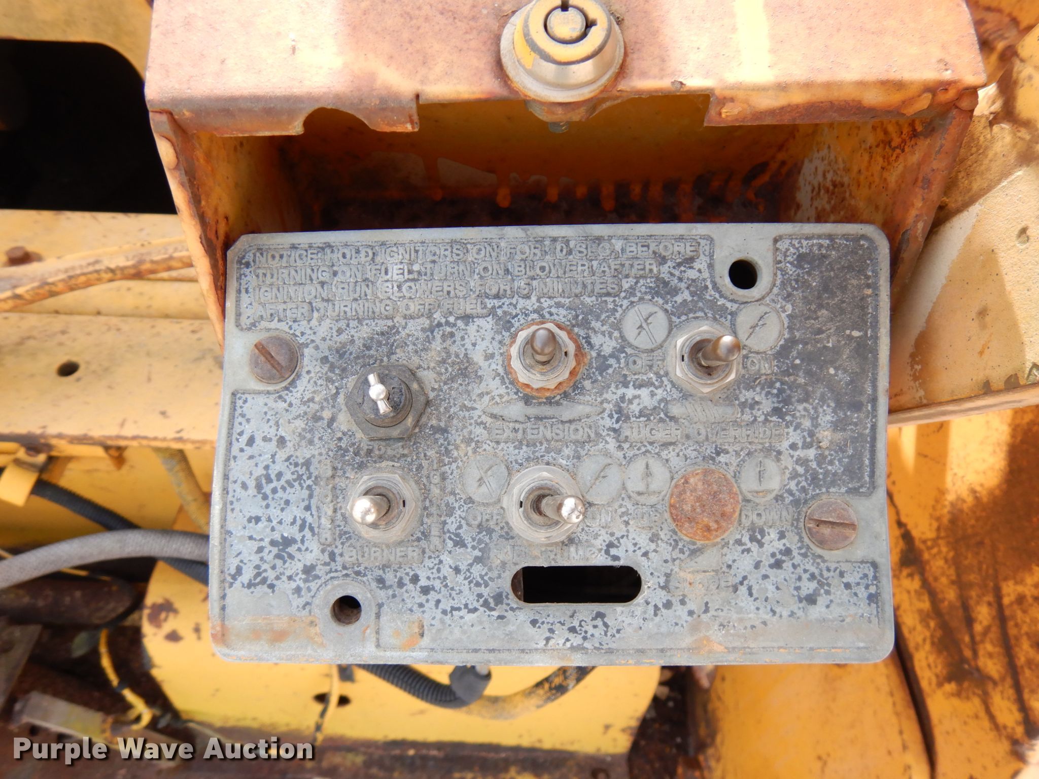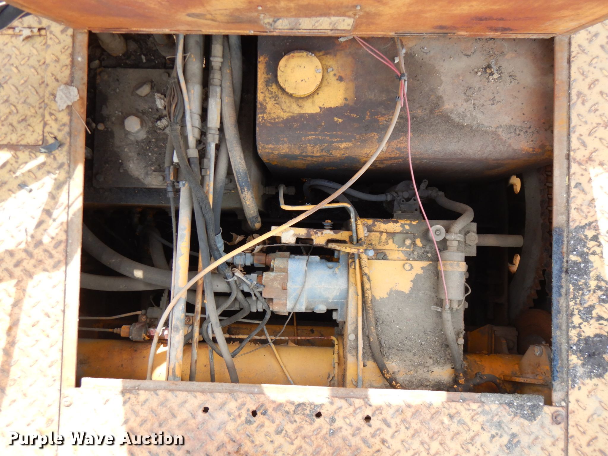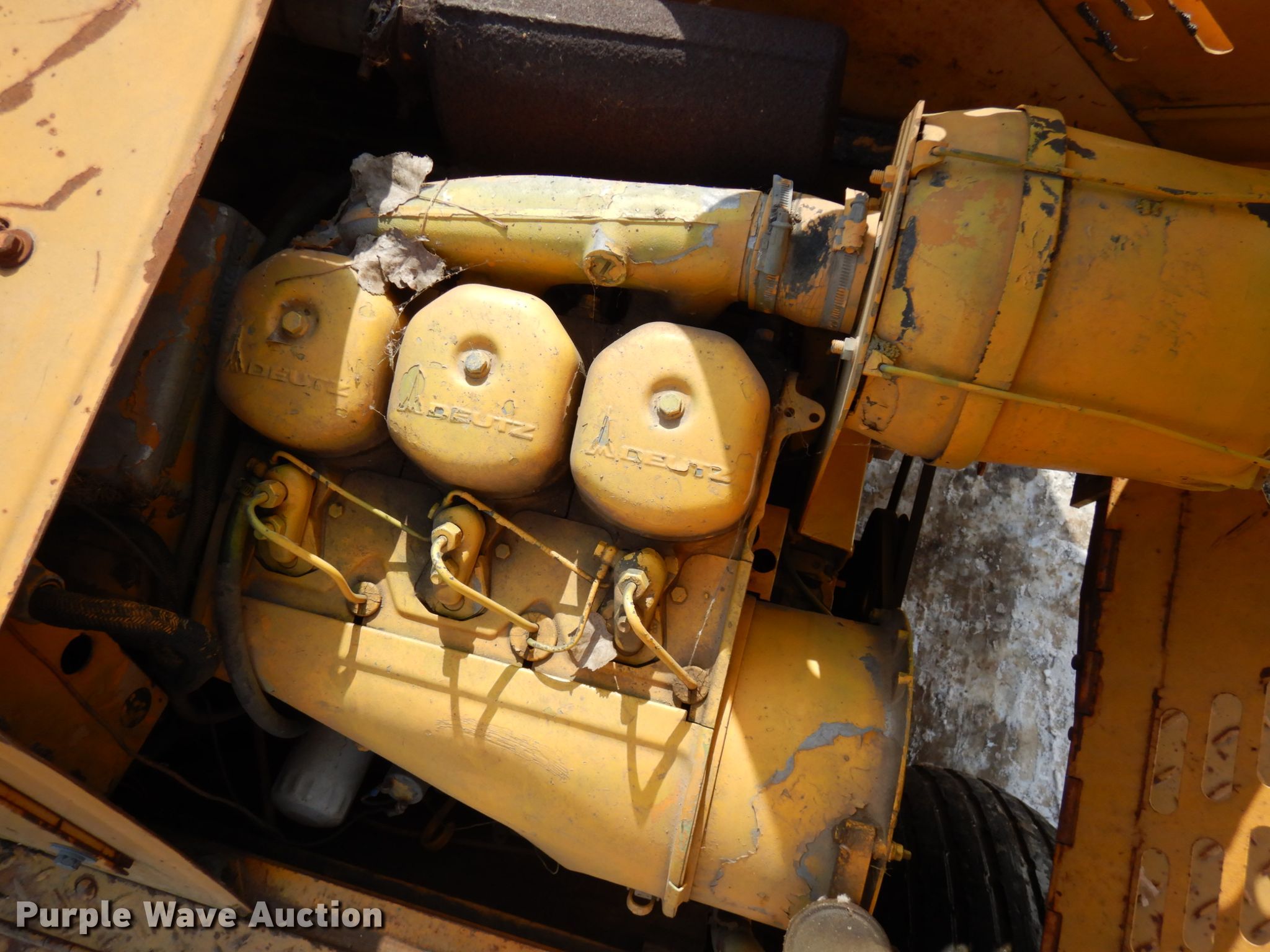 1988 Blaw Knox PF150 paver. 253 hours on meter, Serial: 15001-05. Engine Duetz, Cylinders: 3, Fuel type: Diesel. Transmission Hydrostatic. Operational Screed, Paving width: 8' to 16', Extensions: 2, Screed heater: Propane, Front spread hopper width: 10', Material conveyor Width: 48". Tires Size: 14-20DT. Notes Opener hydraulic leak. Owen's Excavating & Trenching, Inc.. 1194 N. Hwy 80. Hazel Green, WI 53811
